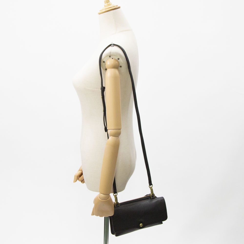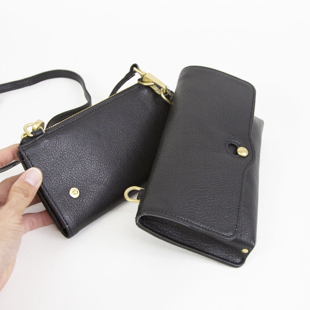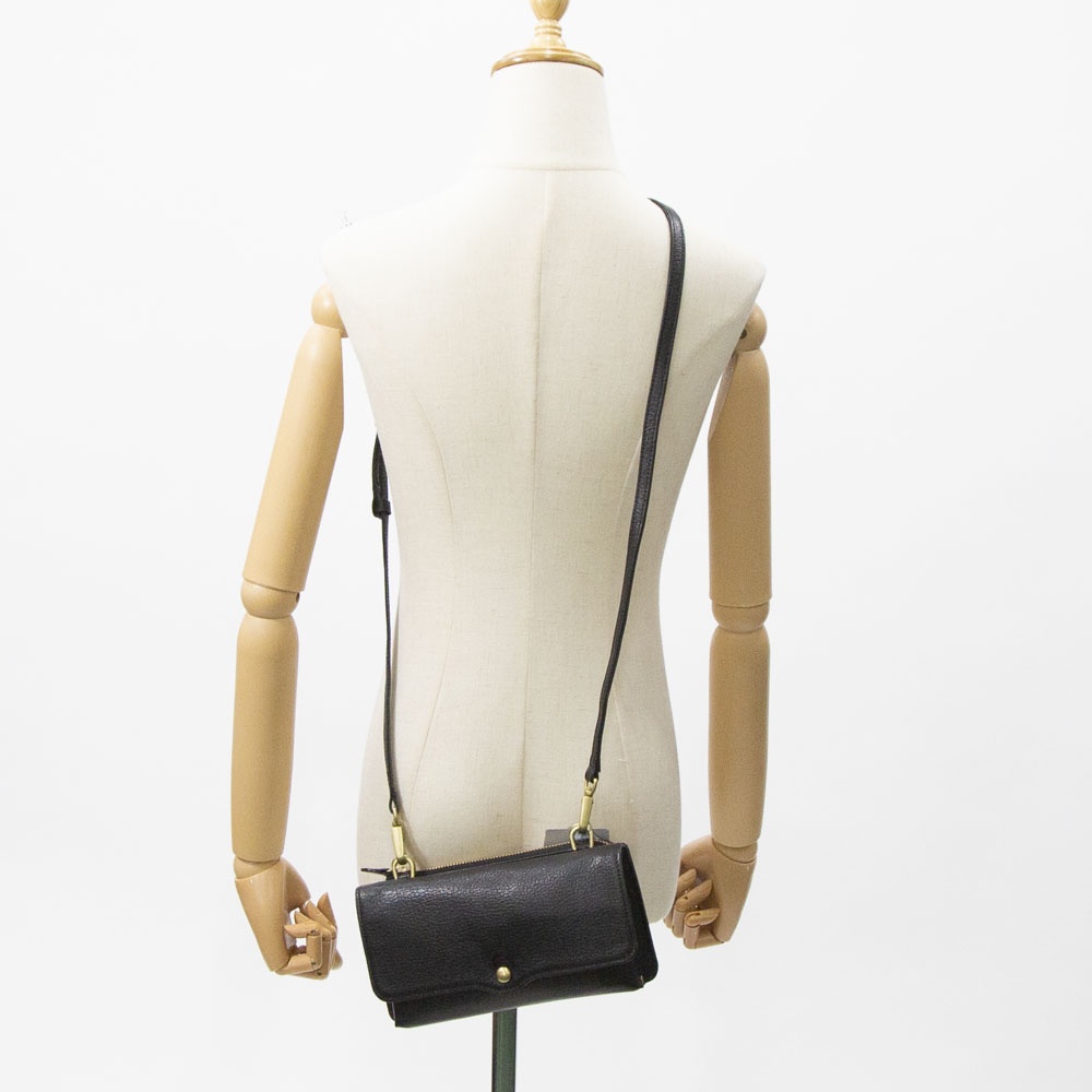 取り外し可能なウォレットとポーチがひとつになるショルダーです。各々単体でショルダーをつけて使うことができます。ポシェットの背面にはポケットがついています。またベルトループもついているのでお手持ちのベルトを通してウエストポーチとしてもお使いいただけます。