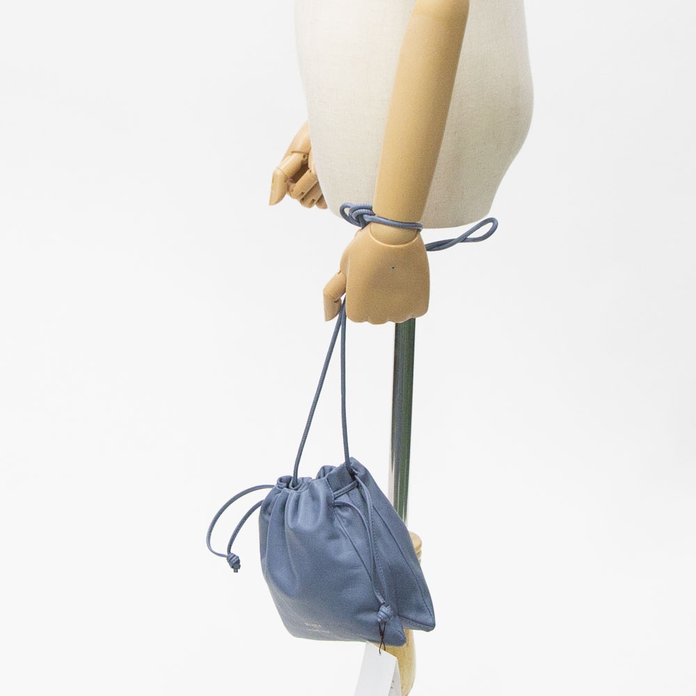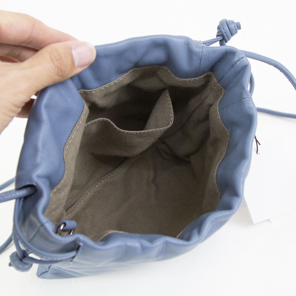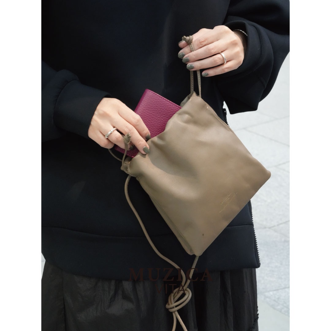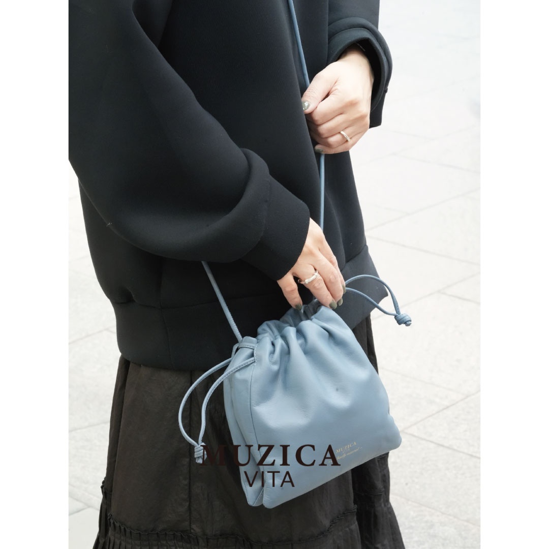 スムースレザーを使用したなめらかな質感が魅力の巾着バッグです。