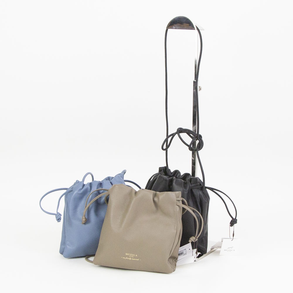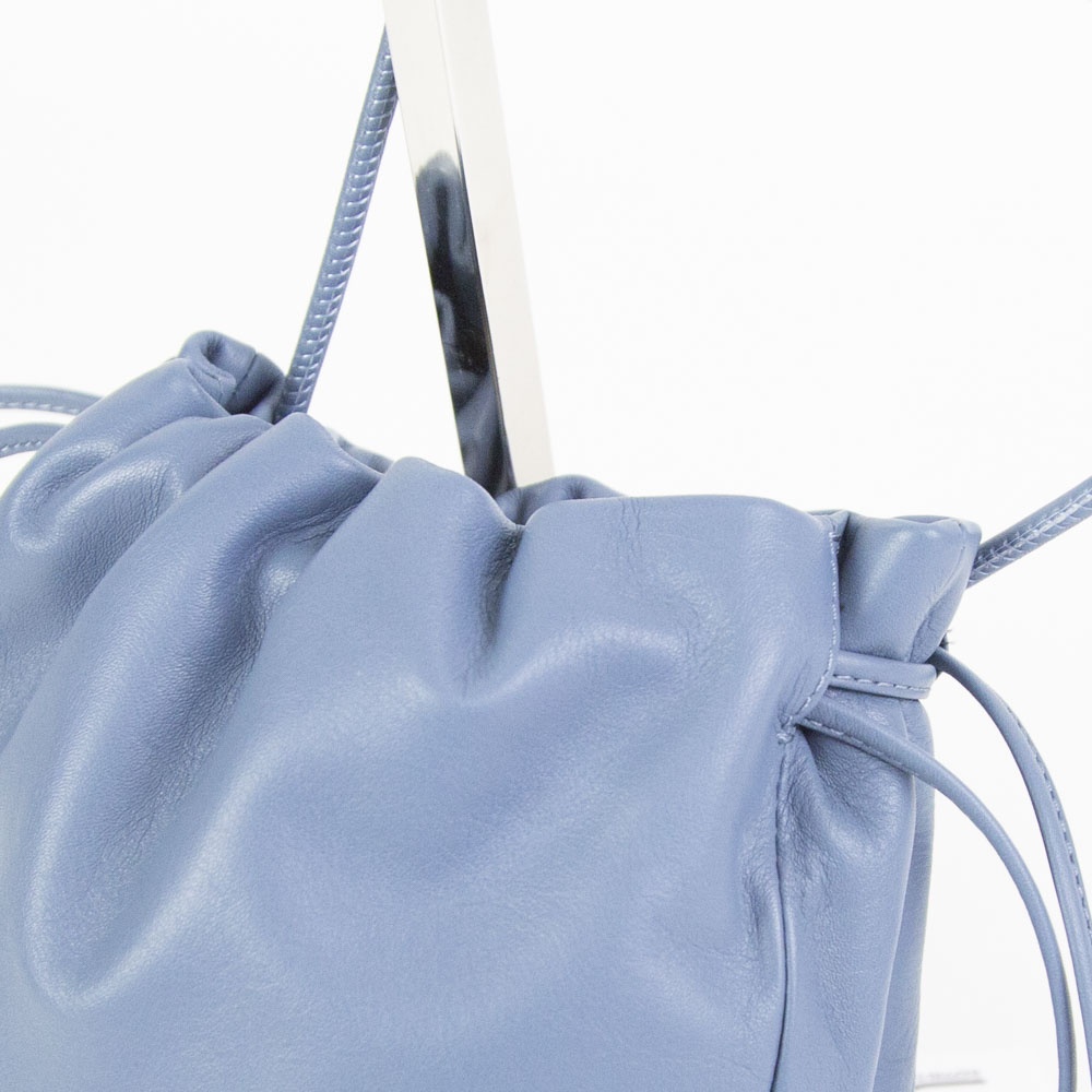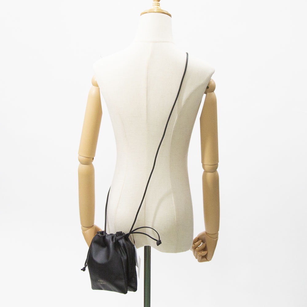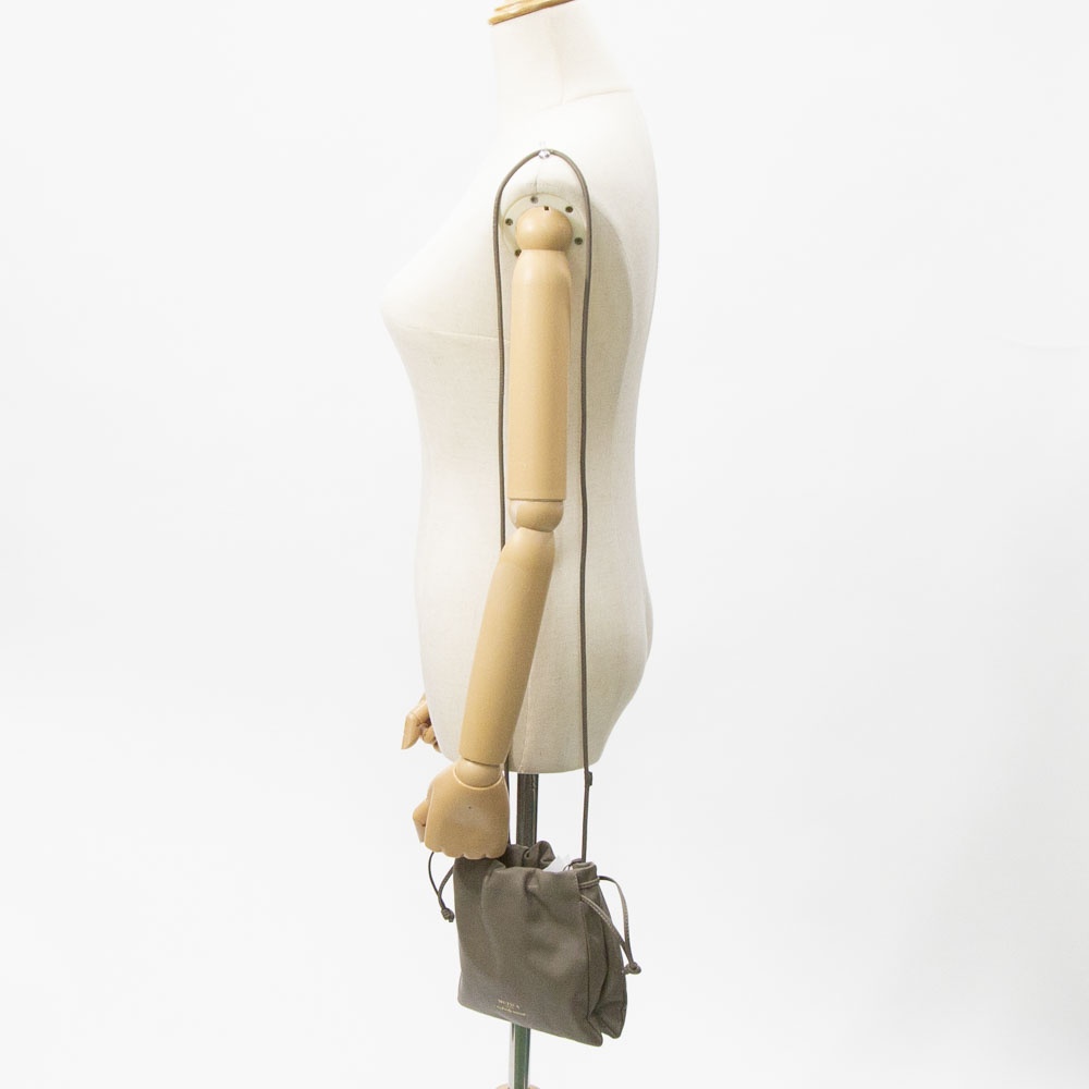 スムースレザーを使用したなめらかな質感が魅力の巾着バッグです。