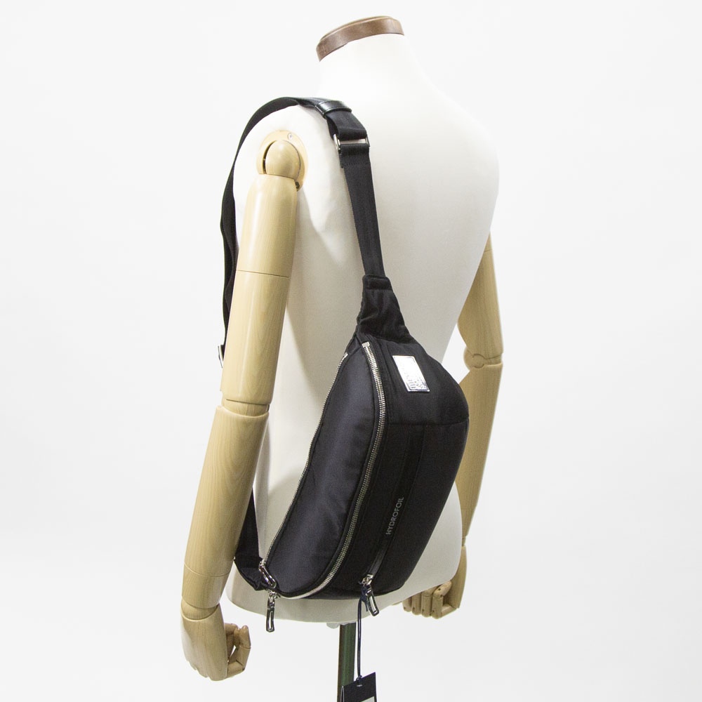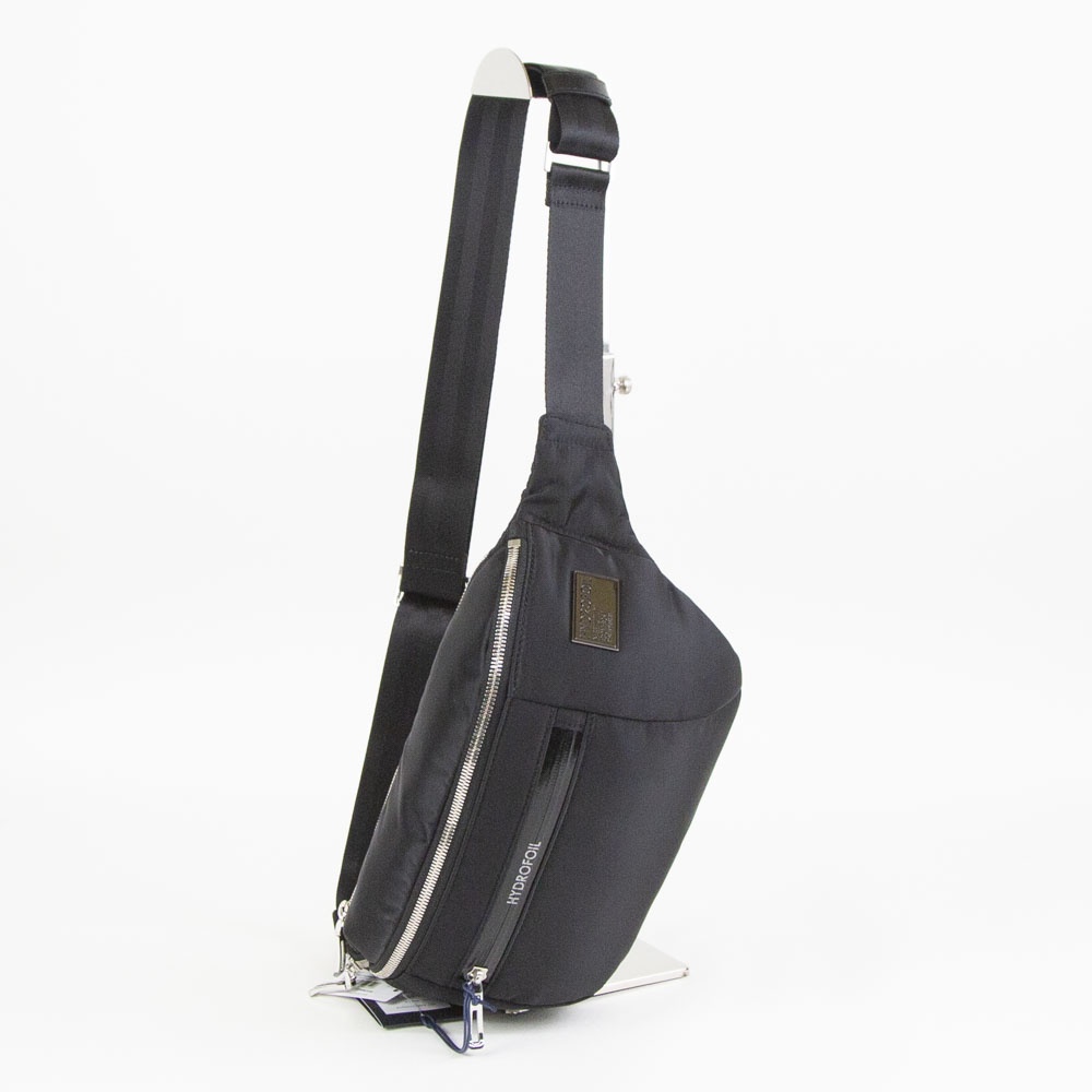 メイン素材はナイロンツイル生地をハイカウントに仕上げ、ハリと硬さを持たせたデザインです。表面は滑らかな肌さわりで光沢感が特徴。HYDROFOILの軽快さ残しながら艶のあるアイテムになっています。 前面でも背面スタイルでも背負いやすいカジュアルなデザイン。 メインポケットの他にサブポケットも2つ備わっているので収納も便利。さらにペットボトルや折り畳み傘も入る、コンパクトながらしっかり収納のショルダーバッグです。