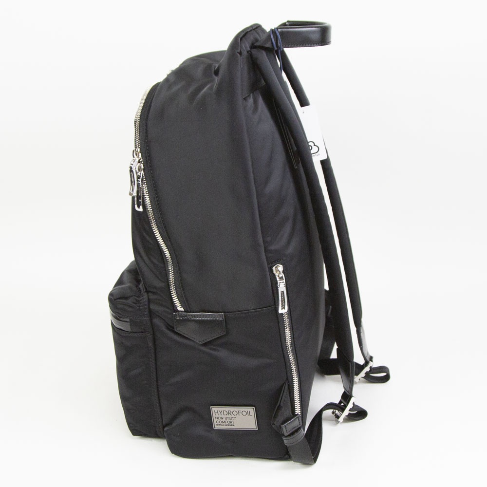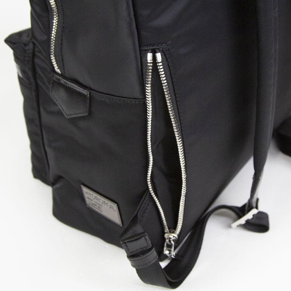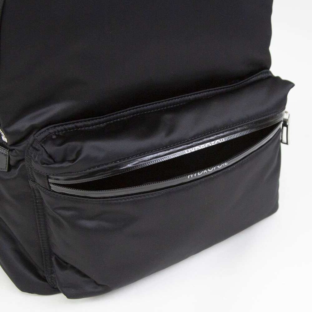 メイン素材はナイロンツイル生地をハイカウントに仕上げ、ハリと硬さを持たせたデザインです。表面は滑らかな肌さわりで光沢感が特徴。HYDROFOILの軽快さ残しながら艶のあるアイテムになっています。 素材の光沢感がジャケットスタイルにも合う上品な仕上がりのデザイン。上部のハンドルにはレザーを使用しており、手持ちもできます。 マチ幅が大きいので一泊程度の出張や小旅行にも使えます。