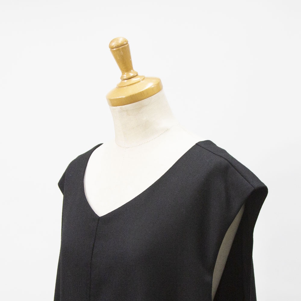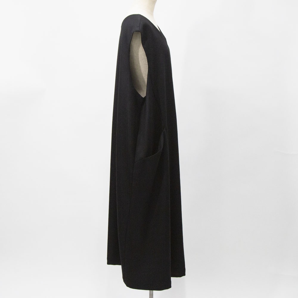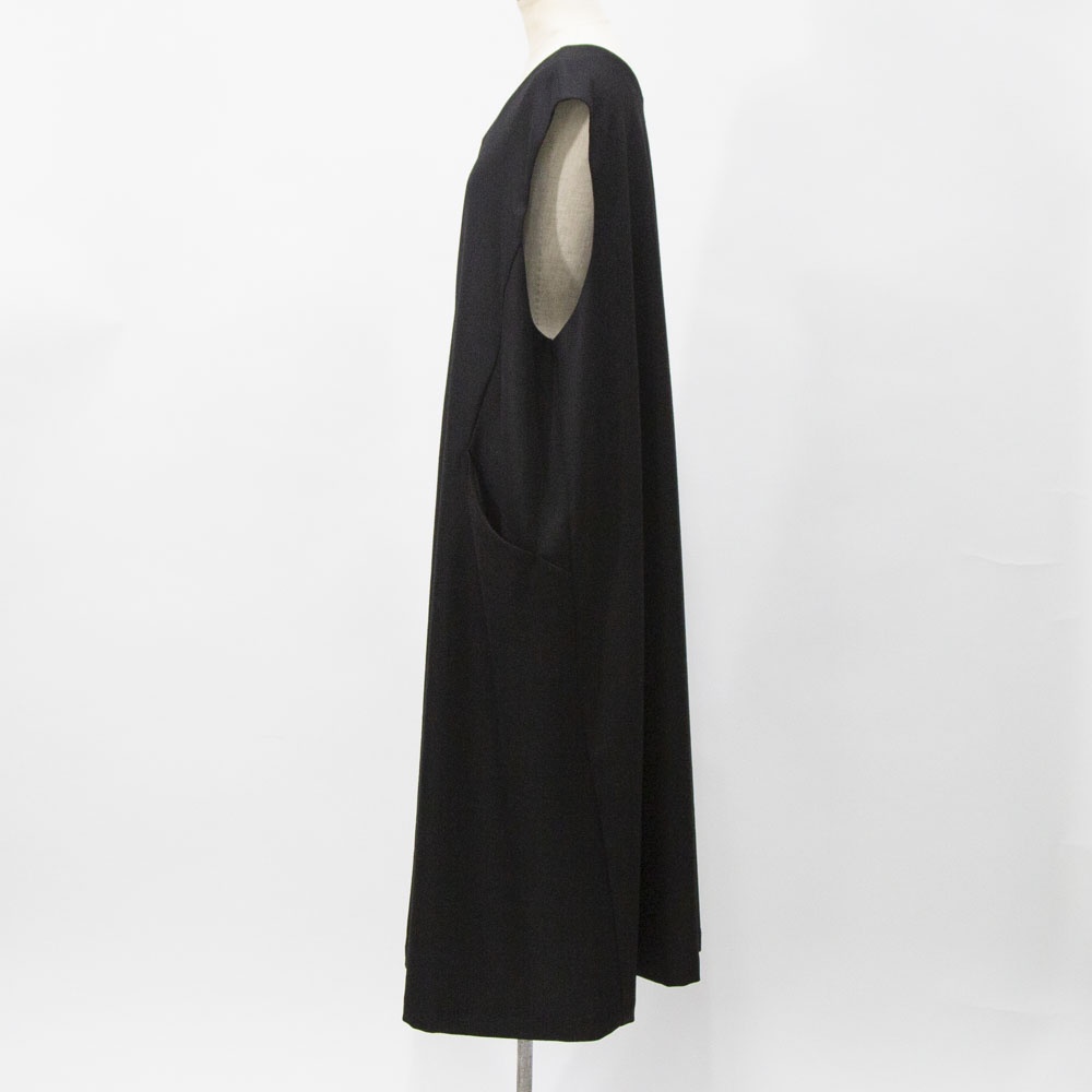 やわらかなウールツイルをのジャンパードレス。 さまざまなインナーとも合わせやすく、ゆったりとしたシルエットでストレスなく気軽に着ていただけます。 脇左右にポケットがあります。