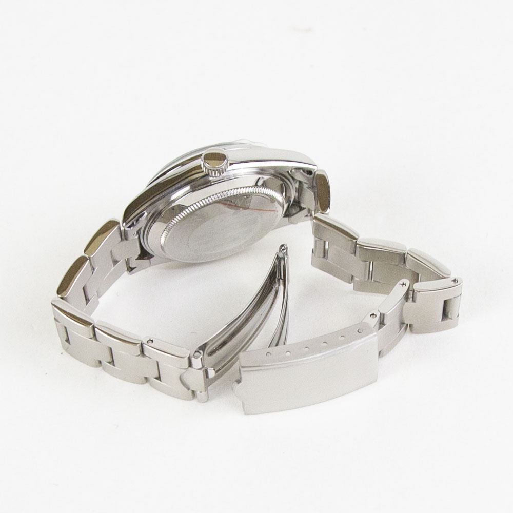 ステンレス部分はエイジング加工を施しているため、ヴィンテージ感を初めからご体感できます。ベルトはステンレス製ベルト(サイズ調整可) になります。別売りのNATOベルトに付け替えも可能です。