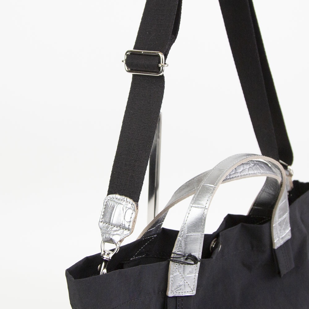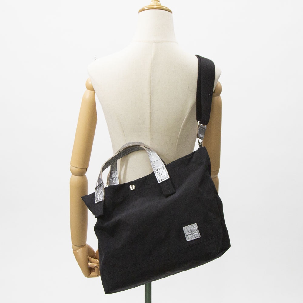 ナイロンと牛革のコンビネーションが人気の2WAYトートの持ち手がクロコ型押しになった数量限定モデルになります。