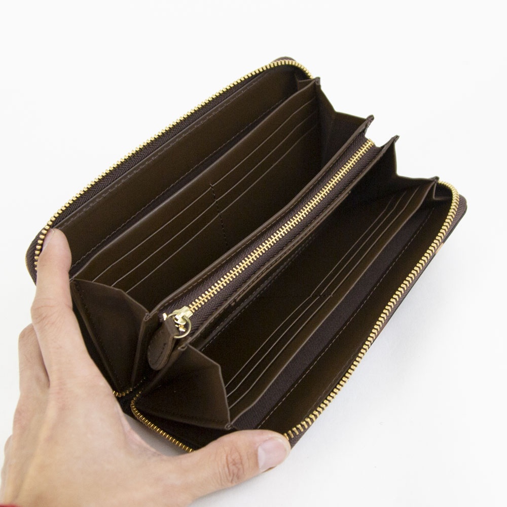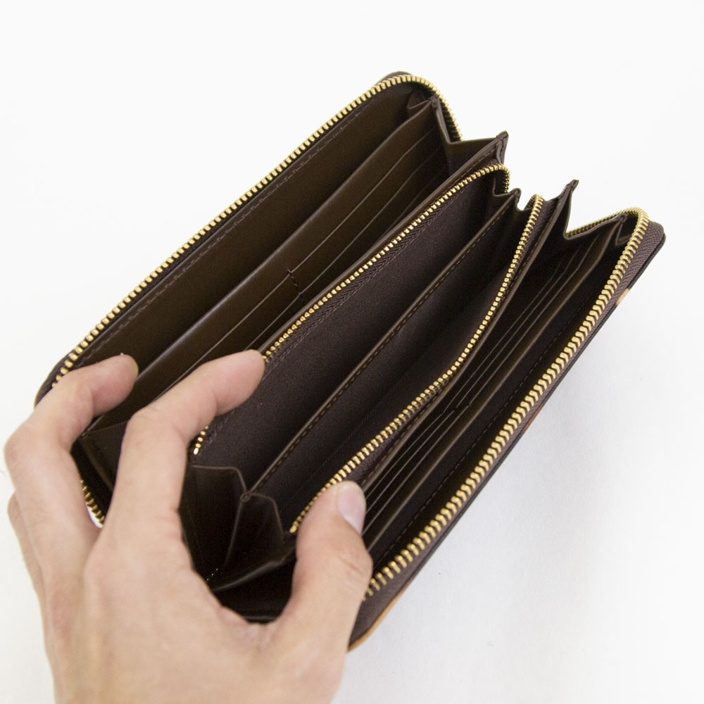ラウンドタイプの長財布は、両サイドのスペースを活かした収納力に長けたデザインとなっています。