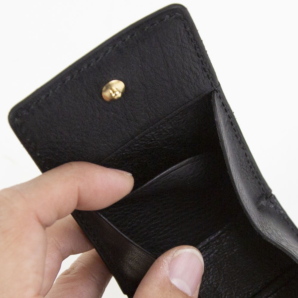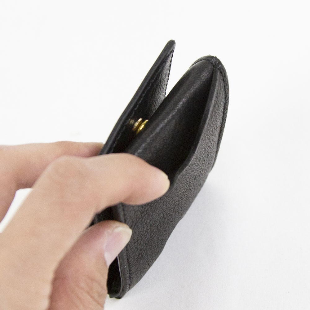通常一般的にみられるボックス型の小銭入れにメスを入れ、弱点としている部分を強みとして変えた小銭入れです。