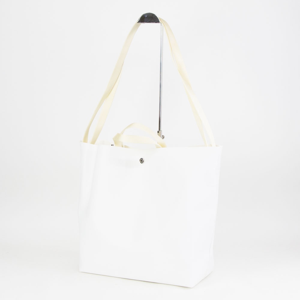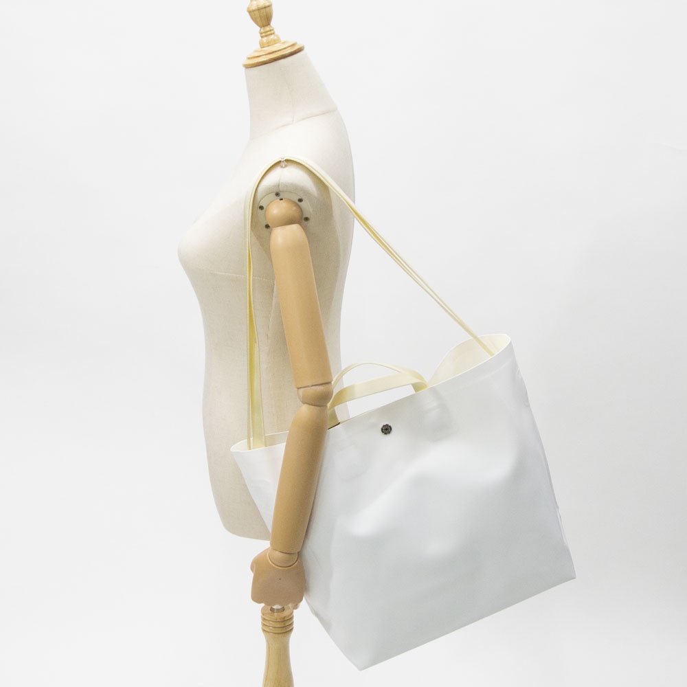ノンステッチで作り上げることで、ノーブルな表情に。 使用する素材は、カーフレザーのような上質でなめらかな表情が特徴で、軽量性や防水性、耐摩耗性も兼ね備えています。 環境配慮にも優れており、再生加工が可能なエシカル素材としての一面もあります。