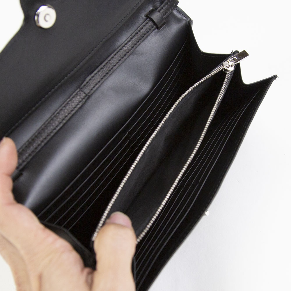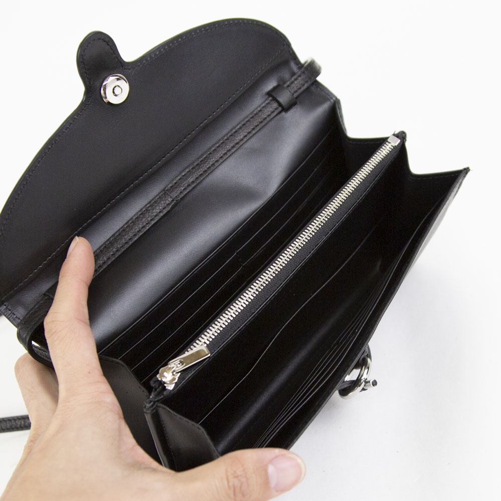 ANNONAY社レザー(牛革)を使用した新型CLASPのベルトショルダーバッグ。 メアリオルターナ2026SSの新作で、アクセサリーの留め具として使われるマンテル金具をオリジナルで製作しモチーフに。 クラシックな要素をプラスしたスタイルに仕上げた商品です。 大容量のカード収納にプラスしたスタイルに仕上げてあります。 とりわけ高級感を感じる静かなる気品を演出してくれる大人の女性にふさわしい逸品です。
