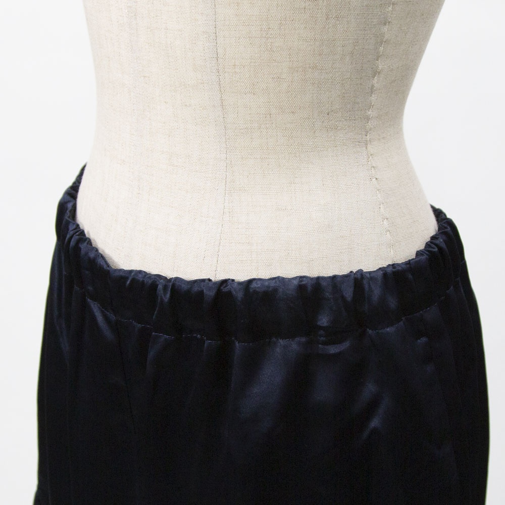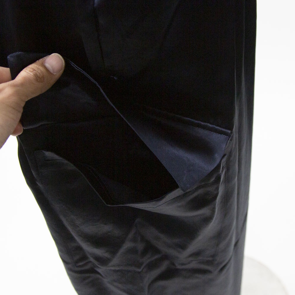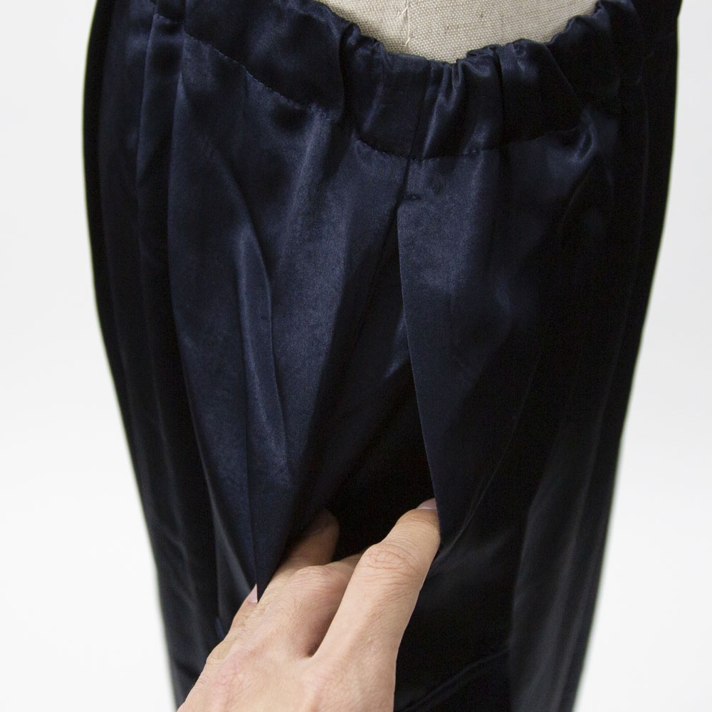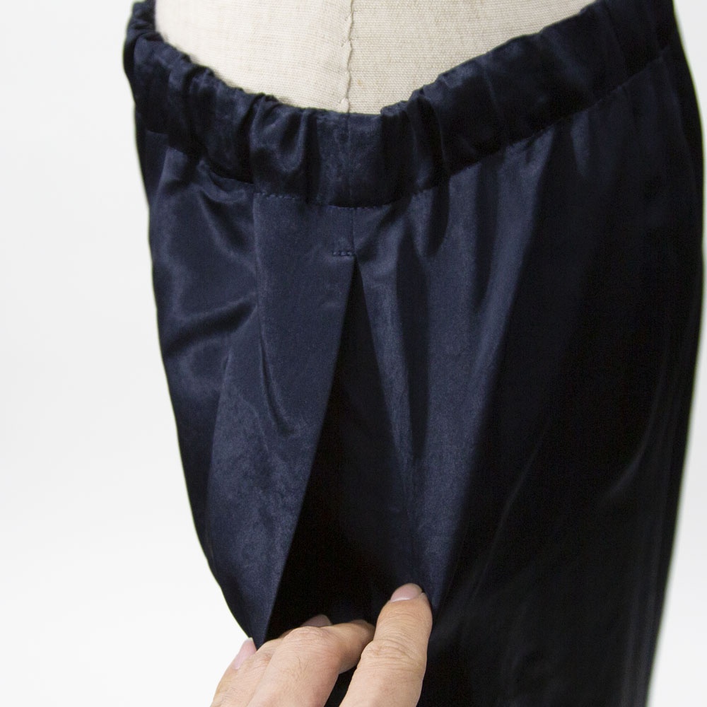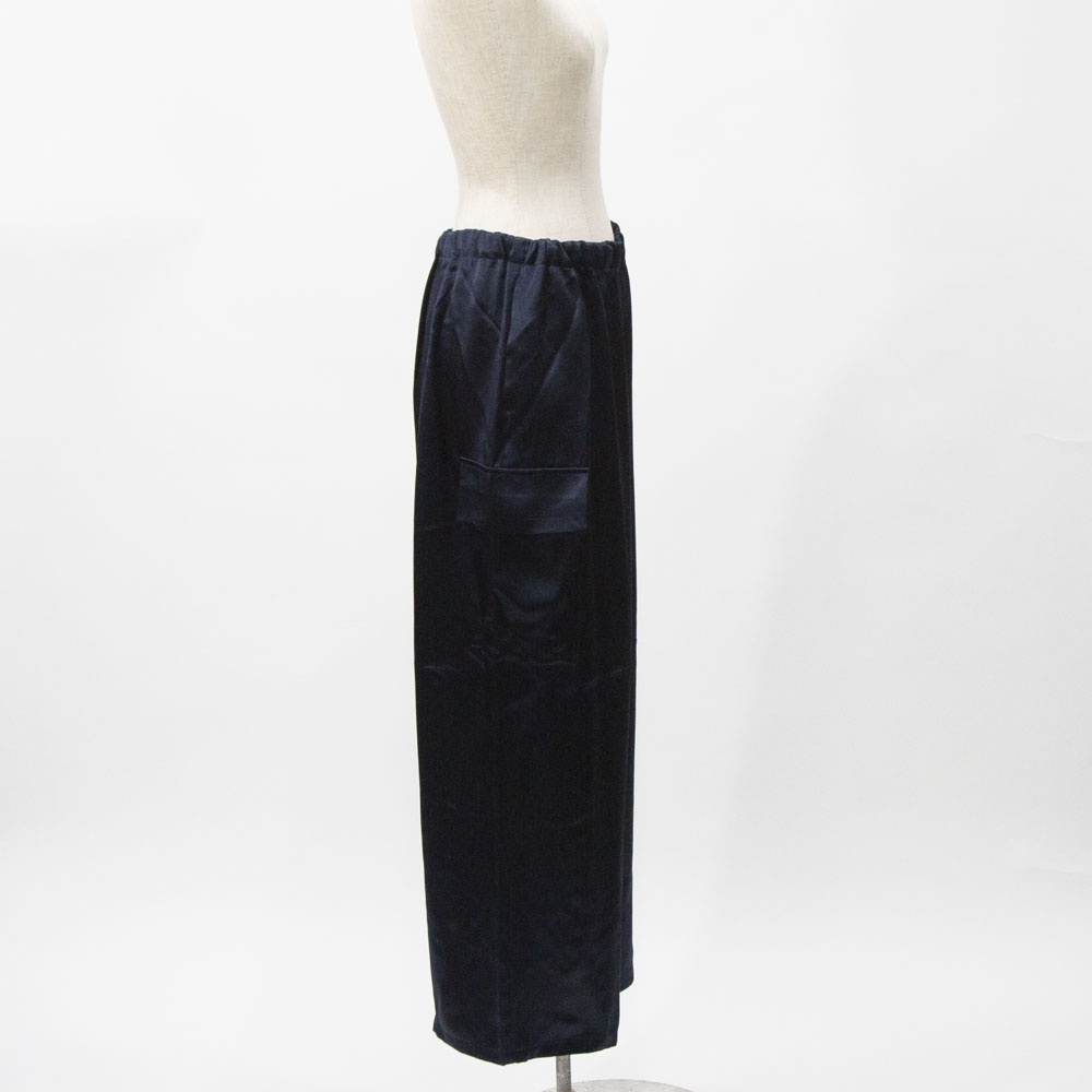 人気のカーゴパンツがサテン生地で登場。カジュアルなデザインな中にを大人の雰囲気のある1枚。光沢がありサラッとした素材感のサテン生地はボリューム感はなくスッキリとしたシルエット。ポケットの膨らみも抑えたデザインもポイントです。ウエストはゴム使用に+調整紐付きなのでウエストキープもしやすくなっています。