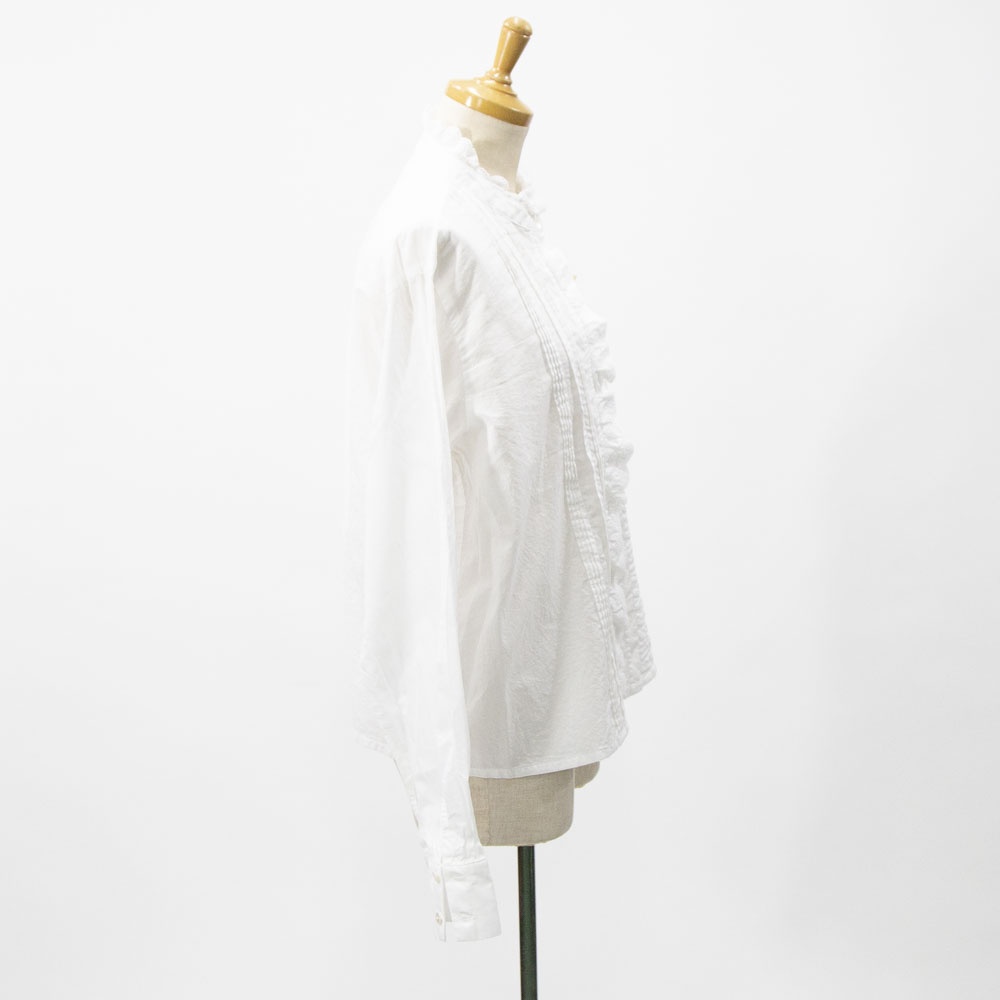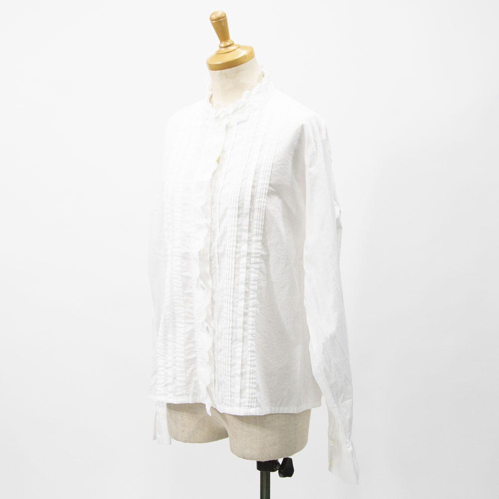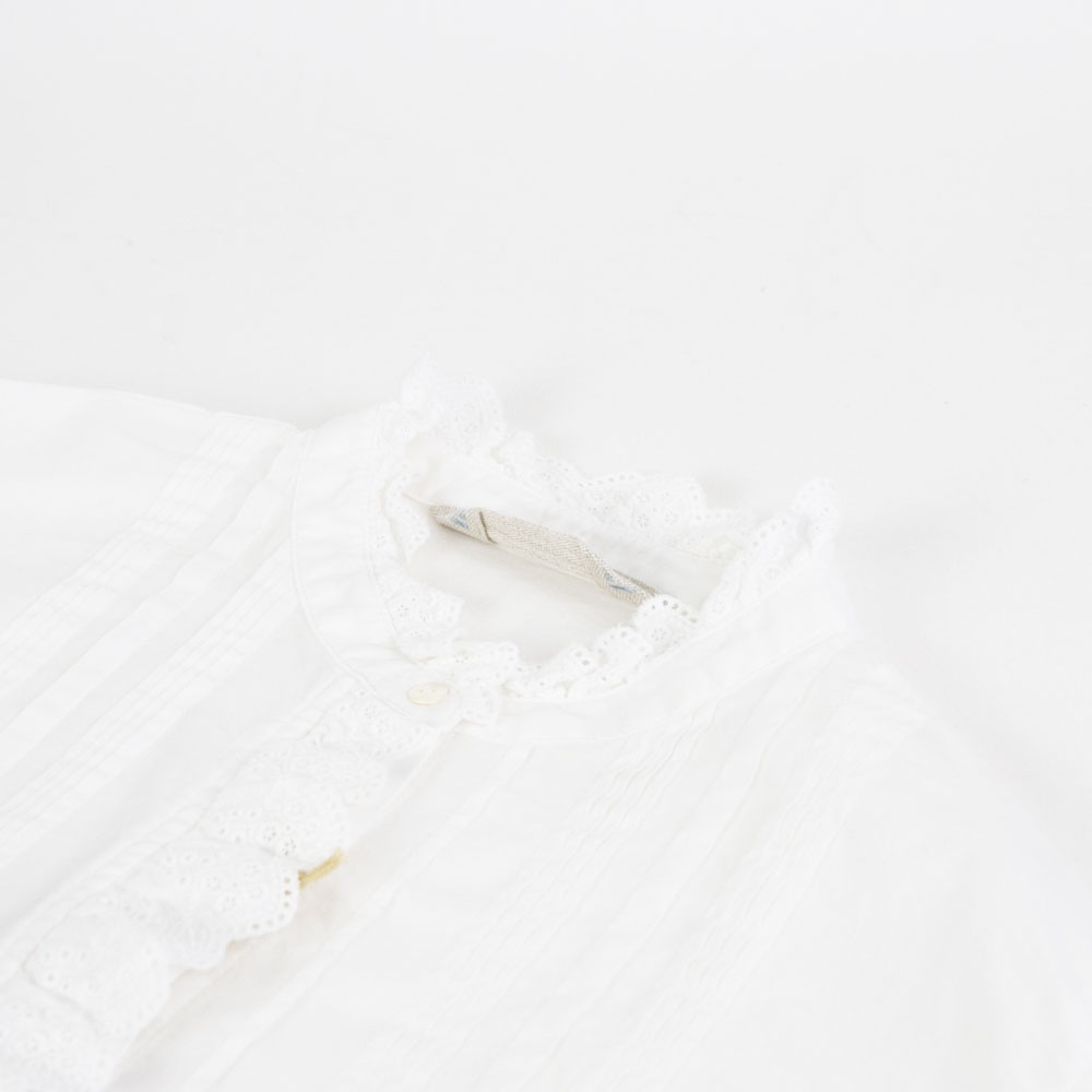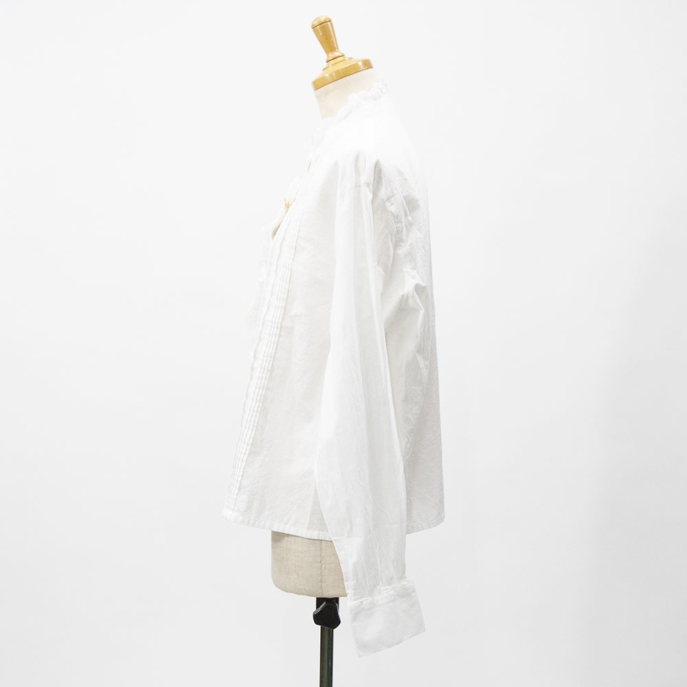 ローン×ヴィンテージライクエンブロイダリーレースのピンタックレースシャツです。襟と前立てにレースをあしらった上品な1枚。首元のハイネックレースを魅せるレーヤードスタイルがオススメ。春先は1枚でも素敵に着こなせるアイテムです!