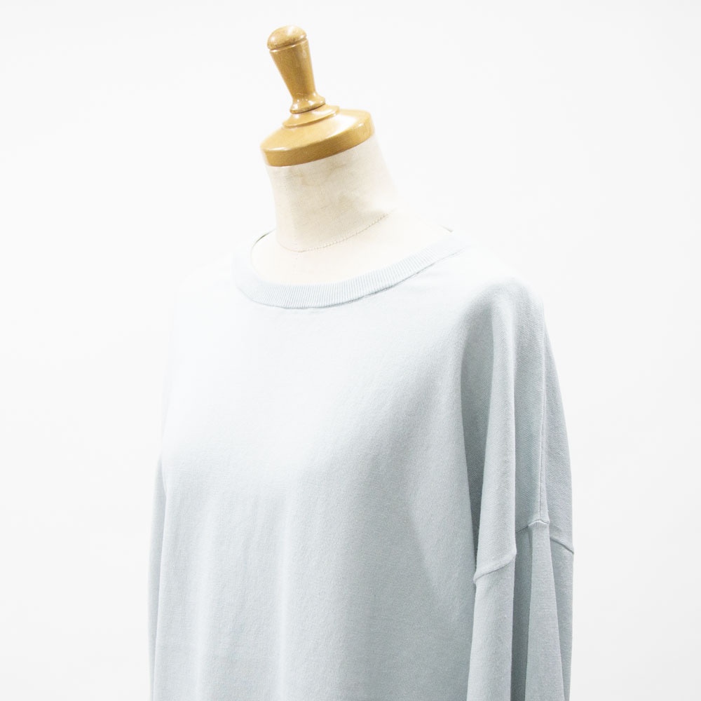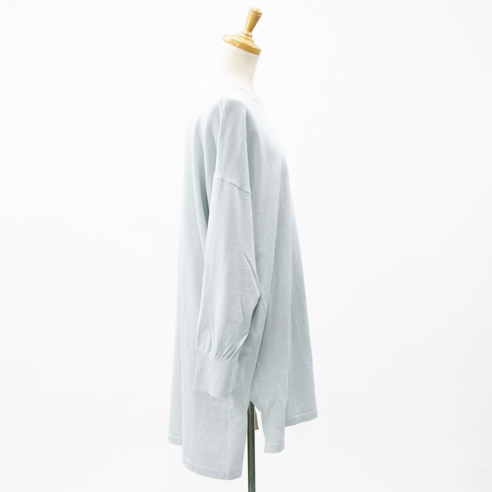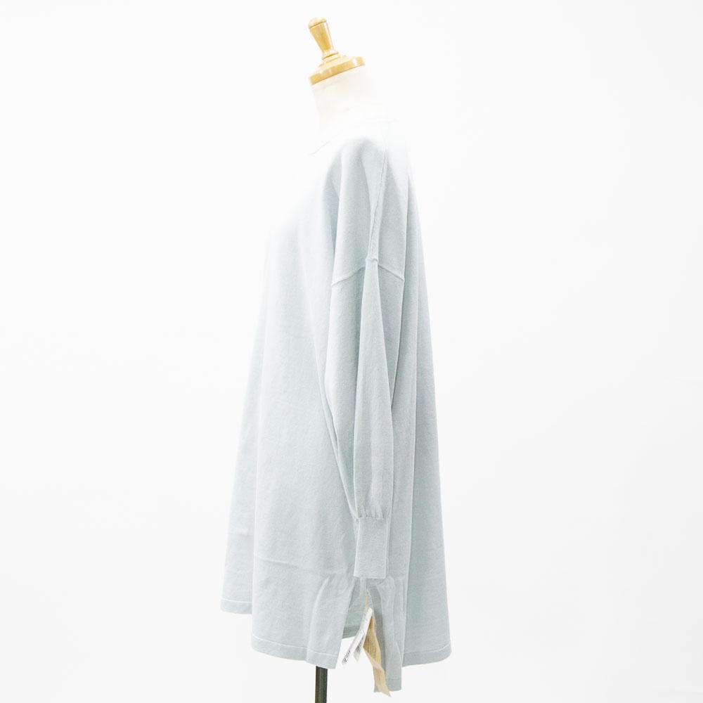 ガス焼+シルケット加工素材のニットチュニックプルオーバーです。コットン糸を編立てたキレイな目面のハイゲージニット。ゆったりとしたチュニックニットでワンピースの上から着用いただくのもオススメ。優しいミントやブルーの爽やかな色目が素敵です。サイドスリットが入っているので重ね着のしやすいデザインです。