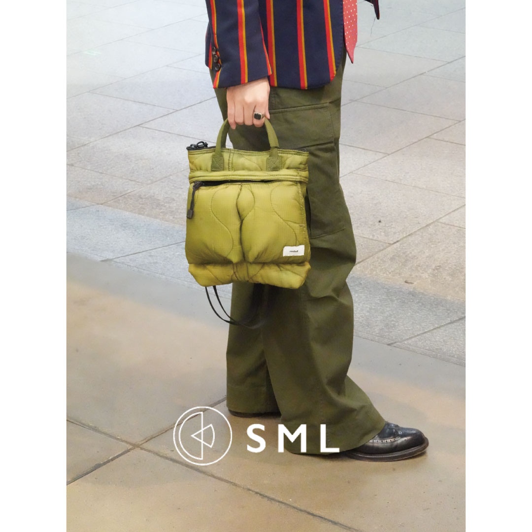 SMLの定番商品「HELMET BAG SS」を80年代頃のデッドストックのキルティングライナーを使用し生産したredadとのダブルネームアイテムで、1点1点表情が異なります。