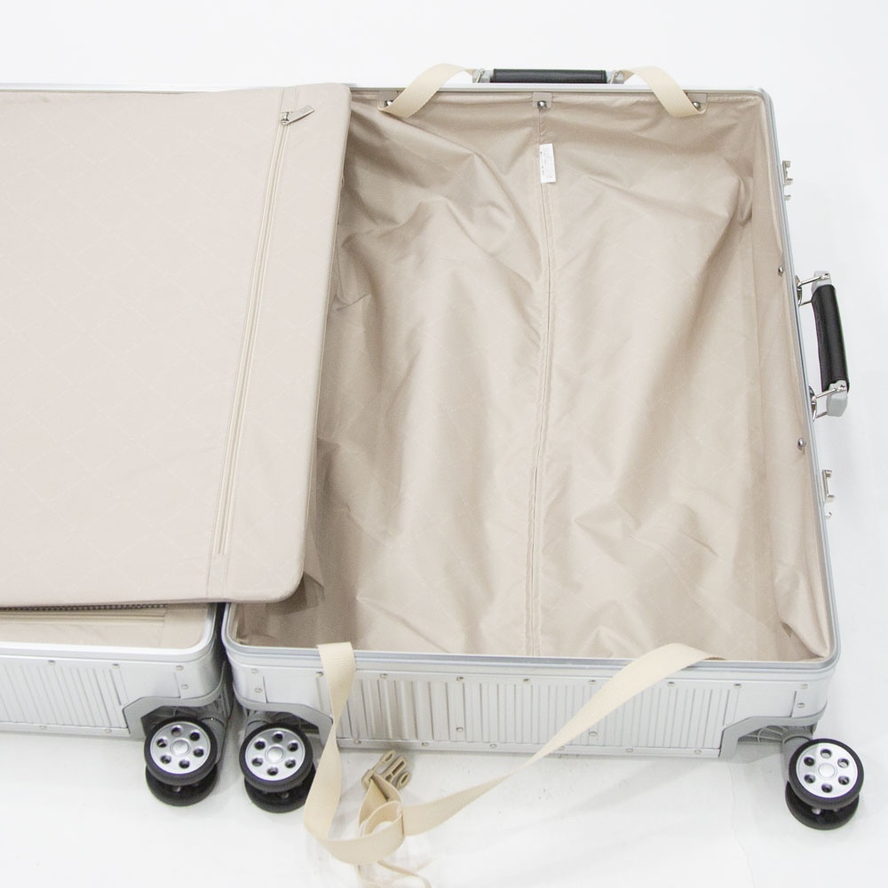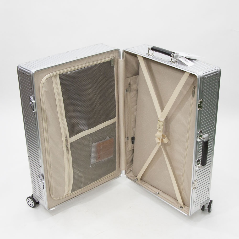 高級感のある美しい見た目と頑丈さが魅力のアルミニウムボディのスーツケース。