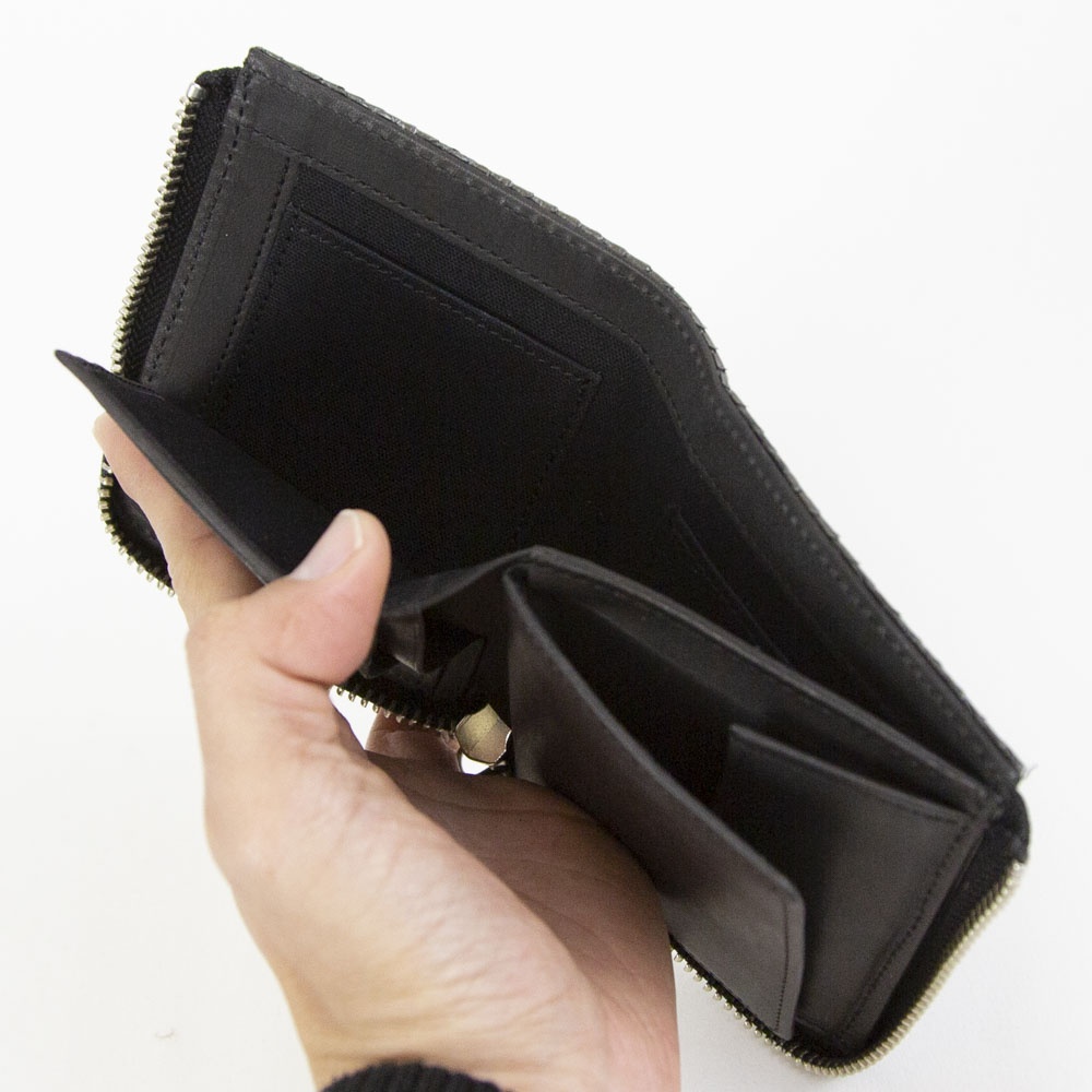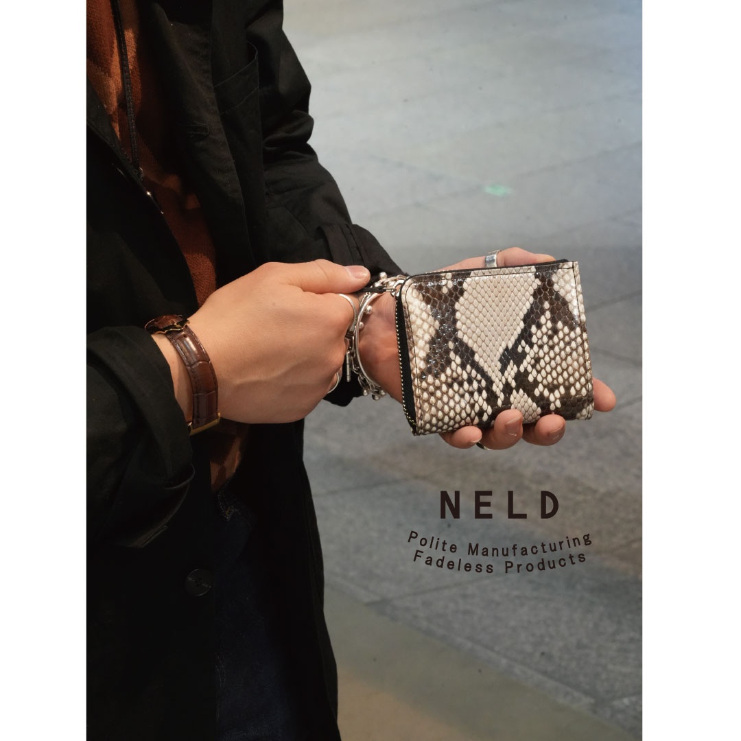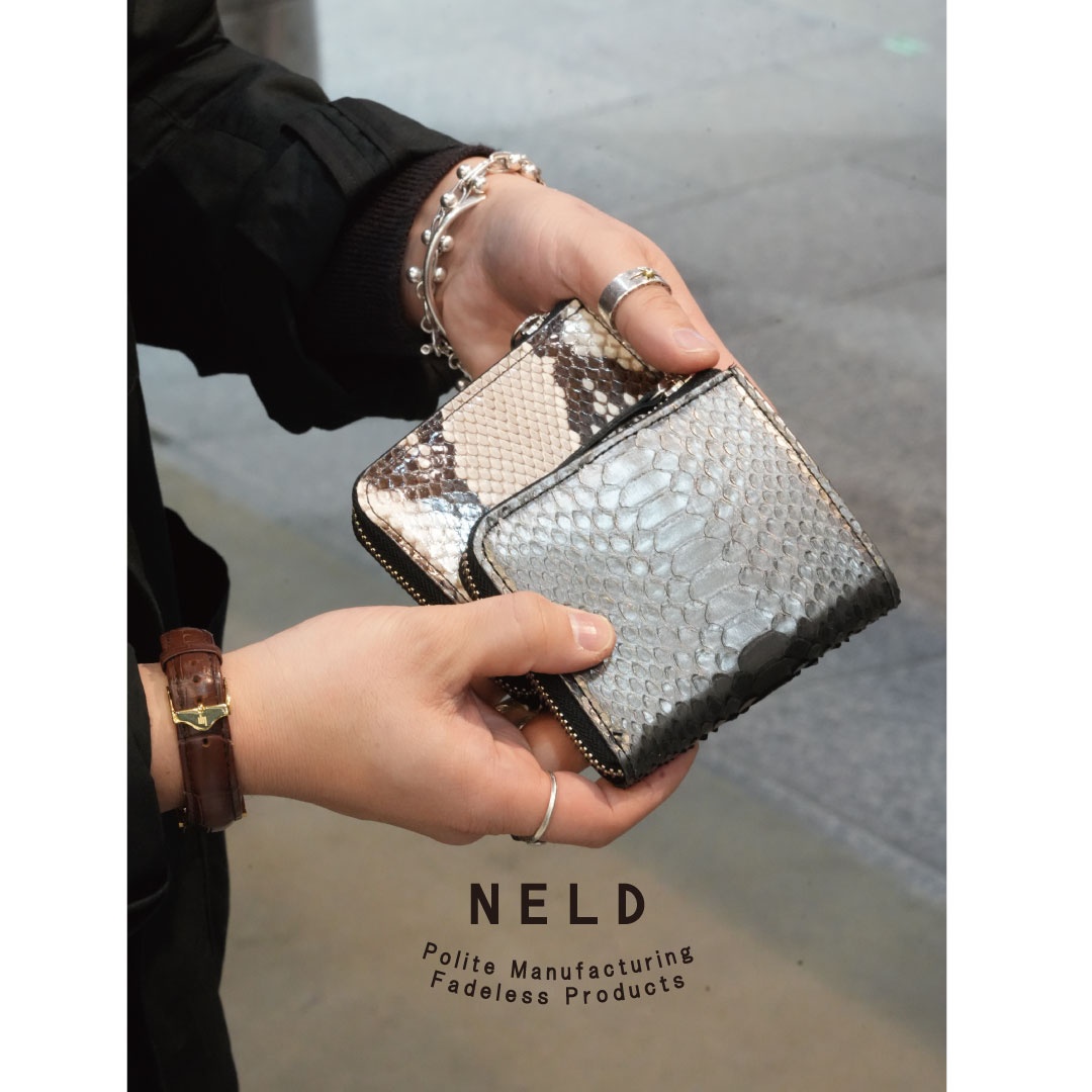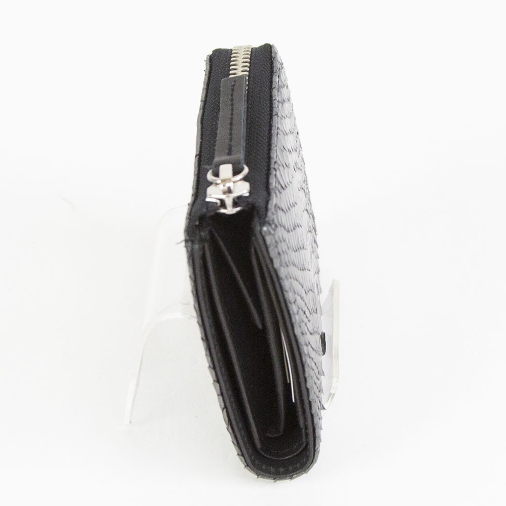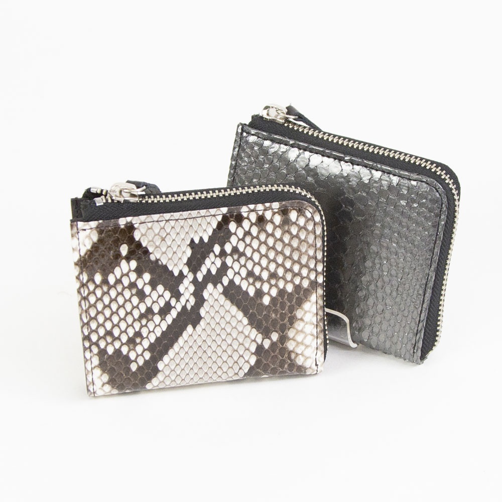 ダイヤ型の斑紋が美しく並ぶダイヤモンドパイソンレザー。 視認性に優れ、取り出しやすいボックス型小銭入れを採用しています。 表面から裏面にかけて継ぎ目の無い一枚革を使用しています。内装は丈夫な牛革です。
