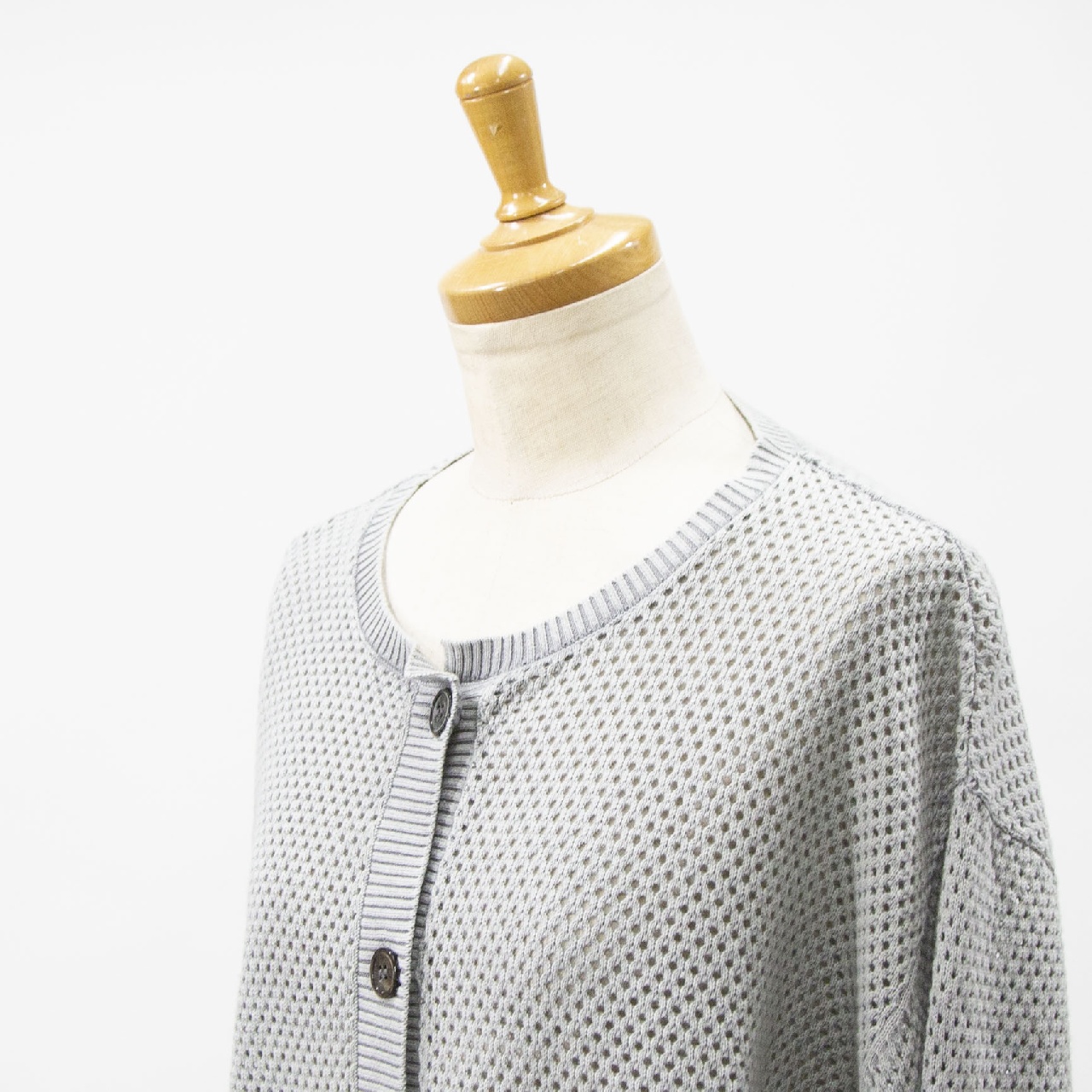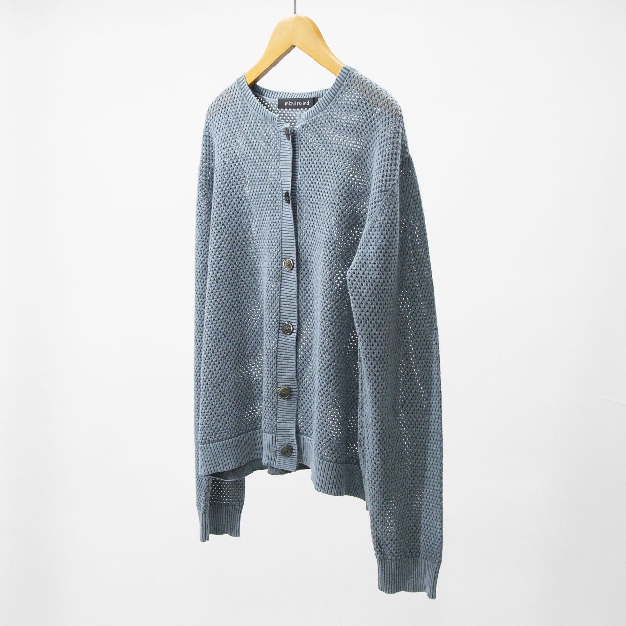 編み立てた製品にストーンウォッシュをかけてヴィンテージライクな表情を加えたストーンウォッシュメッシュクルーネックカーディガンです。薄手のコットンニットを使用していることで、サラッとした感触でヒップ上の程良くゆとりのあるサイズ感。春の季節の変わり目に気軽に羽織っていただける1枚です。編地の透け感も重ね着で楽しんでいただけるデザインで幅広いシーズン愛用していただけます。