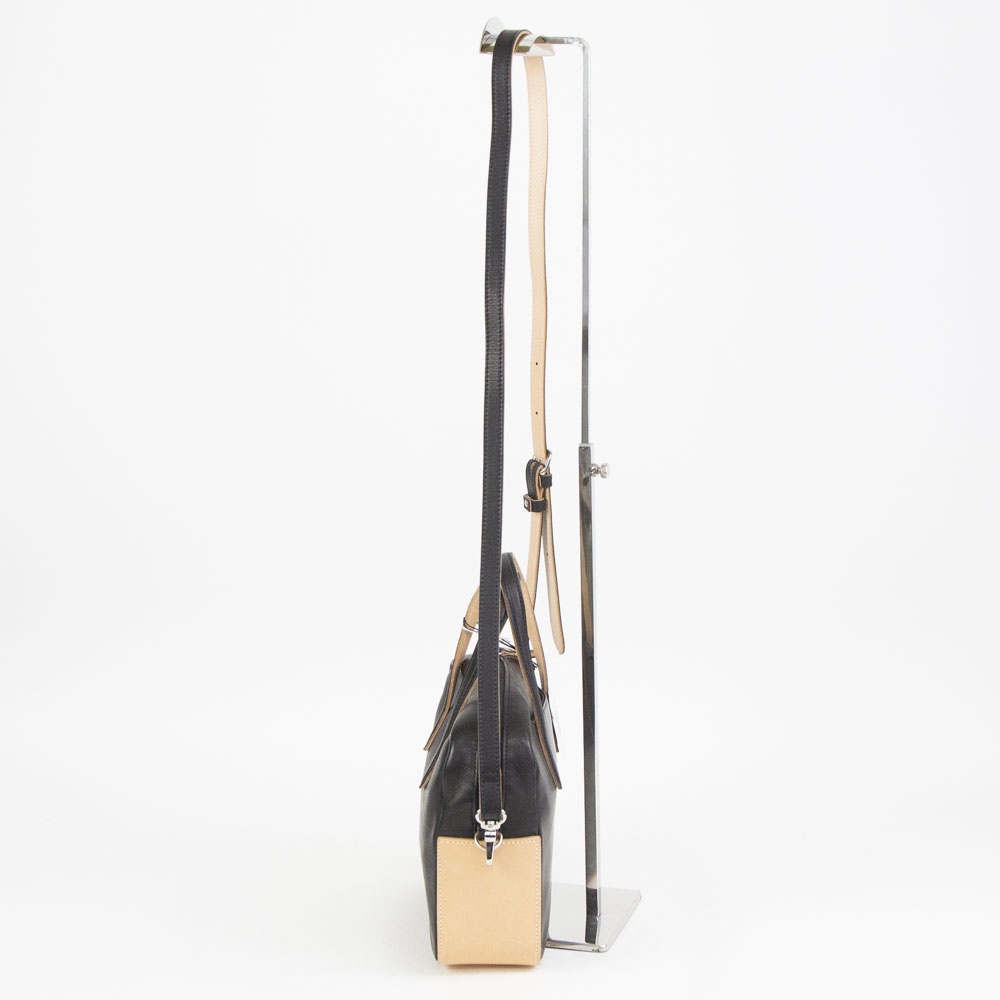 質なヌメ素材のコントラストと構築的なフォルムが印象的。 経年変化が楽しめる滑らかな素上げ牛革と白ヌメ革を合わせたソフト&ハードの革コンビでモードを表現。 シンプルながら主張を感じさせる自分らしいスタイルのある人に向けたコレクションです。