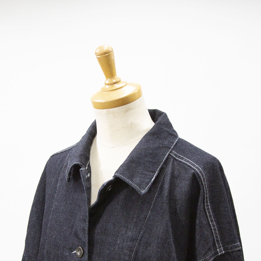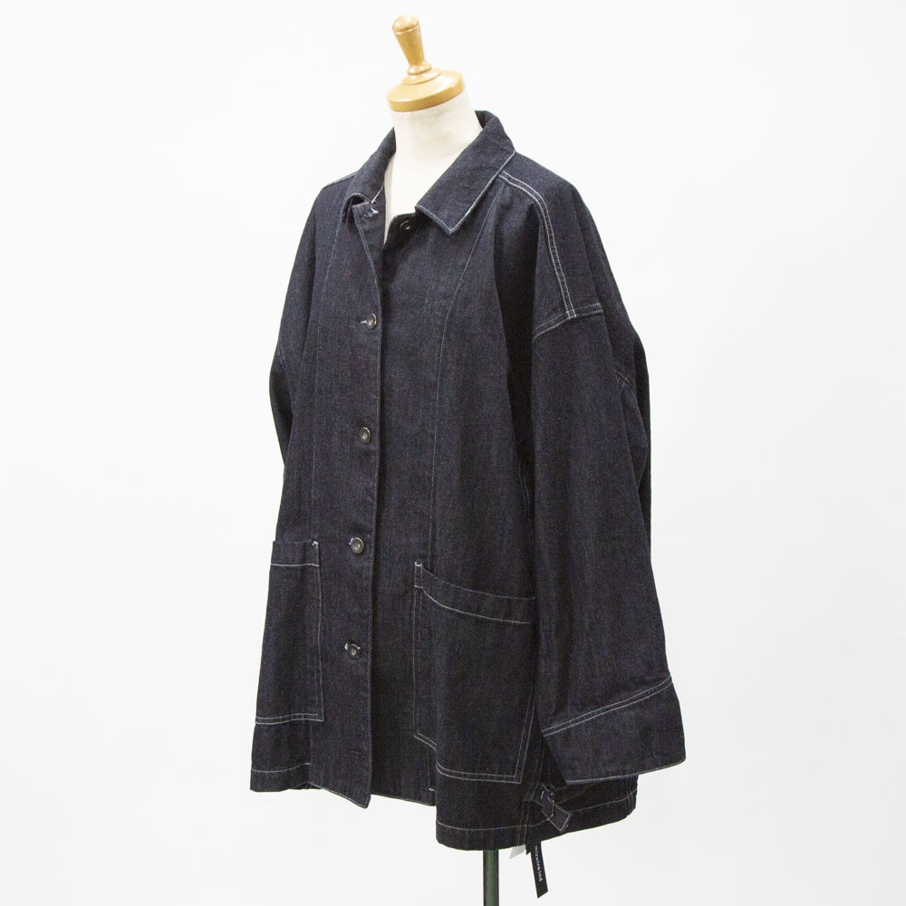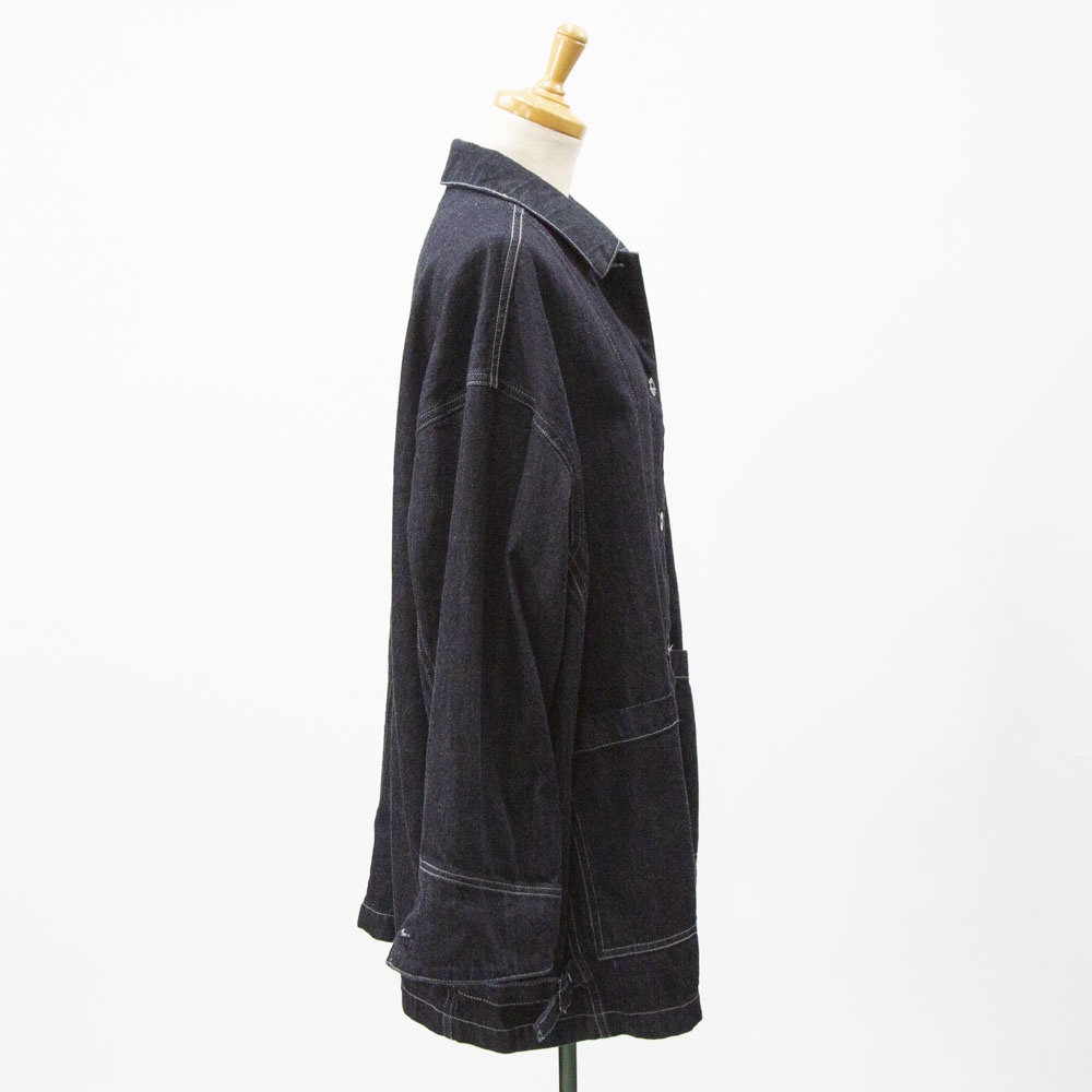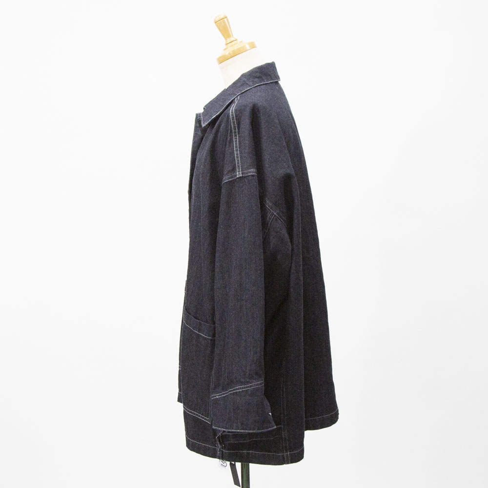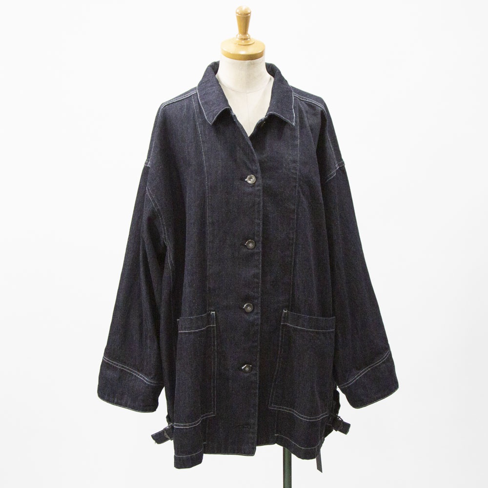 mizuiro indからワークウェアディテールを取り入れた存在感あるワイドデニムカバーオールが入荷しました。ロングシーズン着やすい10OZデニム素材で気軽に羽織れる1枚。シルエットに変化をつけられる脇のアジャスターやボリュームのあるカフスなど細部までこだわりのあるアイテムです♪