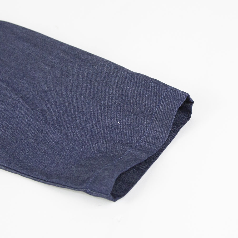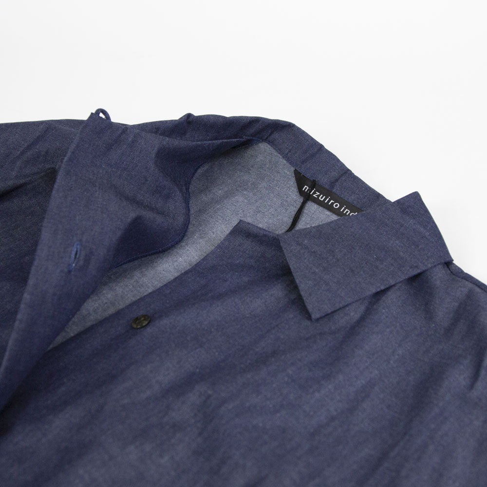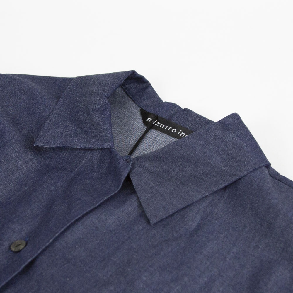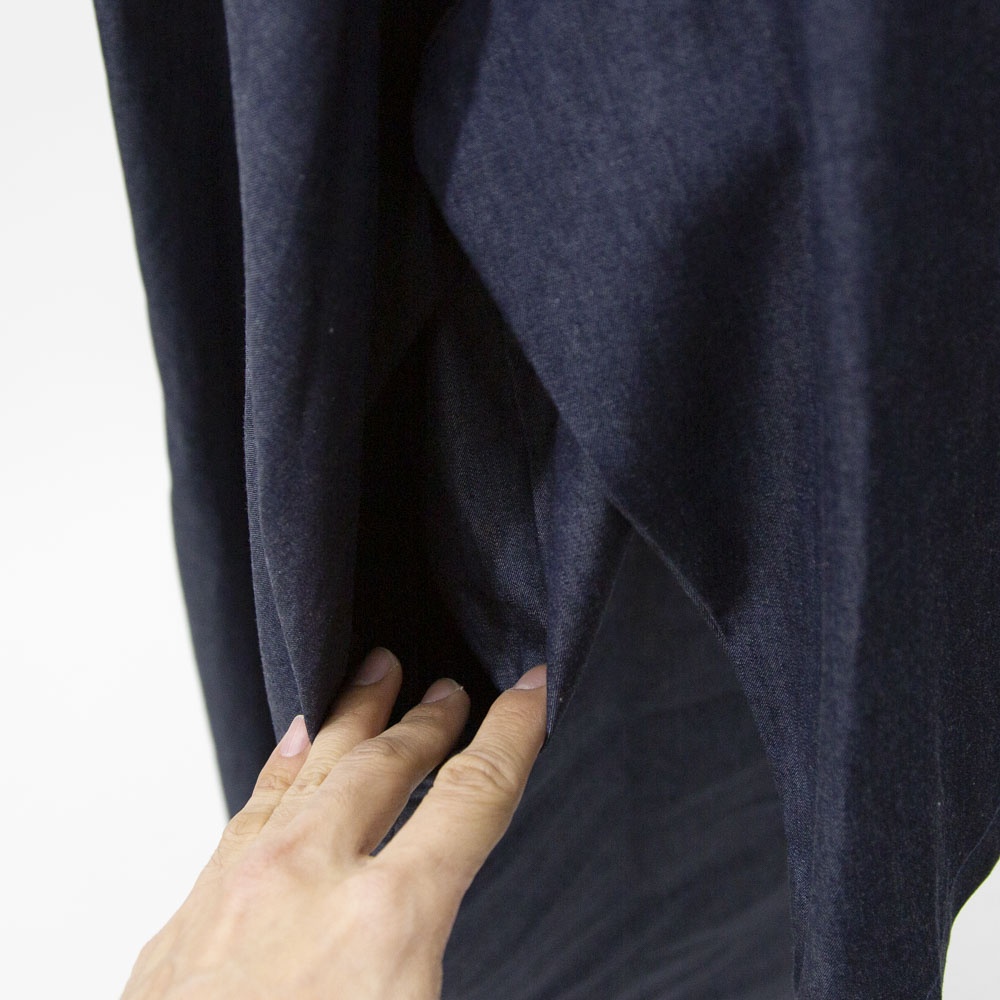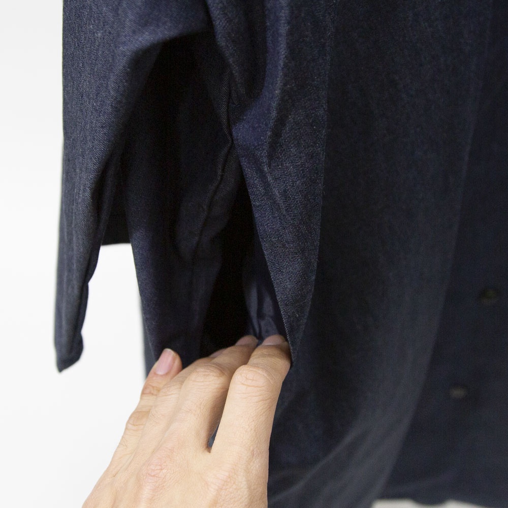 4.5OZのデニム素材を使用したデニムワイドシャツワンピースです。程よい光沢もあり上品な質感が特徴。袖も太めで軽めのアウターとしても使えるシャツワンピース。裾の広がりのないシルエットでワンピースとしてもコートとしてもコーディネートができる1枚です。