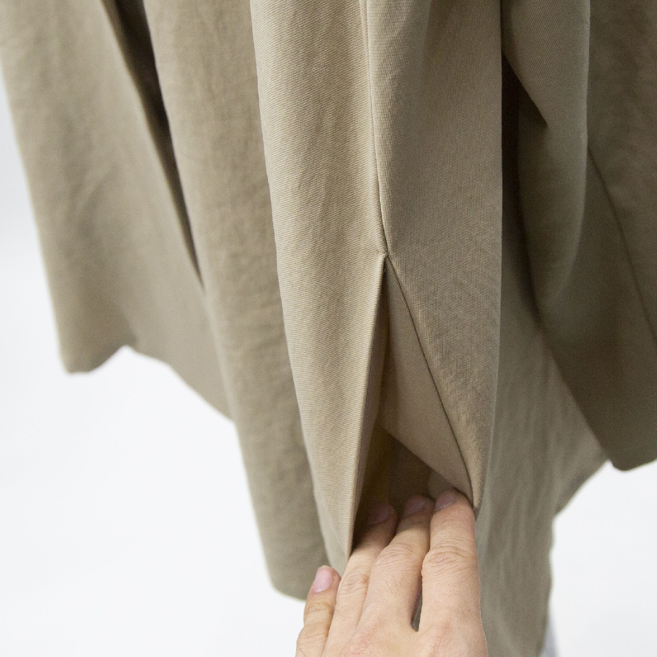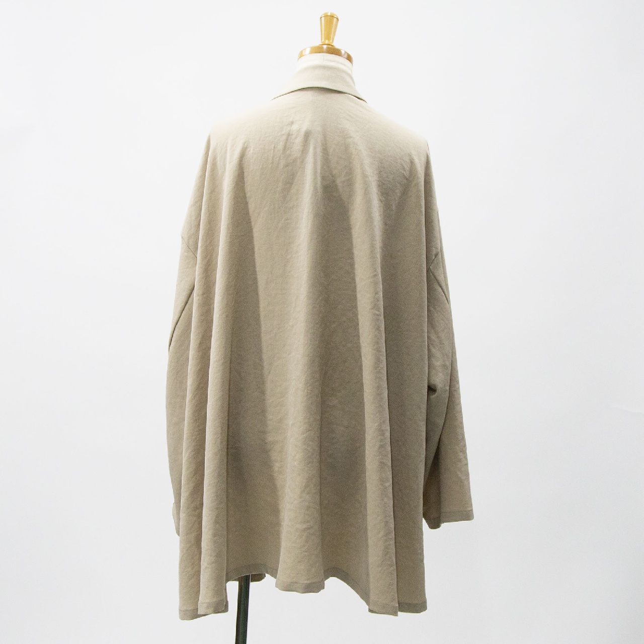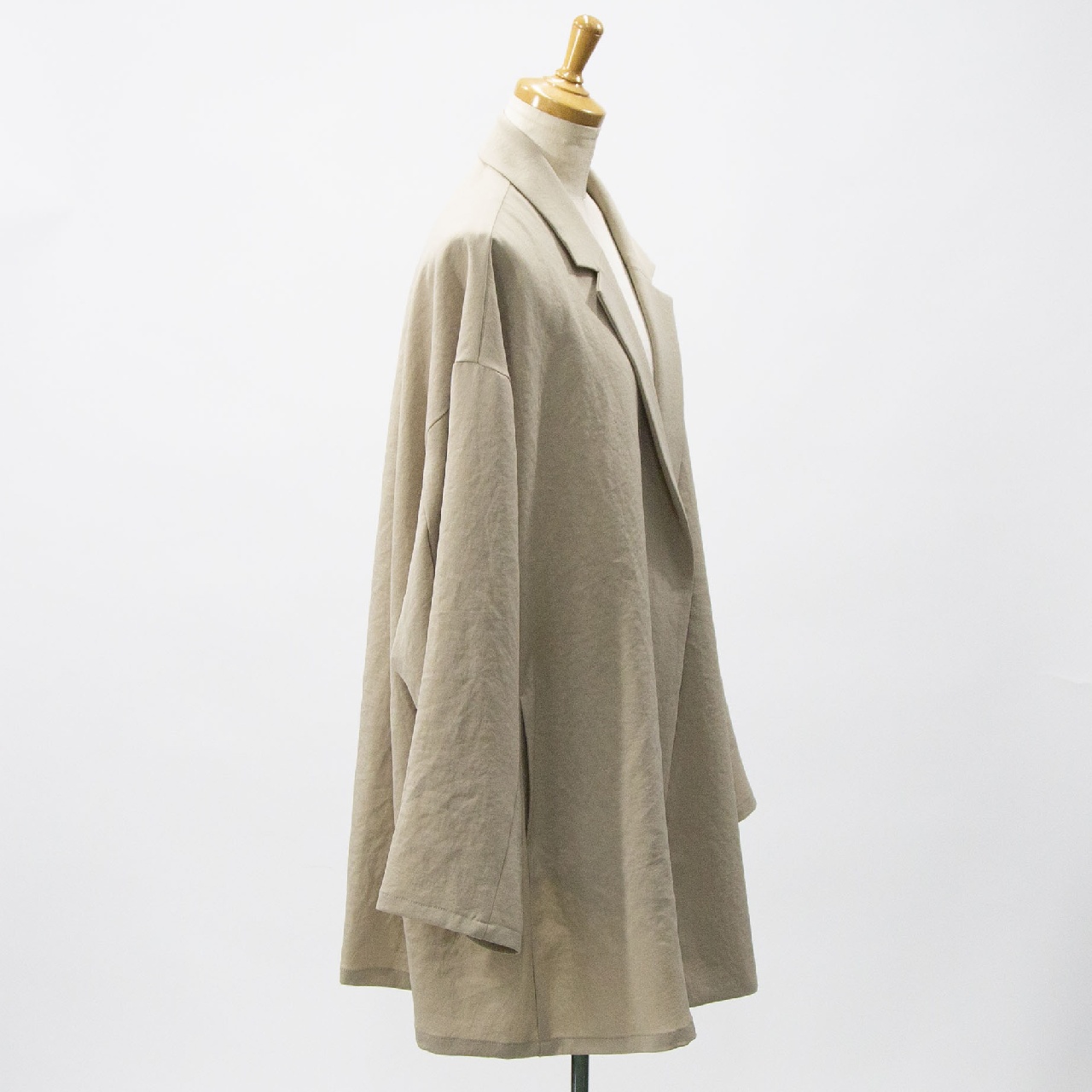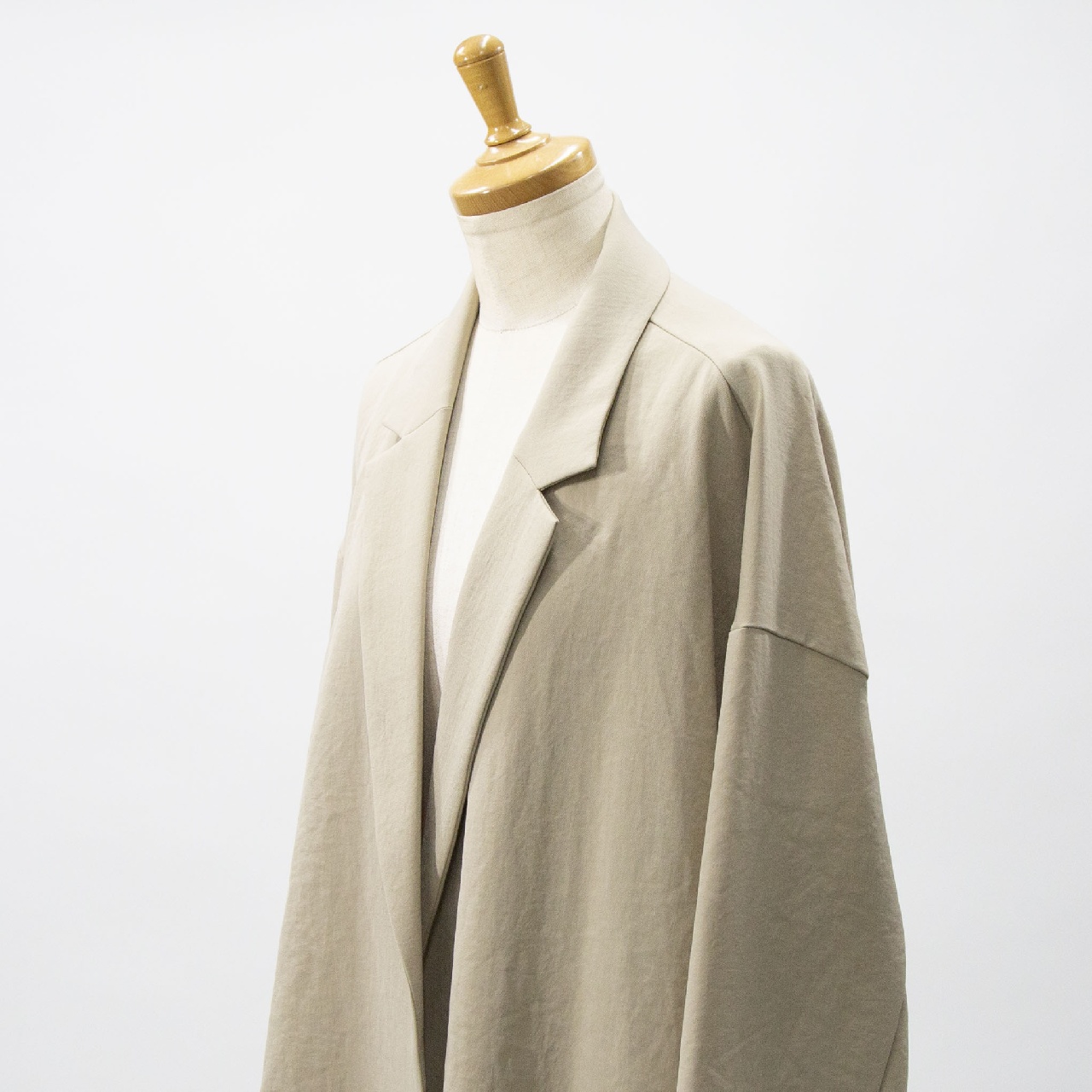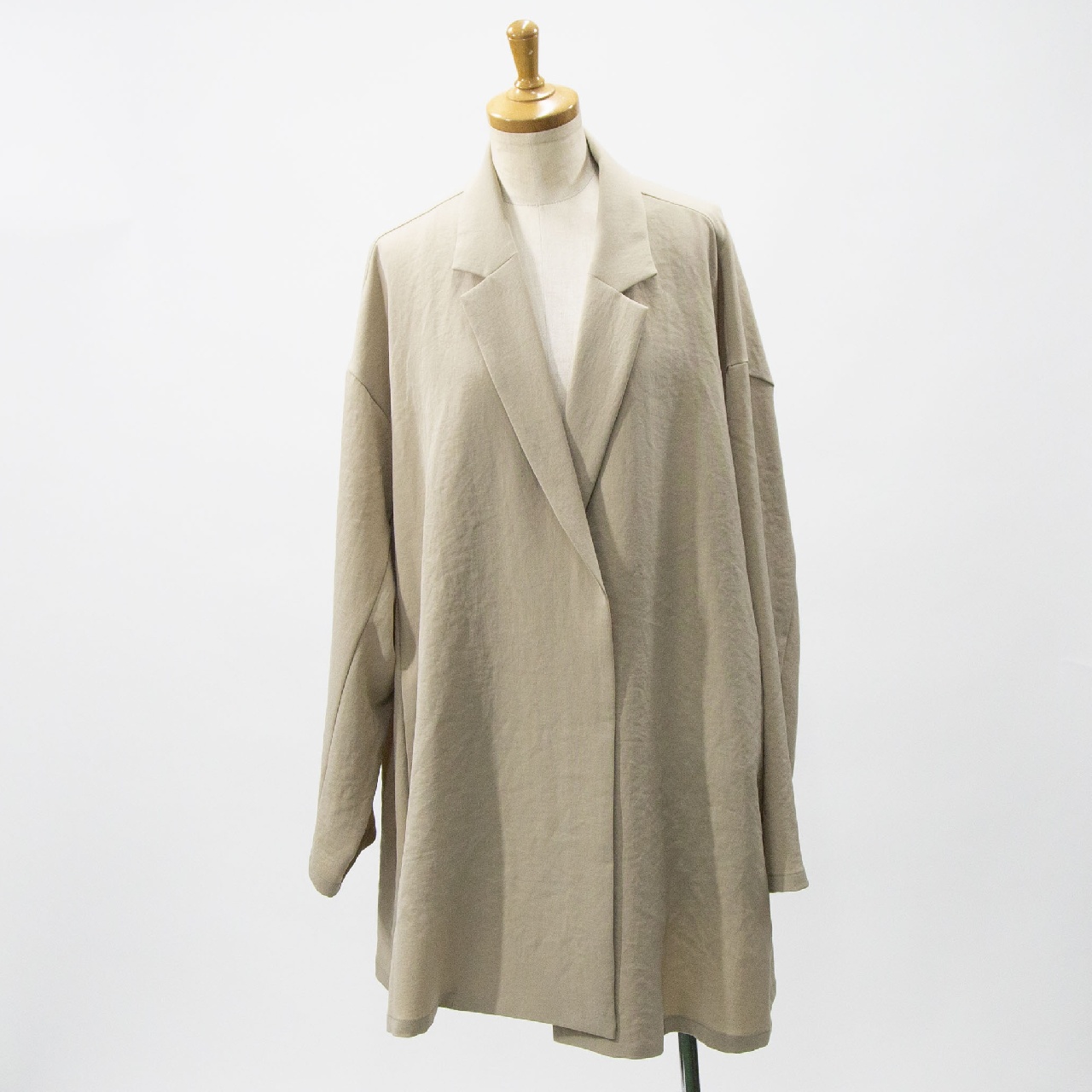 mizuiro ind定番のデザインで、ドライツイルワッシャー素材のテーラードシャツジャケットです。さらっとした肌触りが特徴。ボタンはなくすっきりとしたヒップの隠れる少し長めのデザイン。広がりのあるフレアラインが上品で印象的。上下セットアップもオススメで、1-260109/ラップライクイージーパンツとオケージョン対応に活躍していただけます。