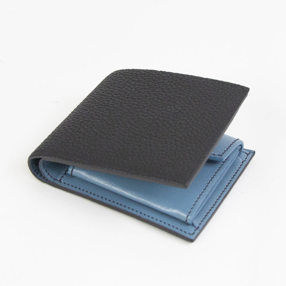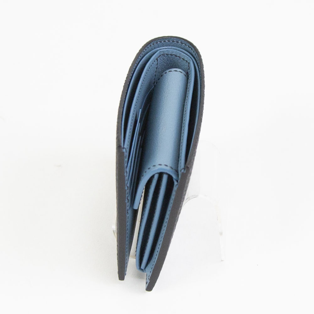 コインケース付きの2つ折りウォレット。お札・コイン・カードの3種が収納できる使い勝手の良さで、時代を問わず常に高い人気を誇るアイテム。背面側の札入れは2室構造で、お札と領収書を仕分けできます。また、フラップ式のコインポケットも仕切りで2層に分かれており、細かな小銭類が見分けやすく、支払い時もスムースです。