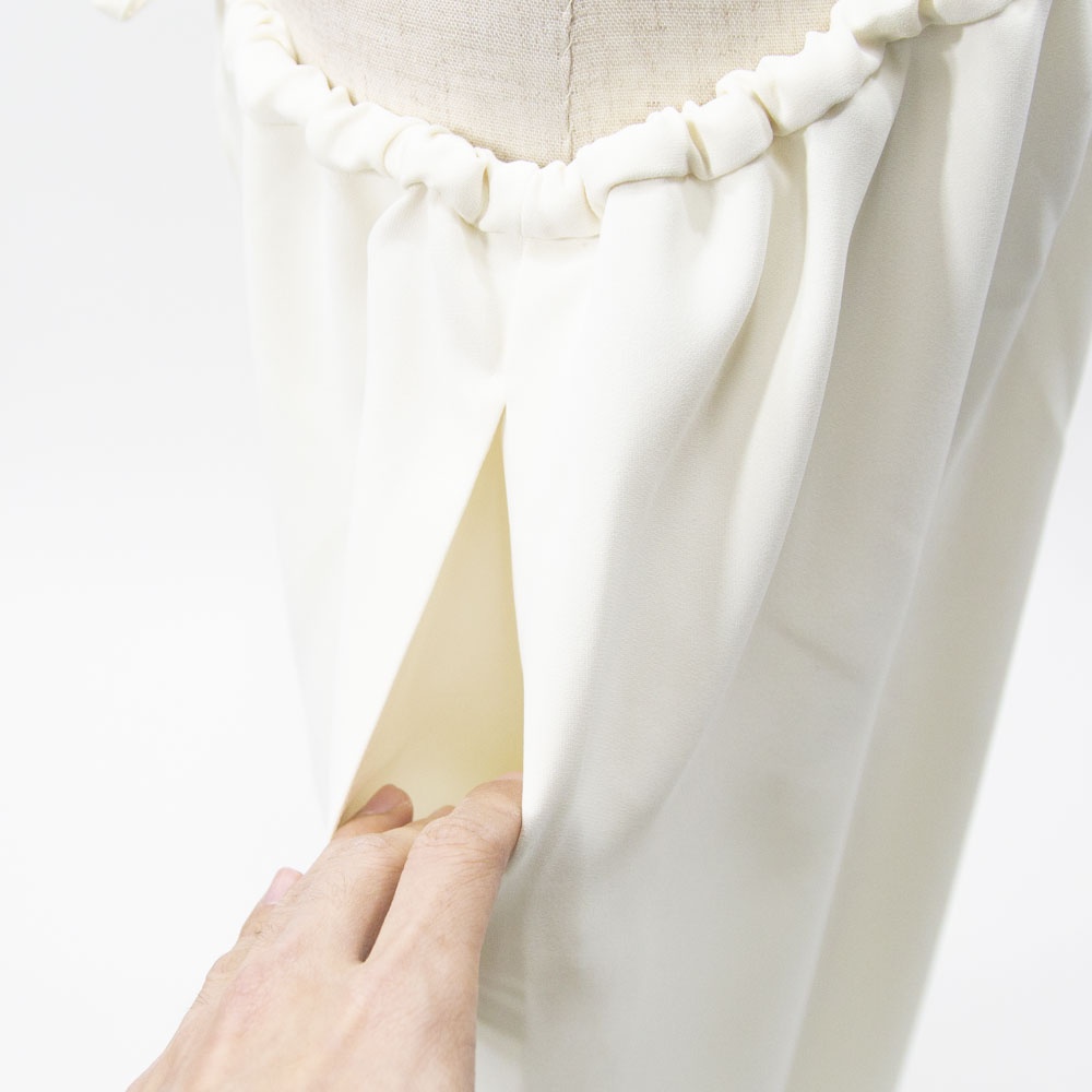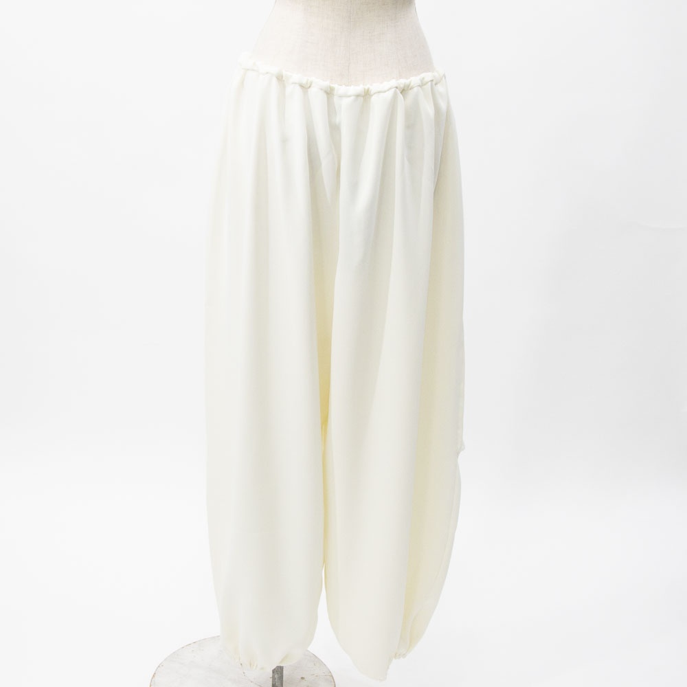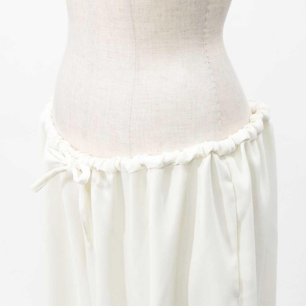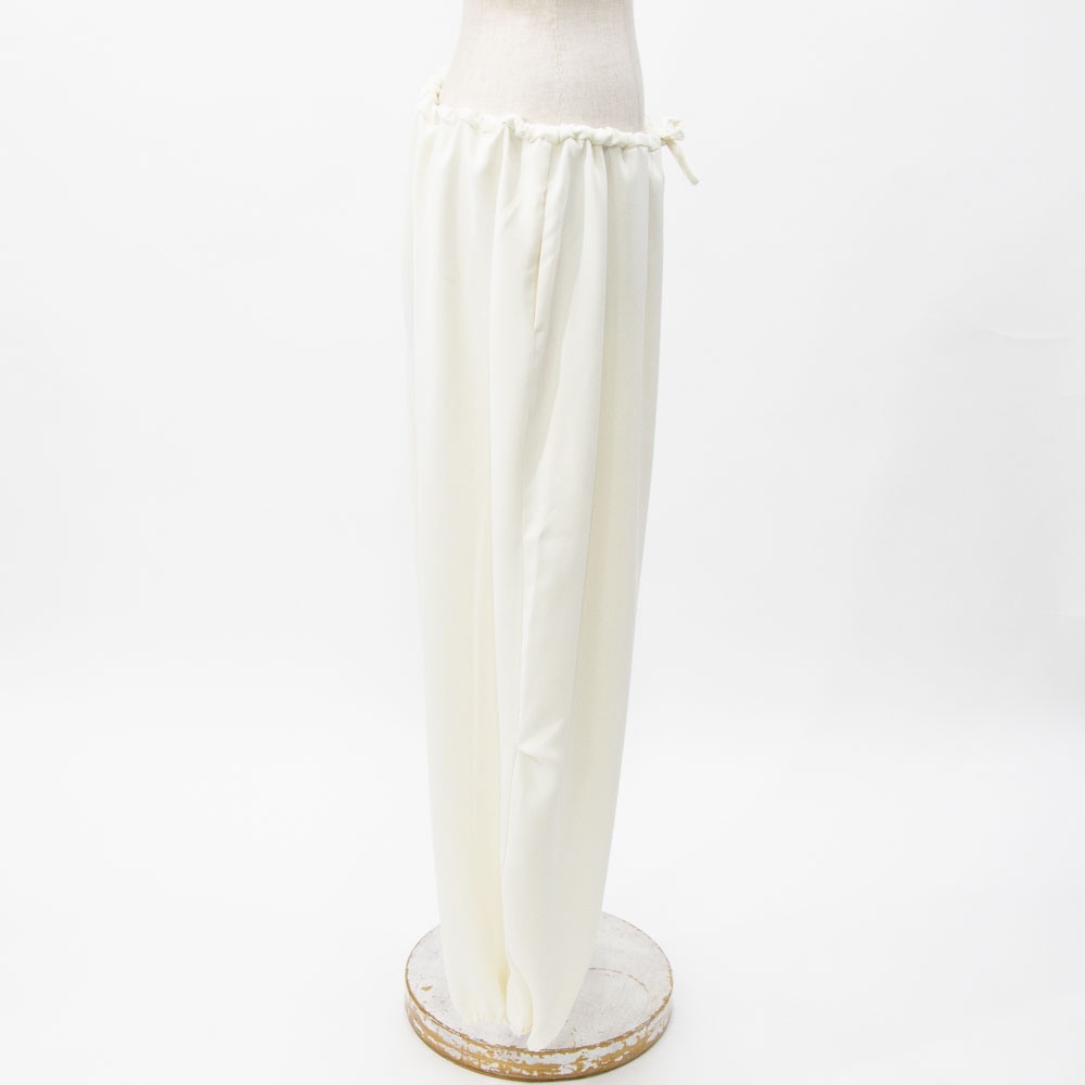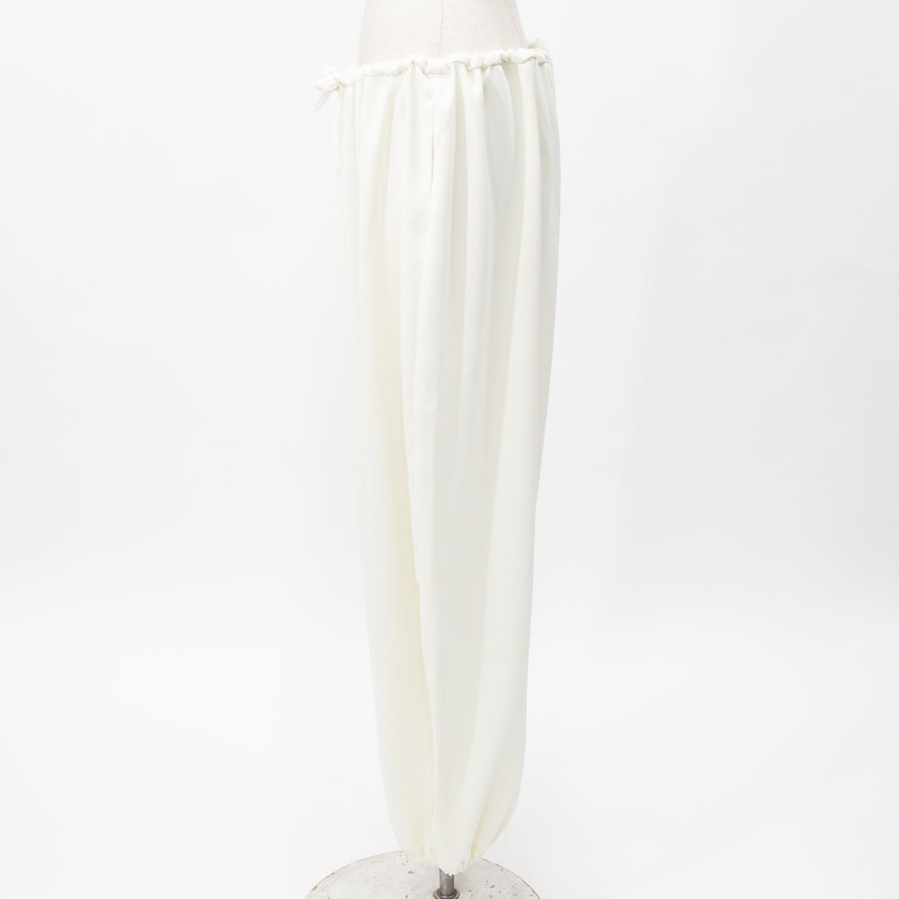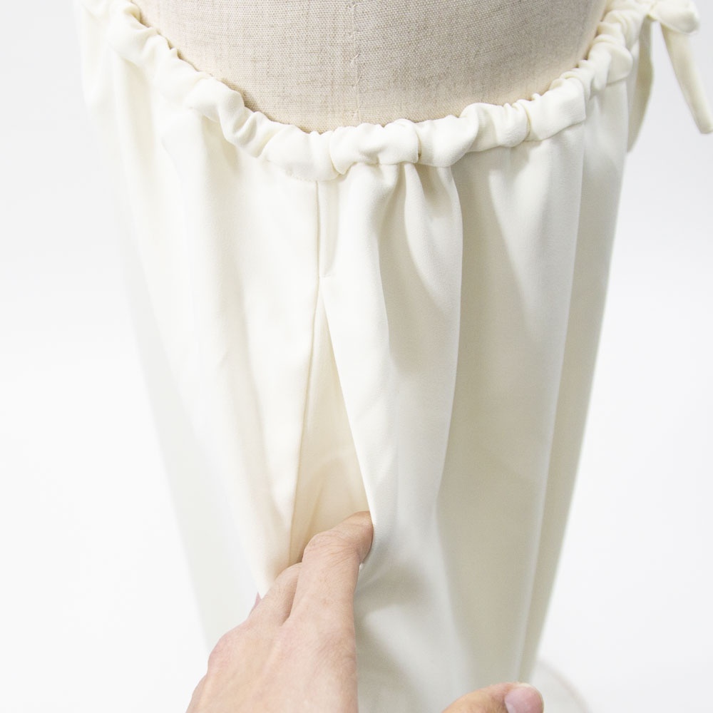 ストレッチダブルクロスのマットな表情としなやかな落ち感が特徴のドローストリングヘムイージーパンツです。裾にゴムが入ったイージーパンツでシューズにワンクッションタブらせる雰囲気の丈感。落ち感のある素材で穿き心地のよい1枚。ウエストはゴム使用に加え調整紐付き。