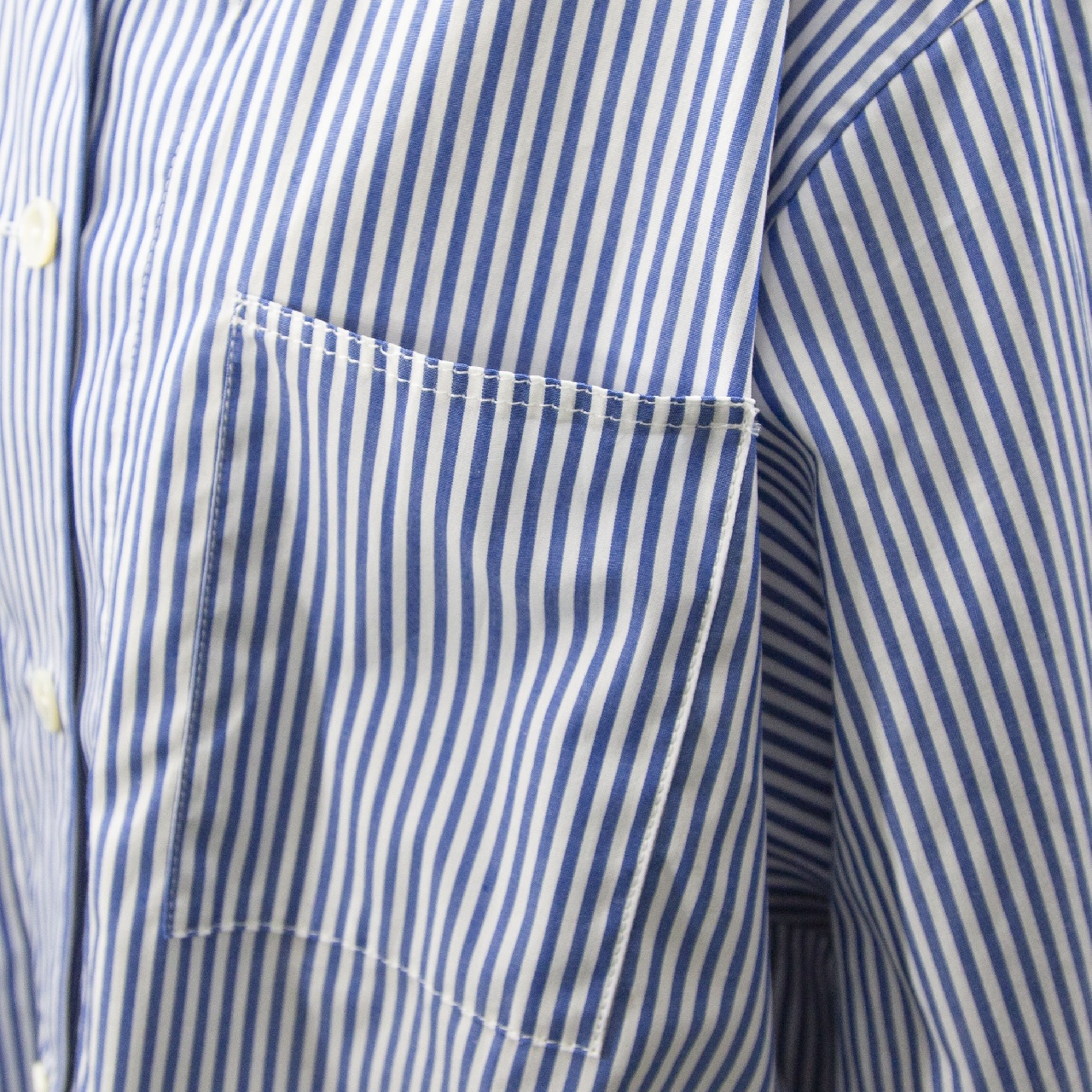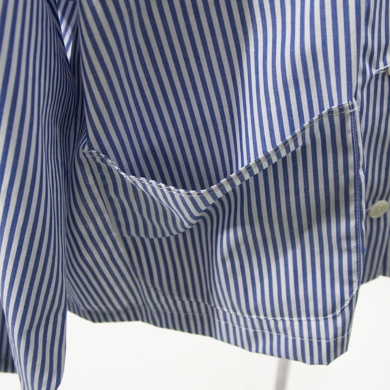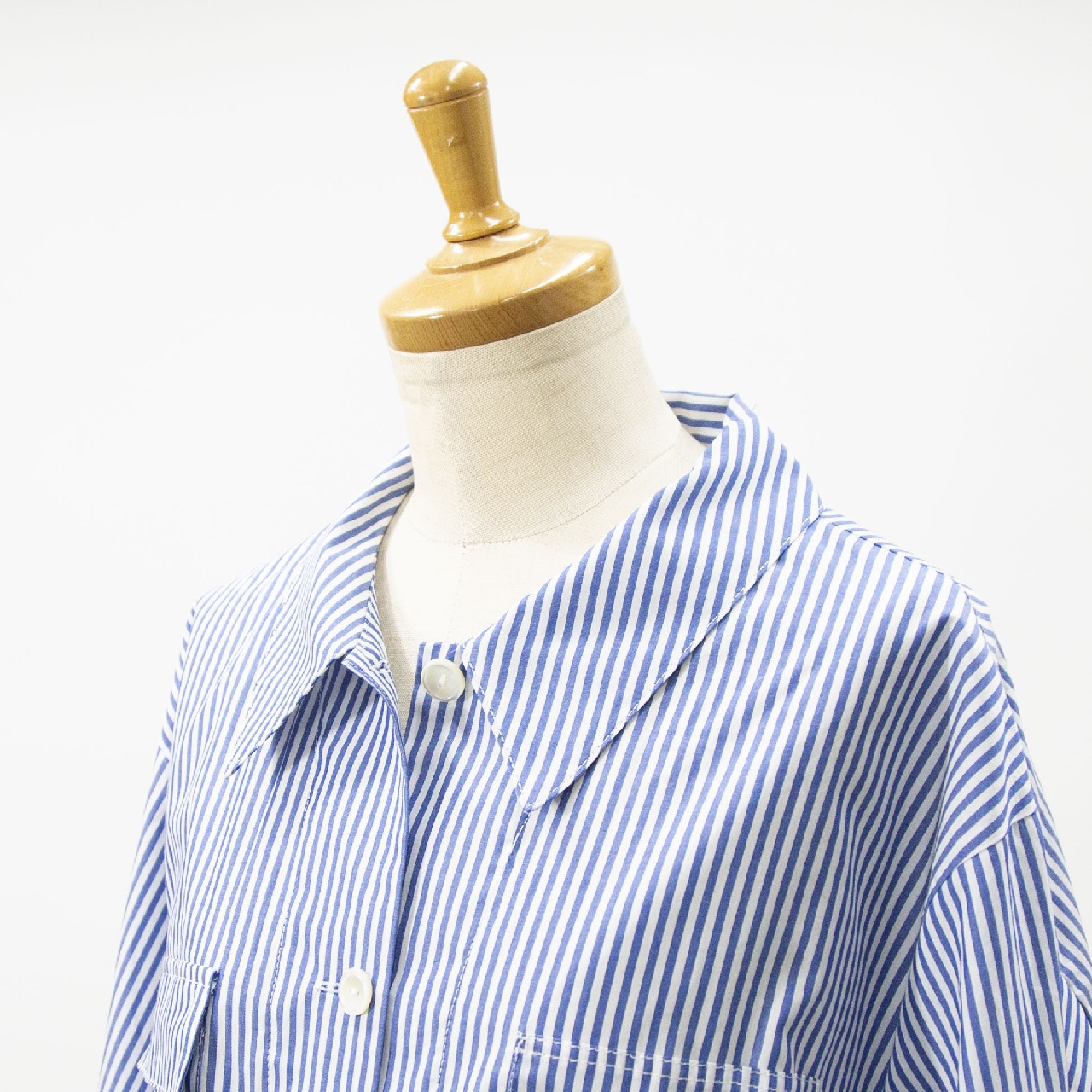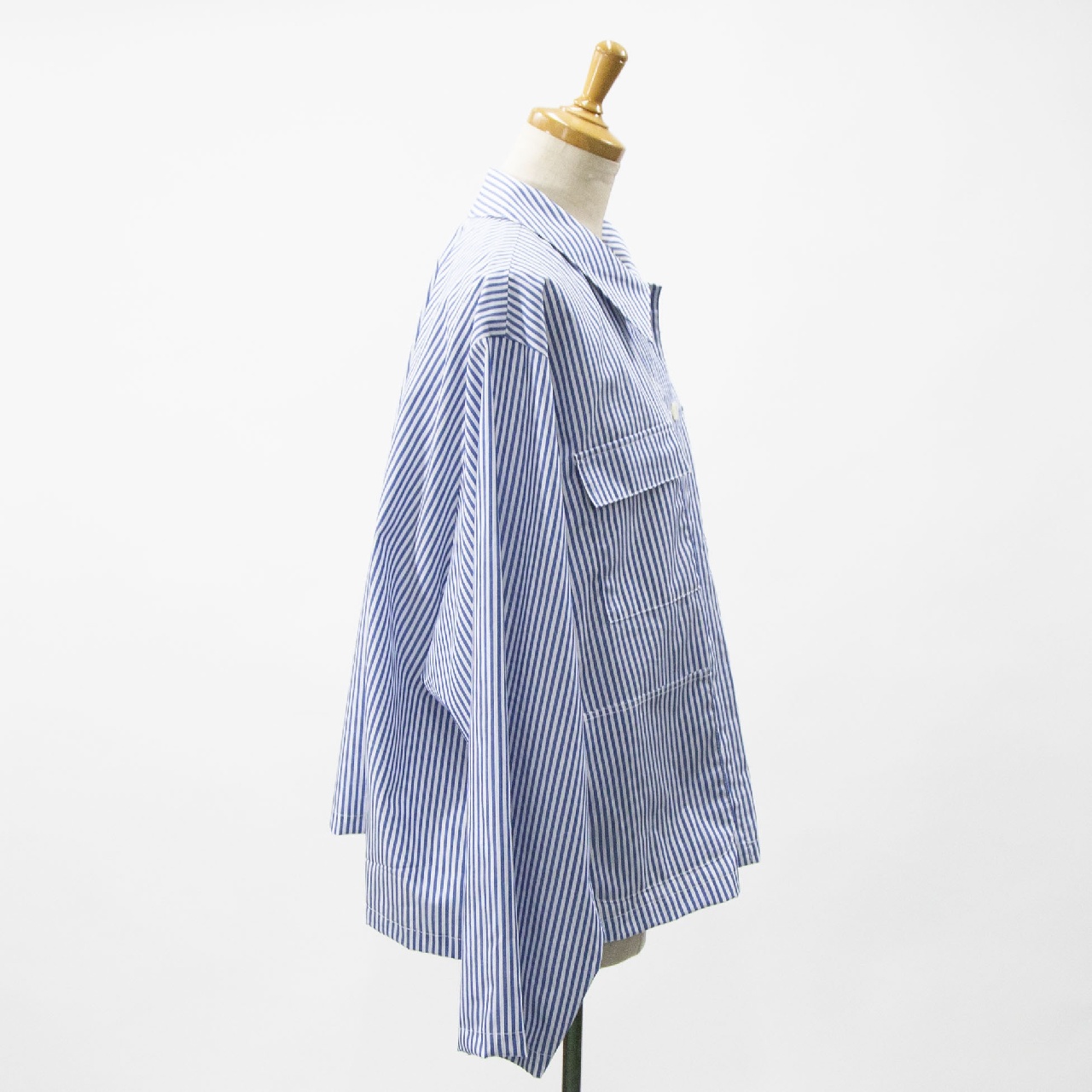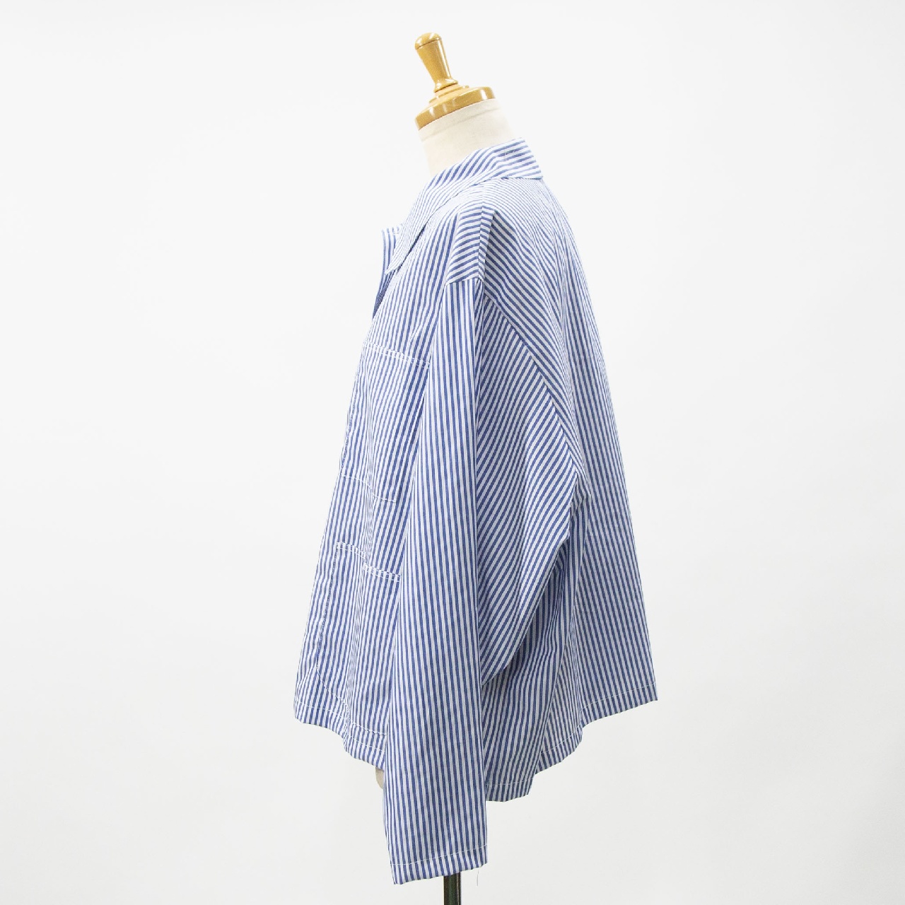 mizuiro indらしいストライプアイテムとしてストライプカバーオール入荷しました。30番のステッチ糸を使用してフロントポケットが4つ付いたシャツジャケット。コンパクトなジャケット仕様で軽めのアウターとして羽織って着こなしてもOK◎インナーを見せたりコーディネートも幅広く楽しんでいただける1枚です。