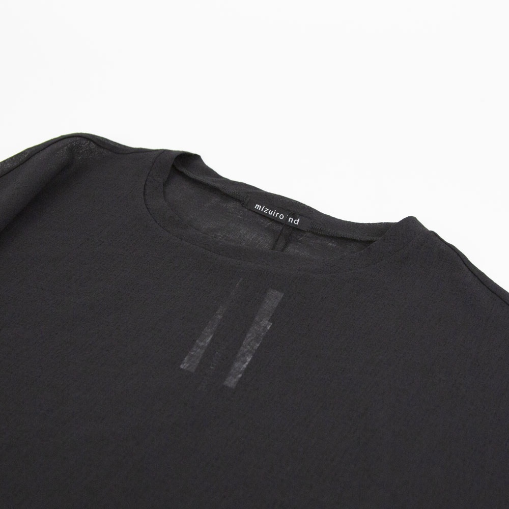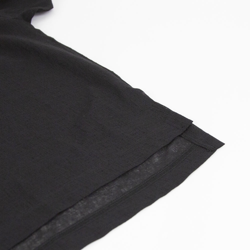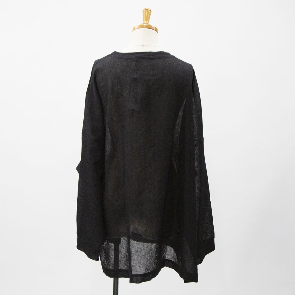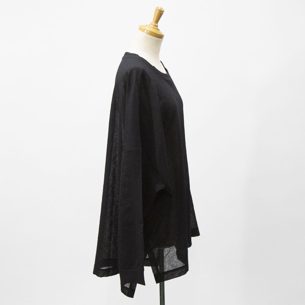 洗い加工が施されたワッシャーボイルクルーネックワイドプルオーバーです。和紙のようなシアーな質感が特徴的。透け感と通気性があるので暑い時期はインナーはキャミソールで◎日焼け対策にも役立ちます。前後差を付けた動きのあるデザインとサイズ感なので、長袖との重ね着にもお勧め。シンプルに着回しがきくので長く愛用していただけます。