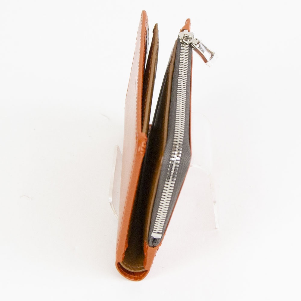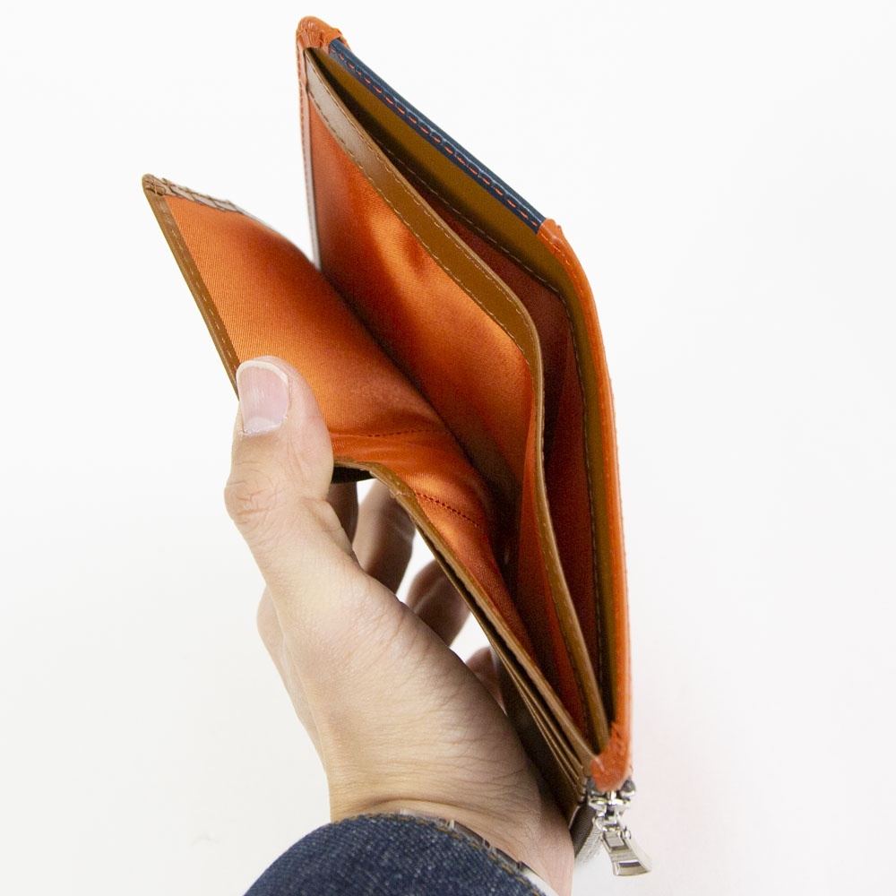 本体素材は日本で唯一LWG(レザーワーキンググループ)と取得しているタンナーで作られており、ステアレザーにクロム鞣しをして染色し、銀面を擦って浮きが出ない様に特殊な薬品を使いタイトコート加工をしています。 バインダーで銀面を平らに滑らかにならしていき、塗料を吹き付けることにより綺麗な発色のレザーになります。 表面にはキップ調の型押しをすることでキメの整った仕上がりとなっています。