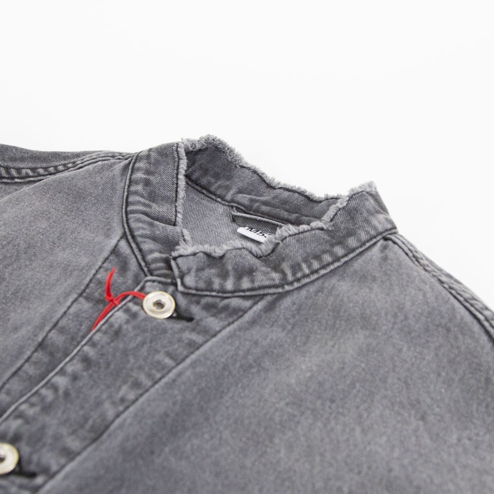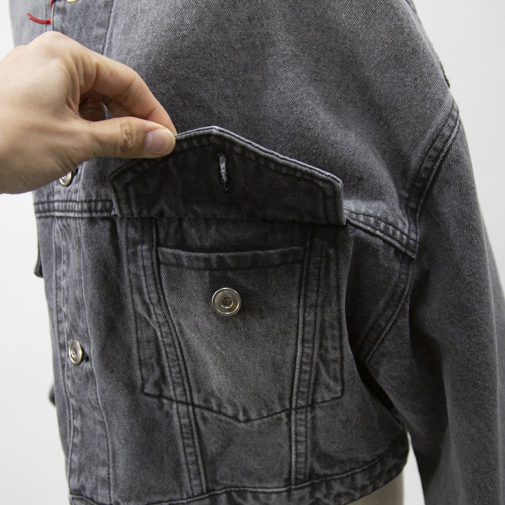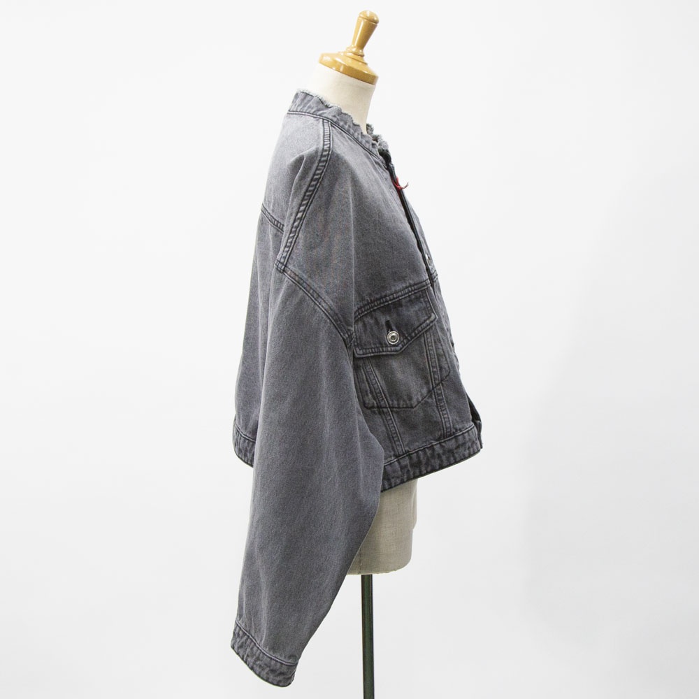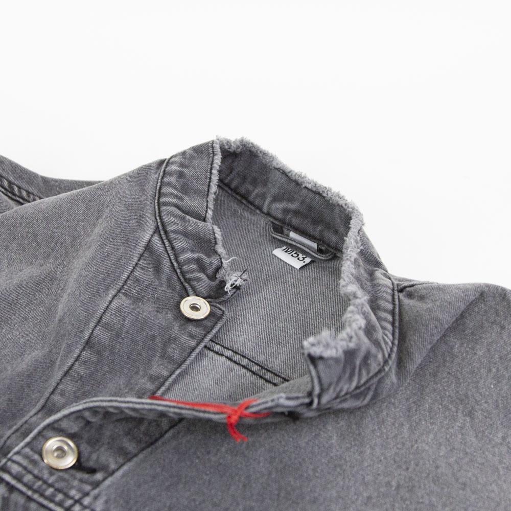 袖口と裾のダメージ加工で雰囲気のあるデザインになっています。 ワイドな身幅で横からのシルエットも魅力的です。 M53.のロゴはステッチとフリンジで表現。 ブリーチ感も程よく柔らかな色合いに仕上がっています。