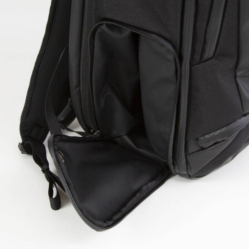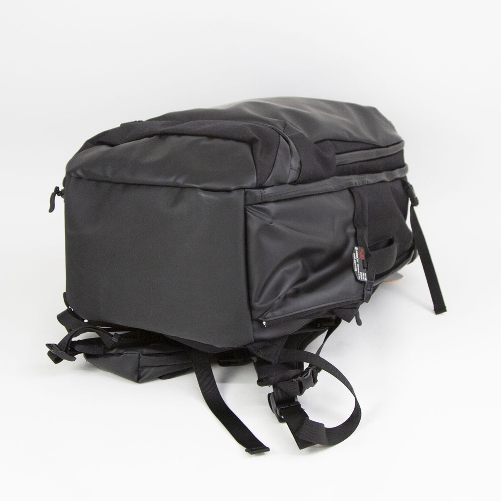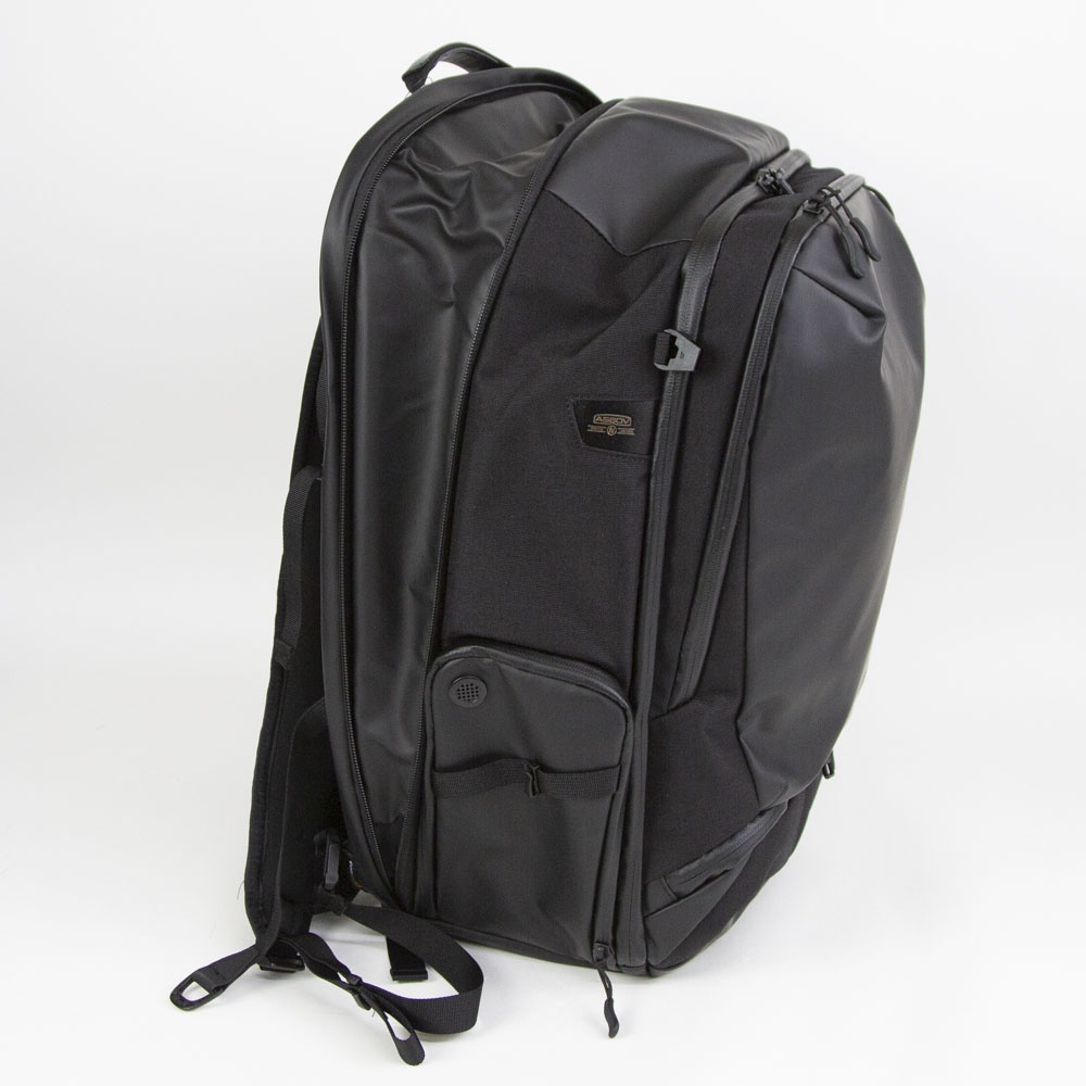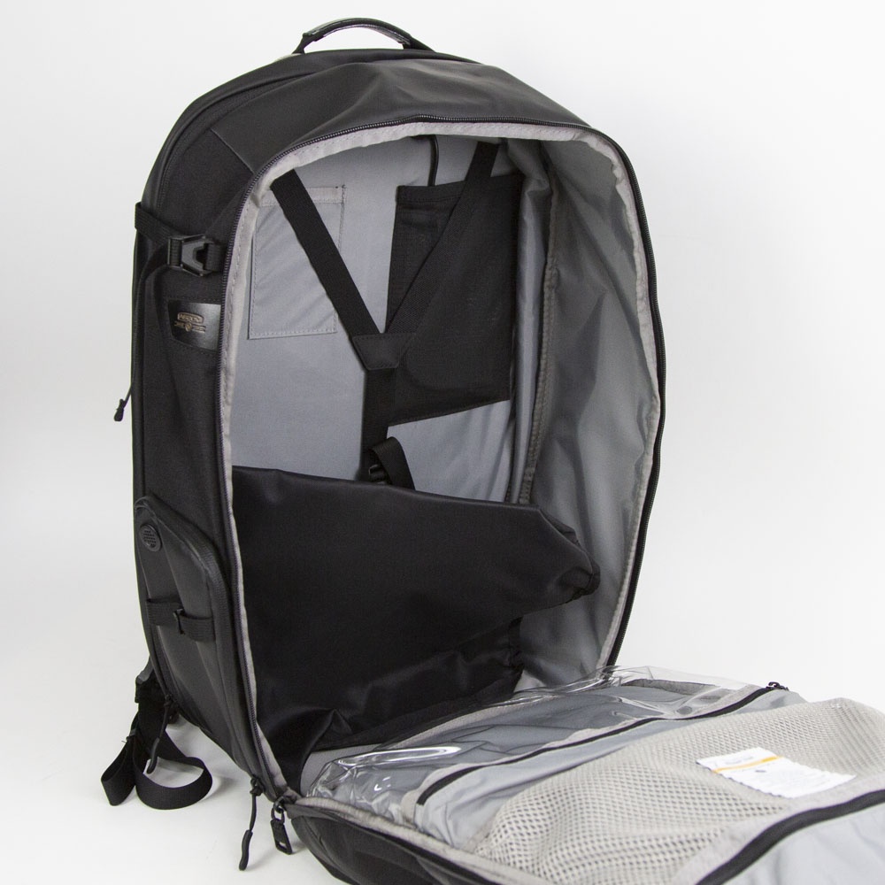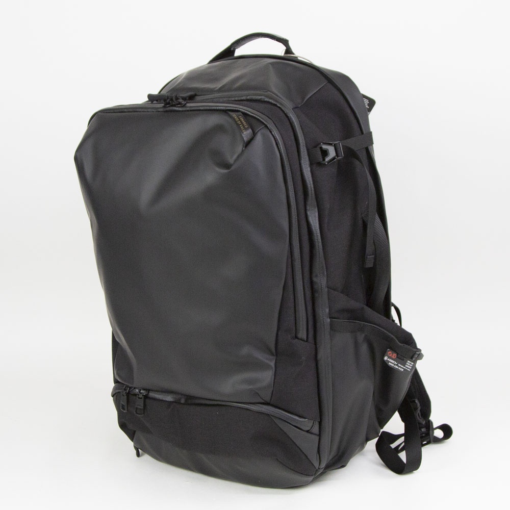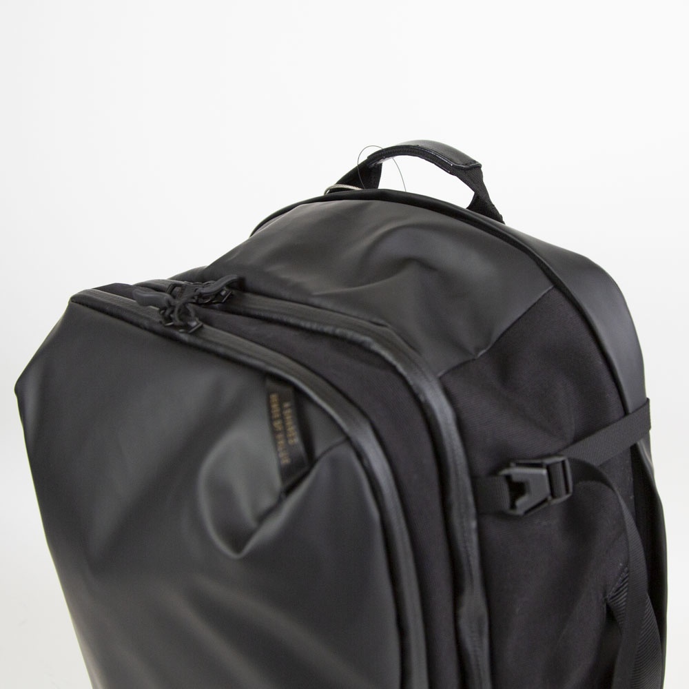 軽量ながら高い耐水性・耐久性を誇るオリジナルファブリックを採用し、ノートPCやタブレット、充電ケーブルなどのガジェット類を整理できる専用ポケット、衣類のパッキングに適したメインルーム、キャリーオン機能まで備え、ビジネスバッグとしても旅行バッグとしても活躍します。