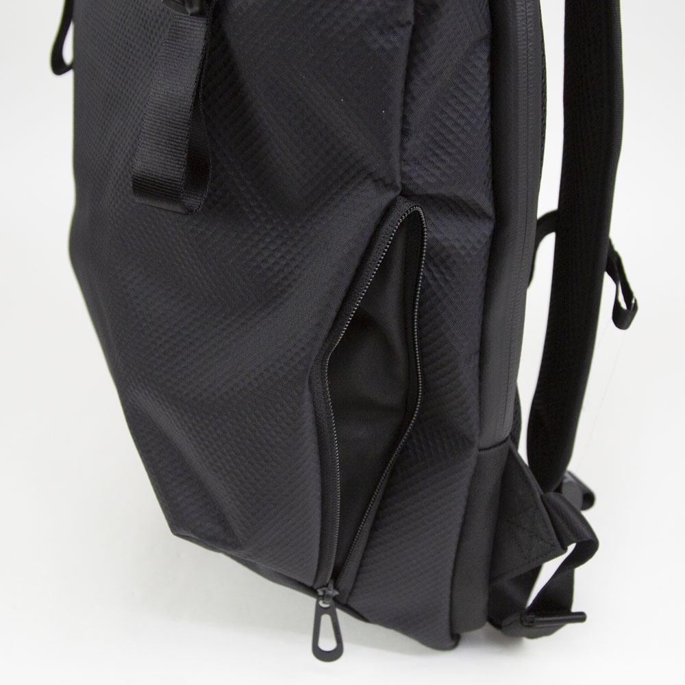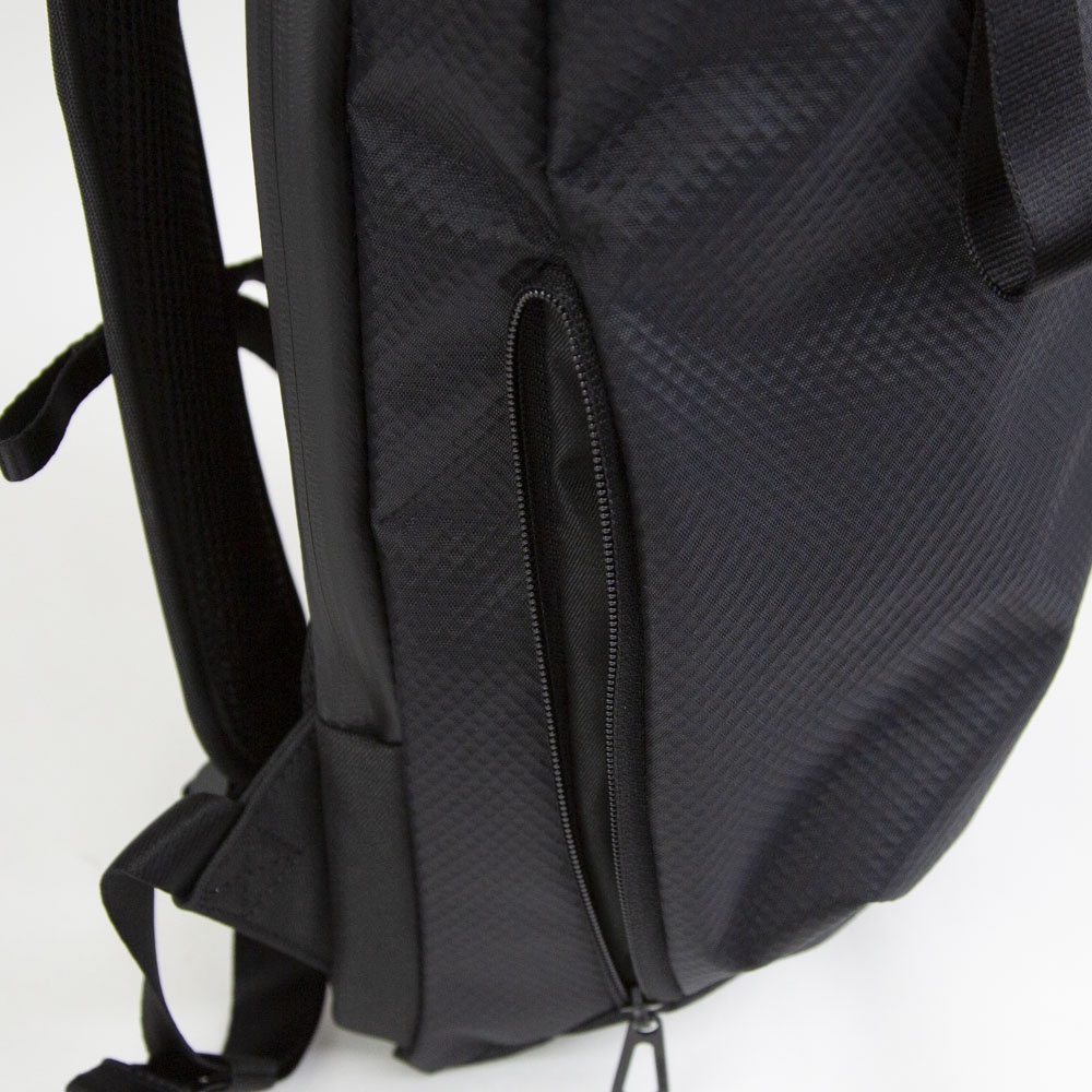 両サイドにはスマートフォンや鍵を素早く収納できるポケットを配置。背面にはラップトップスリーブを内蔵した専用のコンパートメントを備えており、デバイスを他の荷物と分けて安全に保護します。