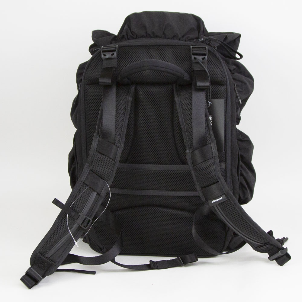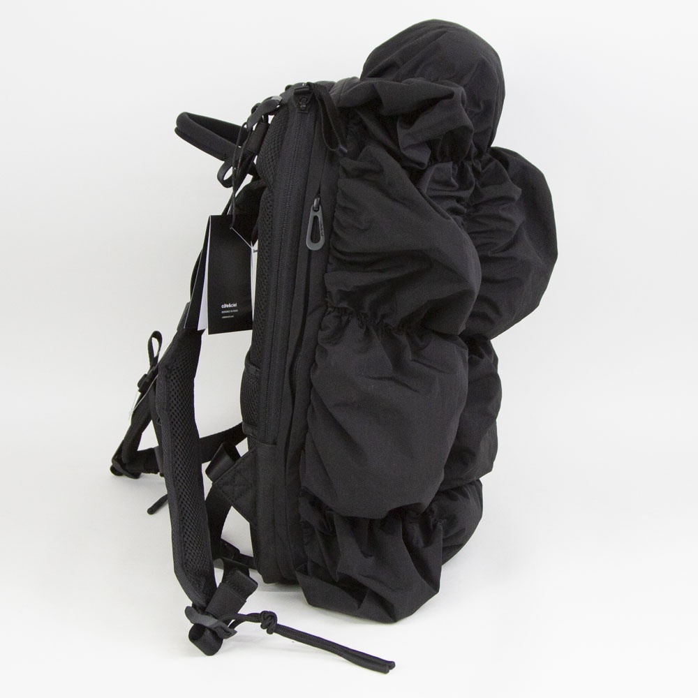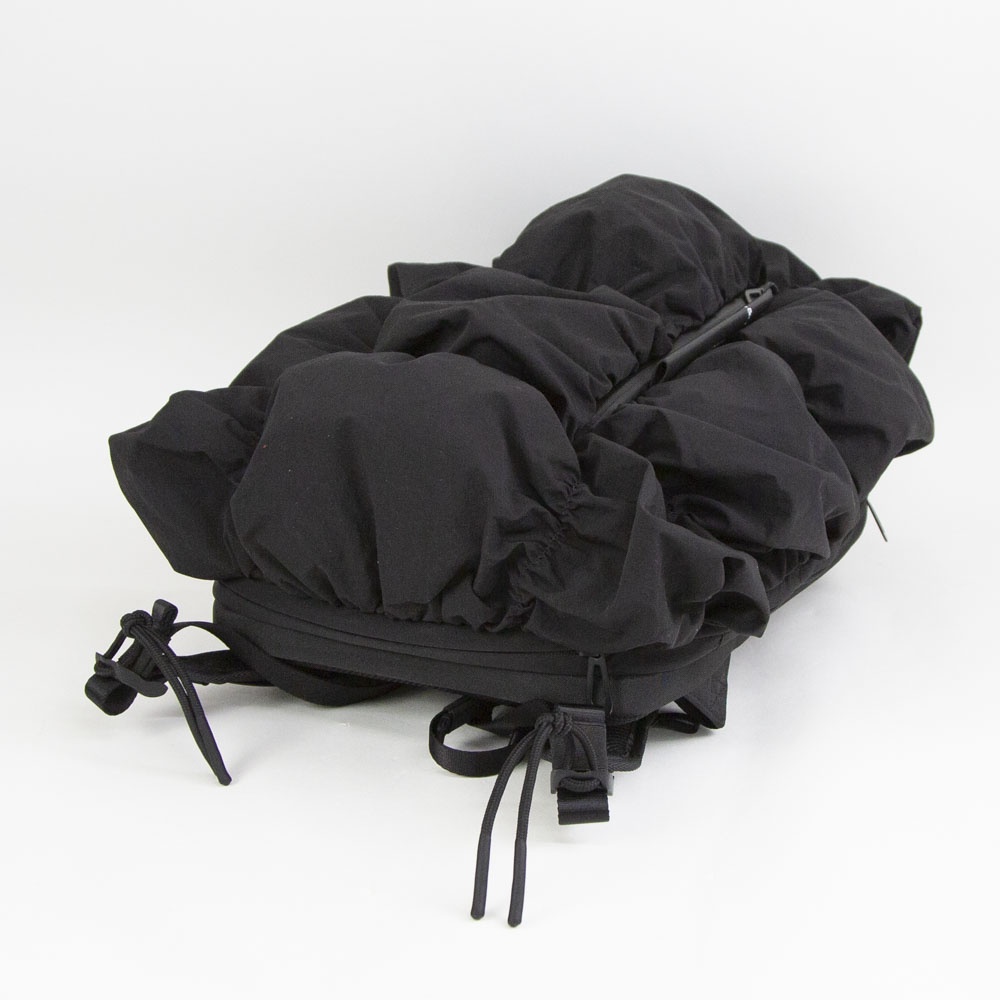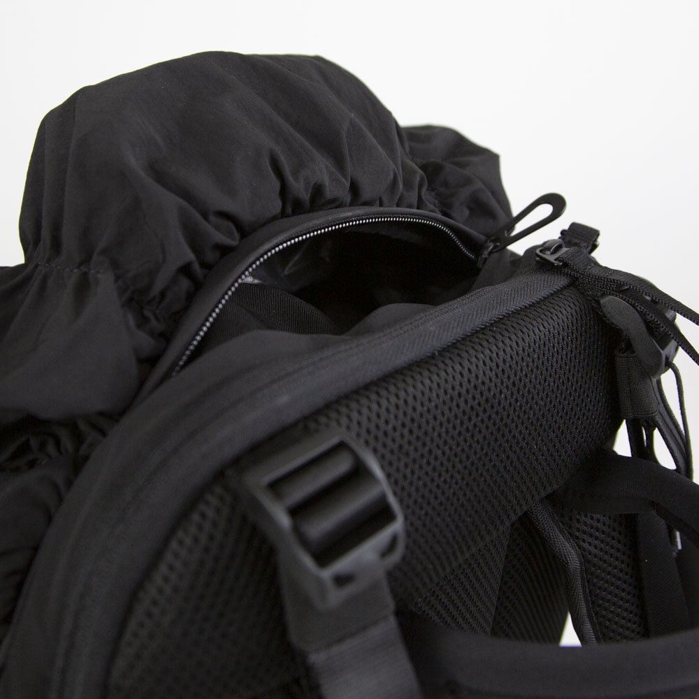 コレクションの新色・新モデルである「DRAVA Gathered Black」バックパックは、彫刻的な実用性とレイヤー状の収納構造を追求したモデルです。
