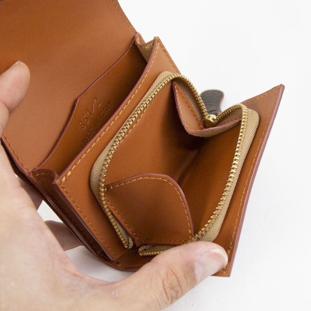 また、「851/2/LD」には取り出しやすさを考慮したスリットデザインの札入れを追加。手に馴染みやすいサイズ感を実現しつつ、お札、小銭、カード類をそれぞれ分けることが容易になりました。アイコニックな財布ゆずりの収納性と自由度をキープした、使い手のアレンジが利くミニ財布です。