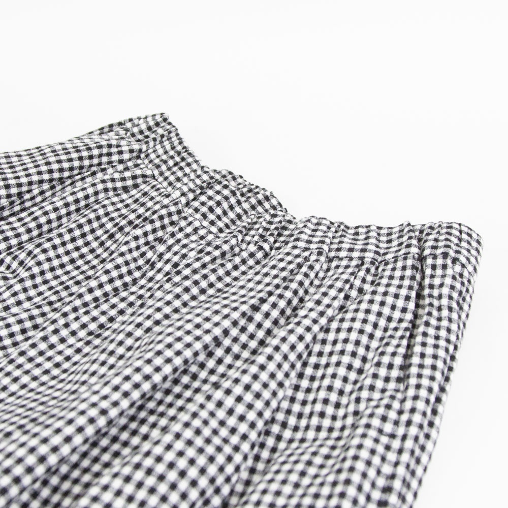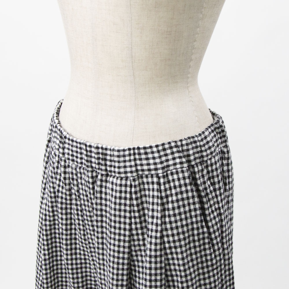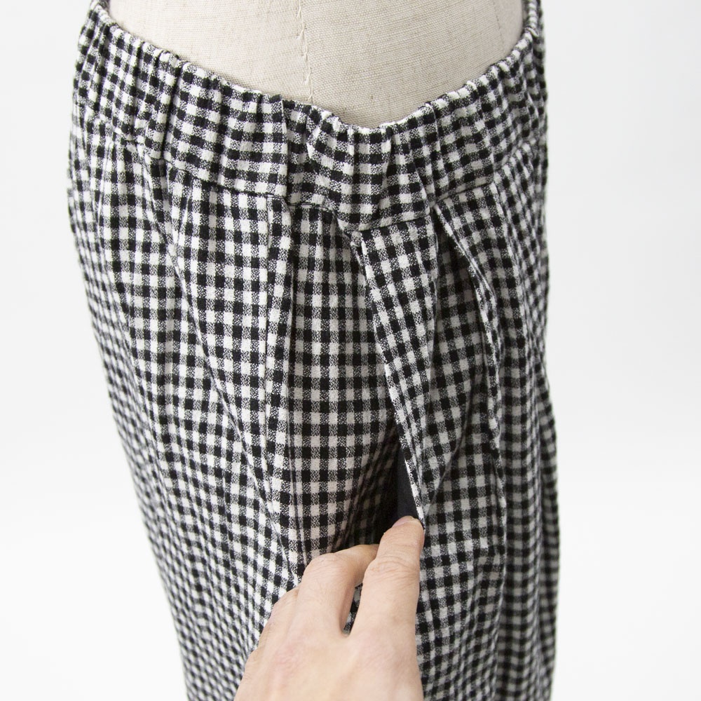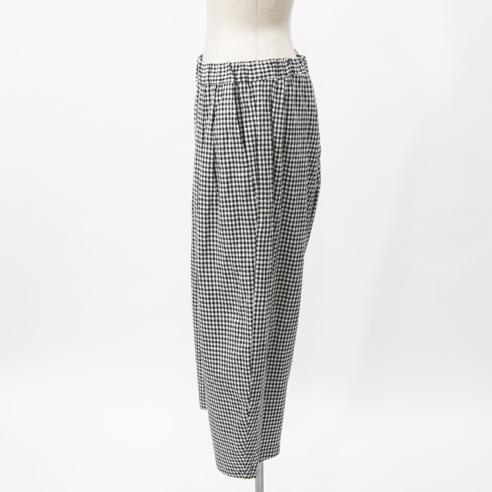 コットンリネン素材のカジュアルな風合いのパンツ。 程よいボリューム感と、丸みのあるシルエットが特徴です。 ウエストゴム仕様です。 左右脇にポケットがあります。 ウエスト左内側にゴム入替口があります。