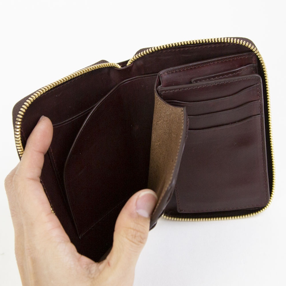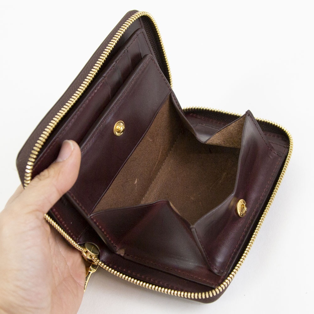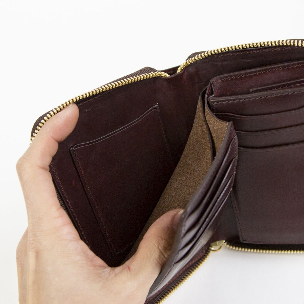 使い勝手の良いミドルサイズの折財布になります。
