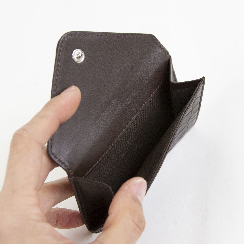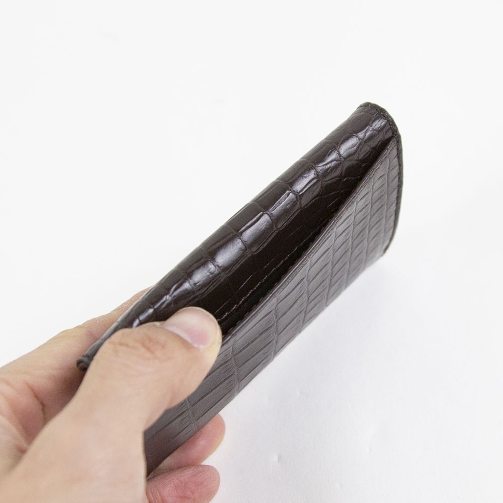 柔らかさのあるクロコを用いたシリーズになります。 価格もリーズナブルでクロコ入門にもオススメです。 ホック式のため、バッグの中に入れたままでも中が出にくい様になっています。