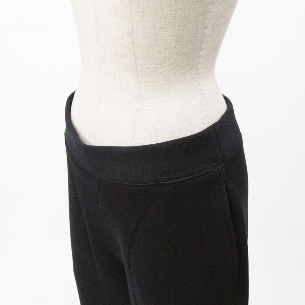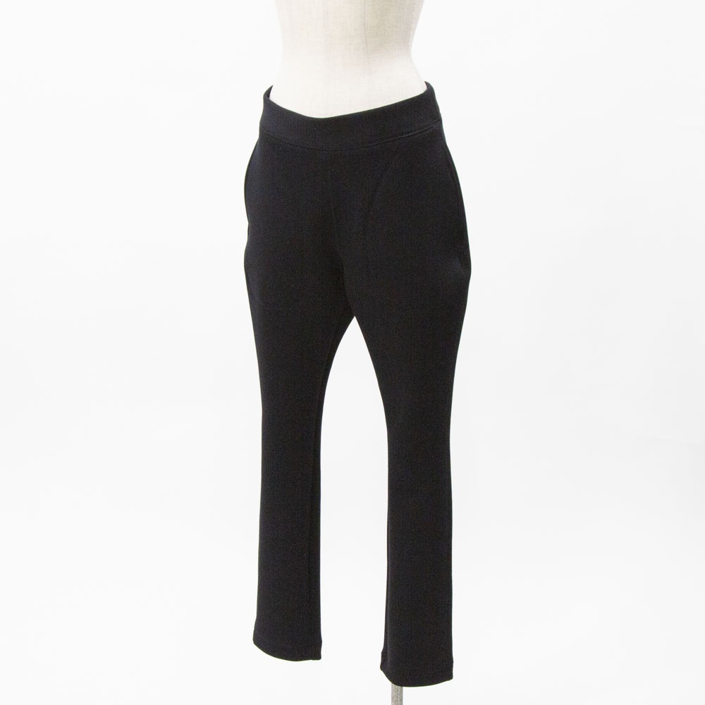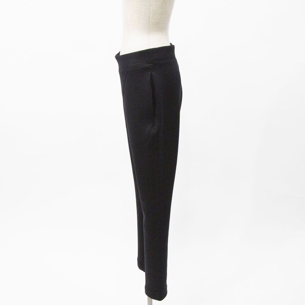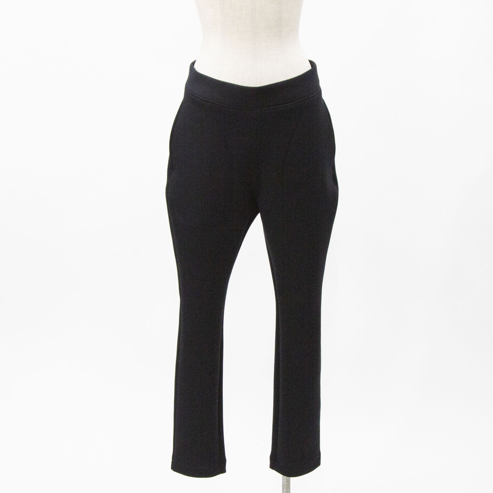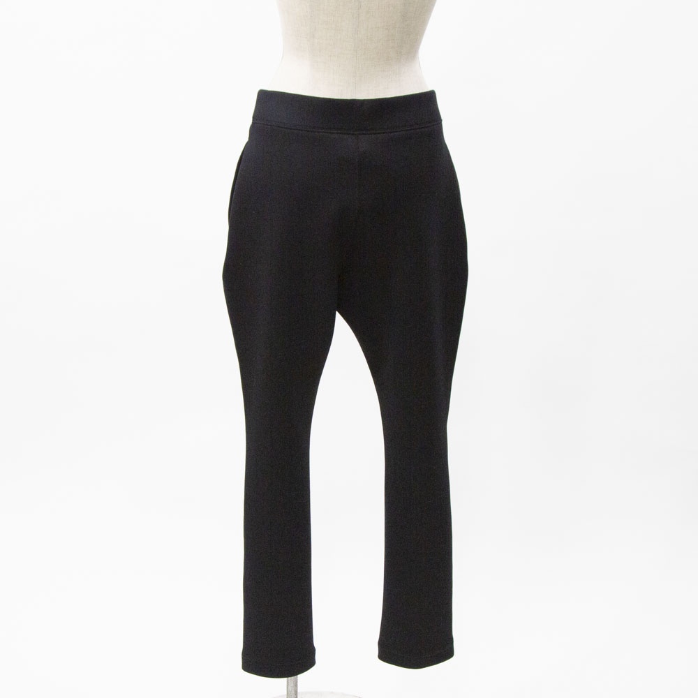 弾力性と軽さが特徴のダンボール素材のスリムパンツです。シワになりにくく履き心地にストレスがありません。腰回りは軽くゆとりがあり、膝下がスリムなデザイン。長めのシャツやニットを合わせレギンスとしての着用もオススメです。ロックミシンで縫い合わせた仕様なので、縫い代のあたりも少なくスッキリとしたシルエットです。