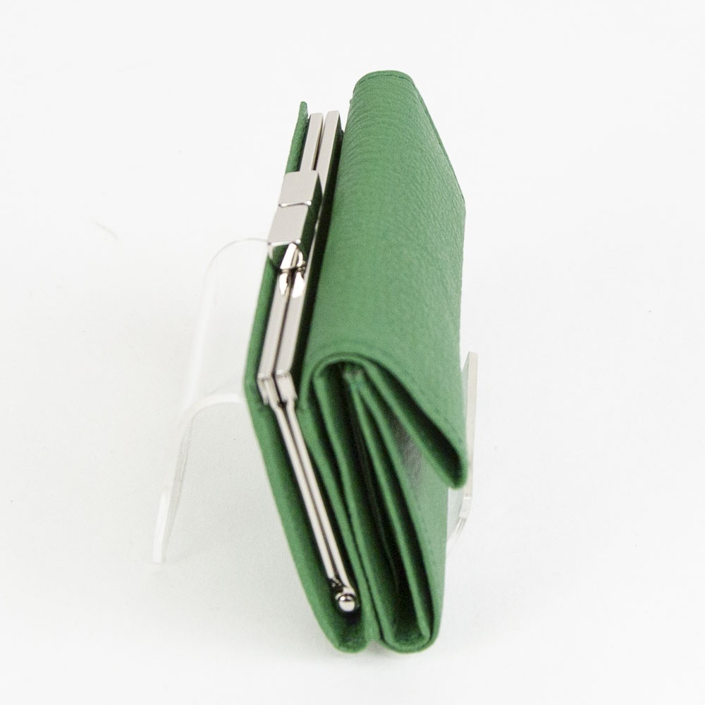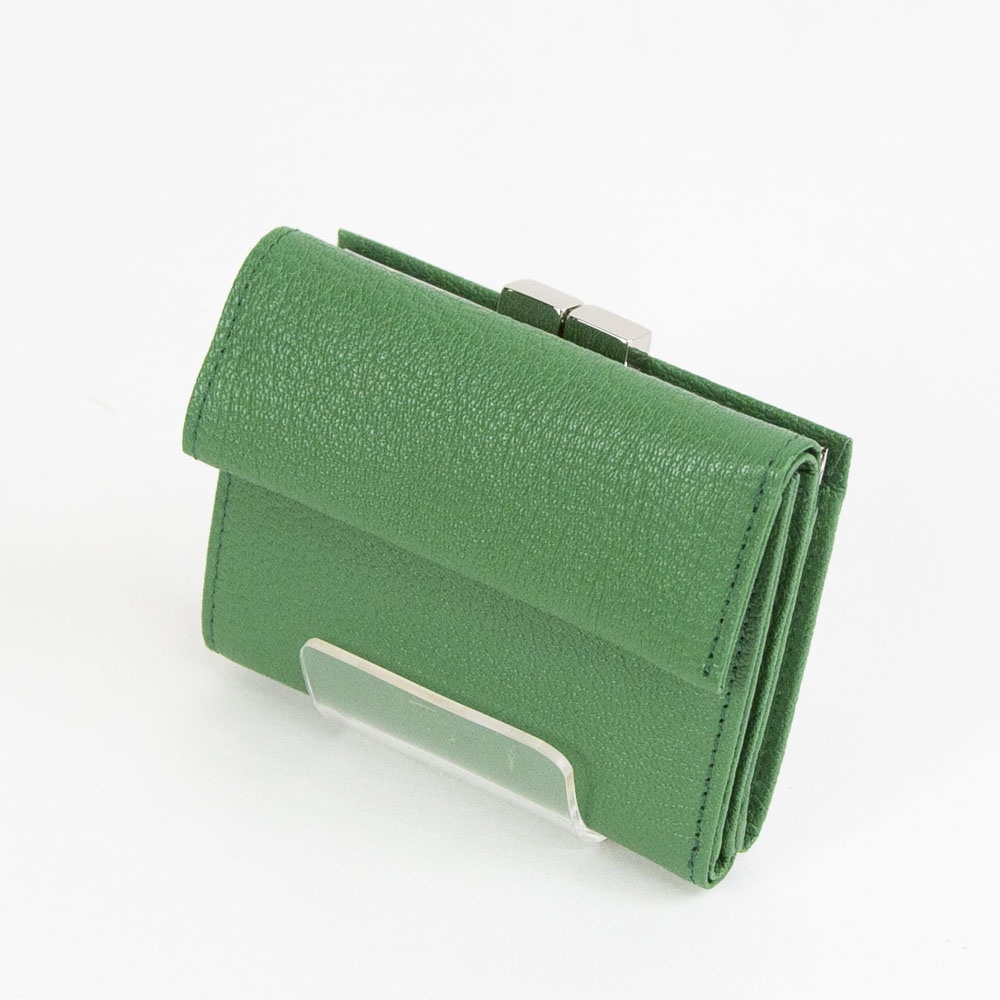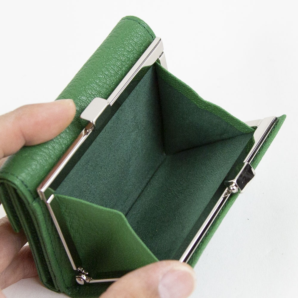 柔らかな印象のフラップデザインと、カチッとした口金の組み合わせが絶妙なバランスを生み出しています。