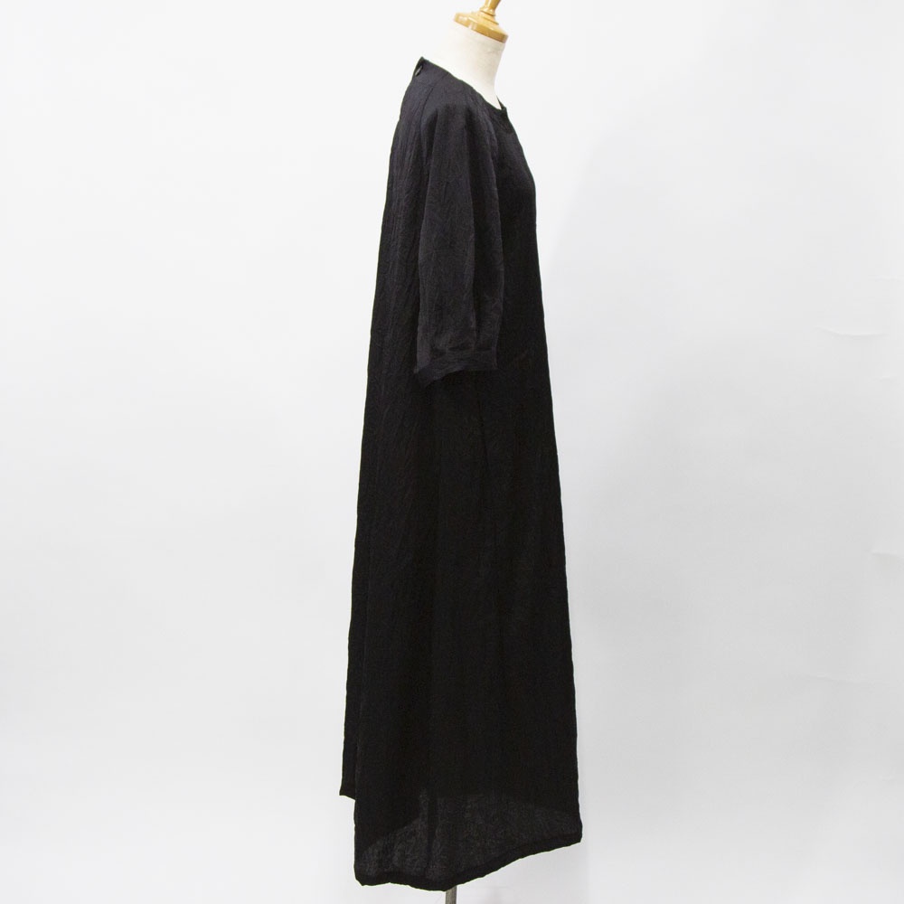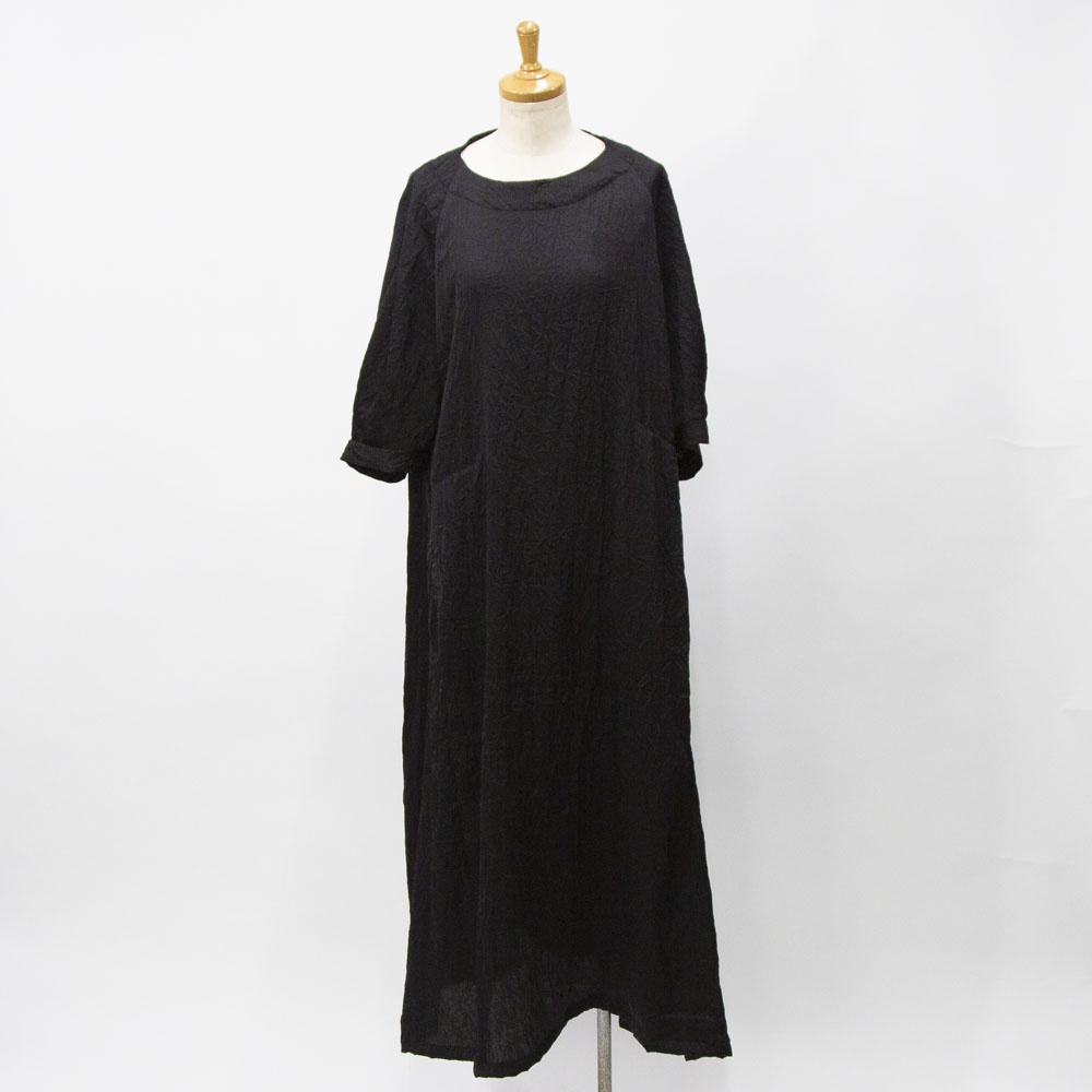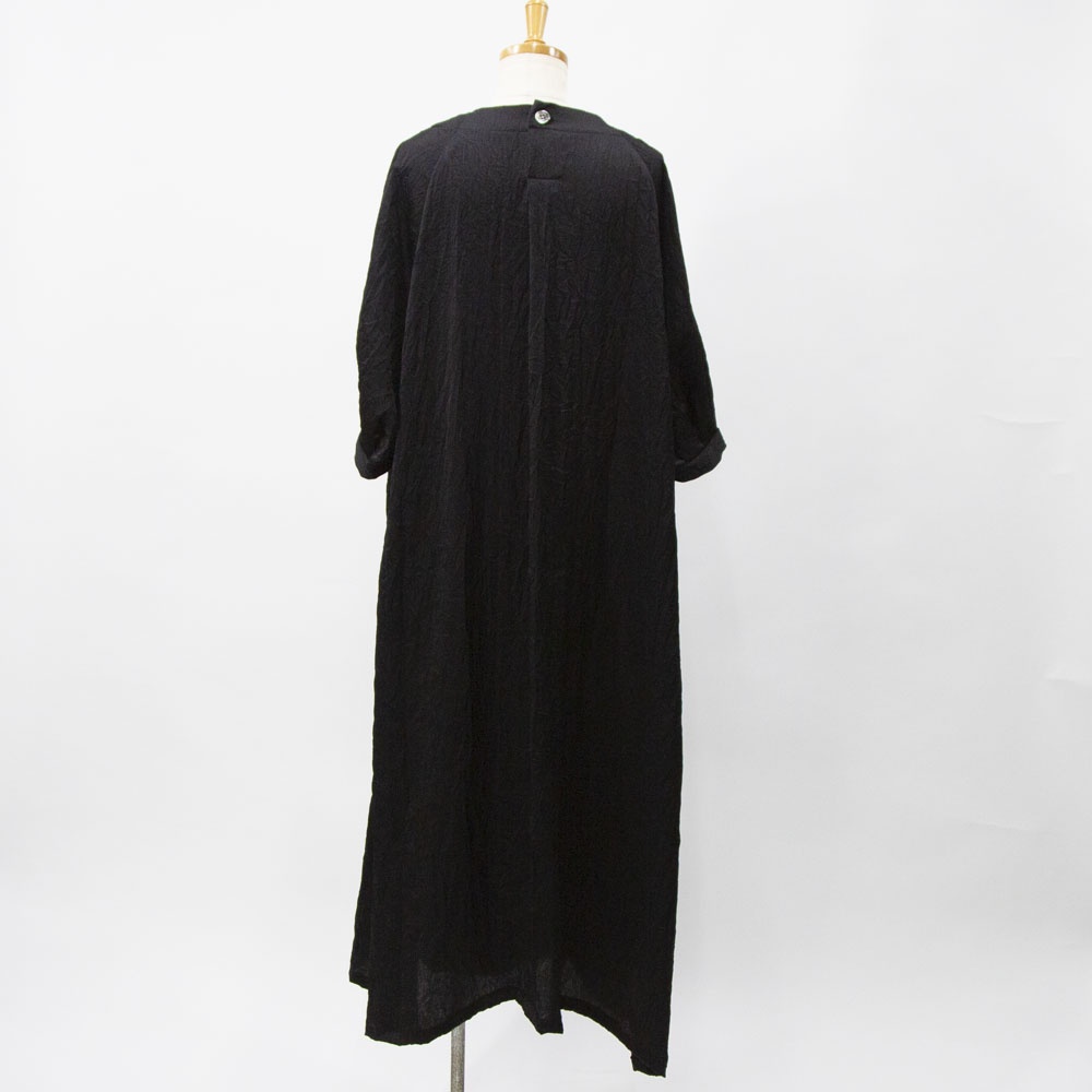 ワッシャー加工の五分袖ワンピース。 とても軽い着心地で、シワを気にせず着れ、合わせるアイテムによってシーズンレスに着られるので幅広く活躍します。 ご家庭でのお洗濯も可能です。 左右脇にポケットがあります。 背中にボタン開きがあります。