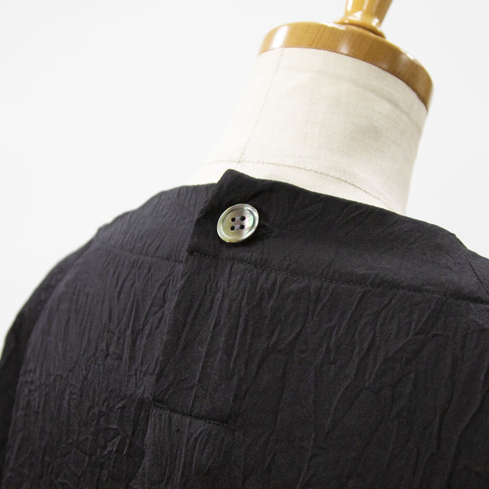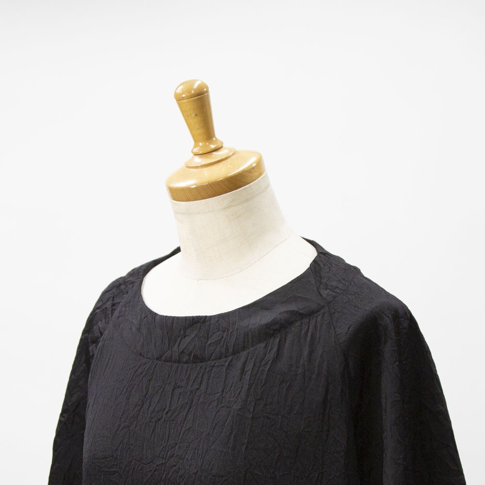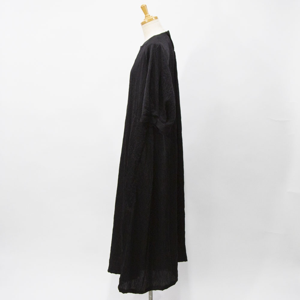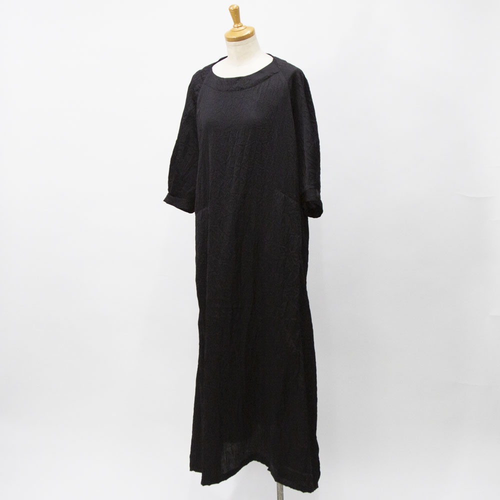 ワッシャー加工の五分袖ワンピース。 とても軽い着心地で、シワを気にせず着れ、合わせるアイテムによってシーズンレスに着られるので幅広く活躍します。 ご家庭でのお洗濯も可能です。 左右脇にポケットがあります。 背中にボタン開きがあります。