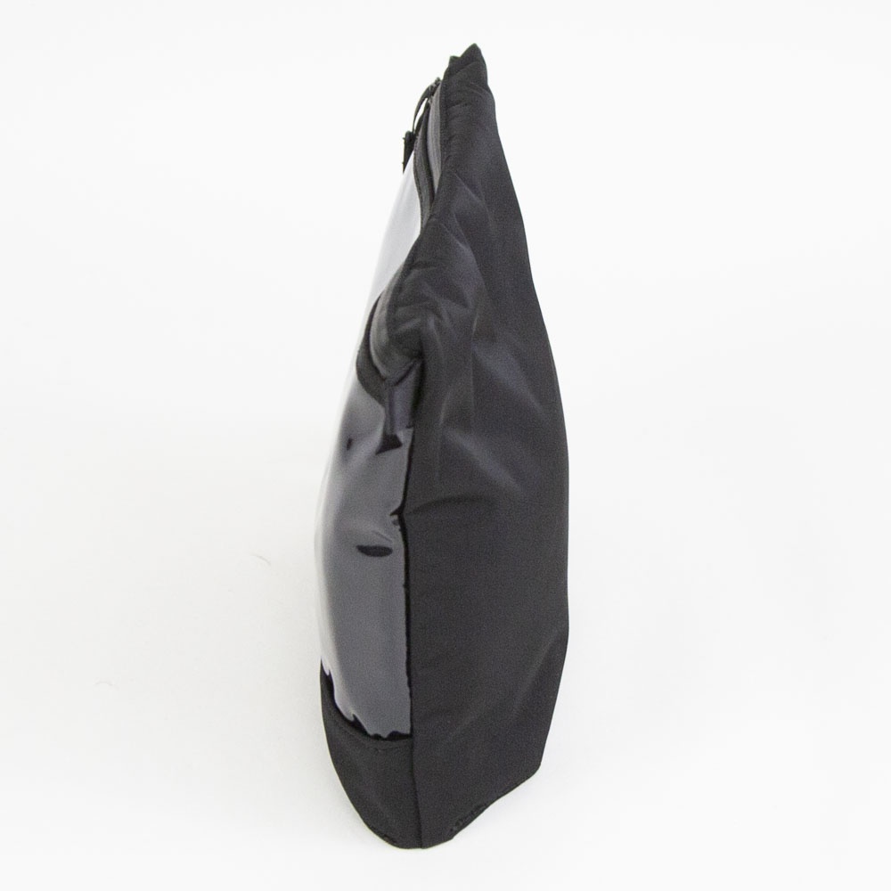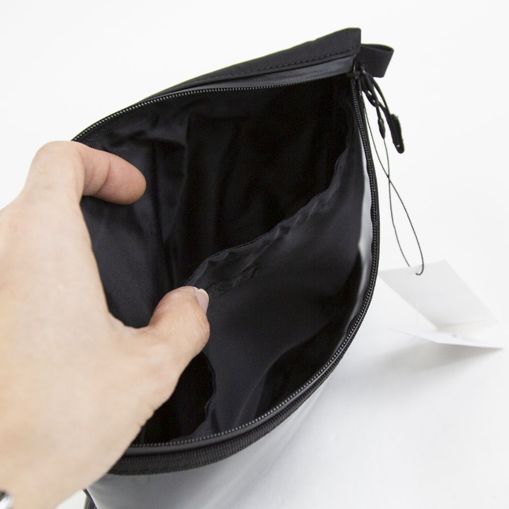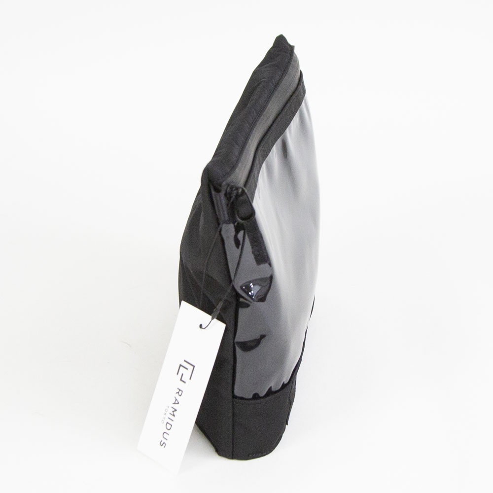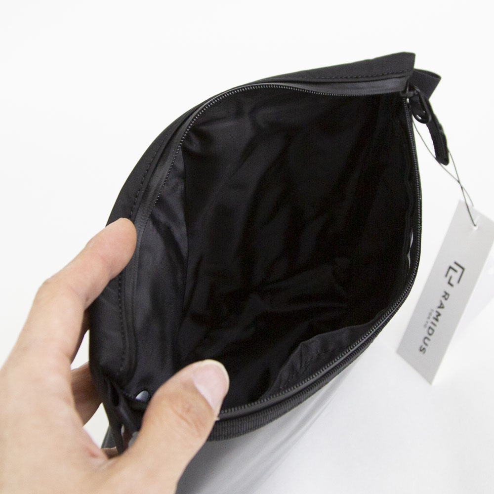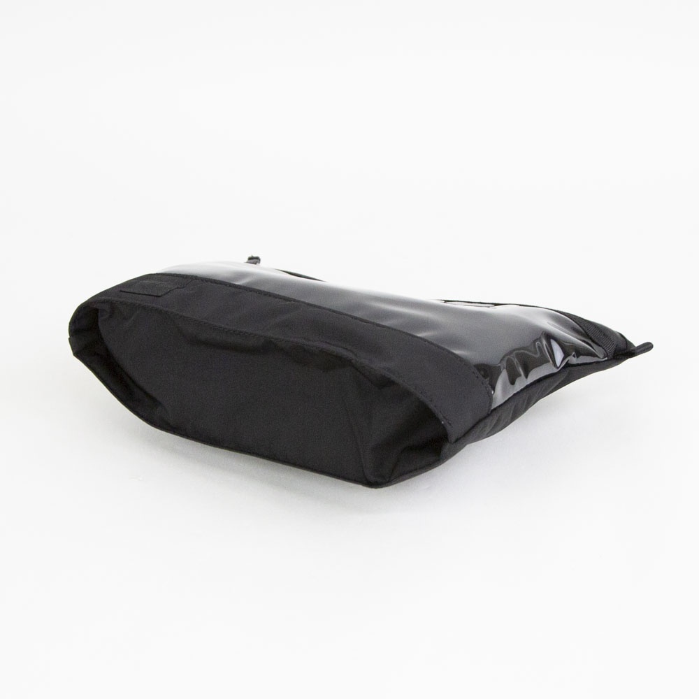 底マチを広げると自立する仕様のマルチポーチ。前面には視認性の高いPVC素材を採用し、内装には仕切りと外から見えないブラインドポケットを備えています。内装には、臭気を軽減する無機物微粒子と銀成分を特殊樹脂フィルムに練り込み、繊維にラミネートしたDEOSUNNYⓇデオドラントネームタグを搭載しており、グルーミング用品の収納にも適しています。両サイドのストラップループは、ジッパー開閉時の引手としてだけでなく、別売りショルダーストラップ(G001019)を装着することで、ミニサコッシュとしてもご使用いただけます。