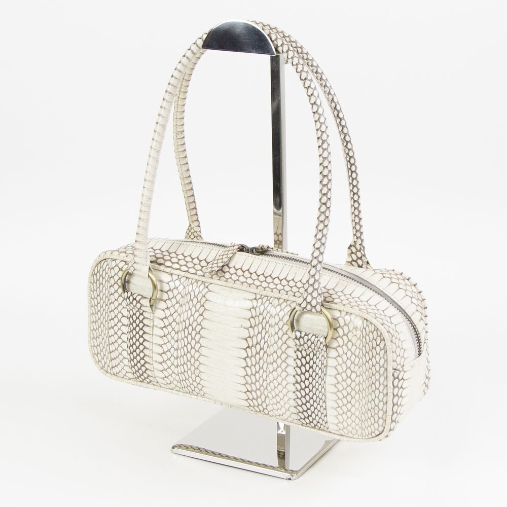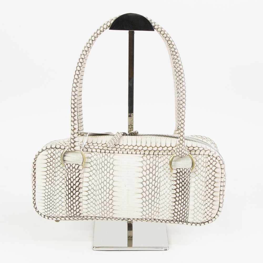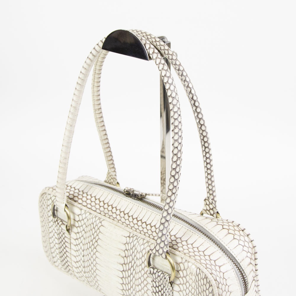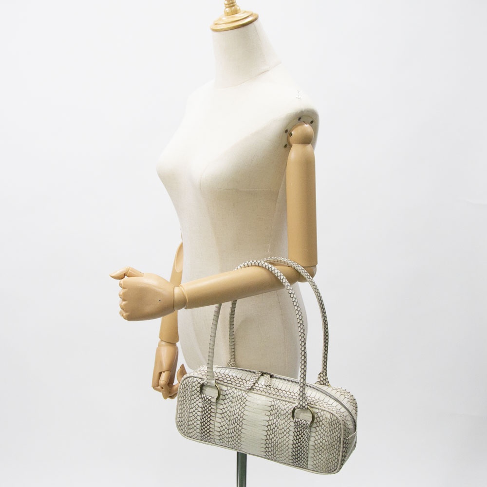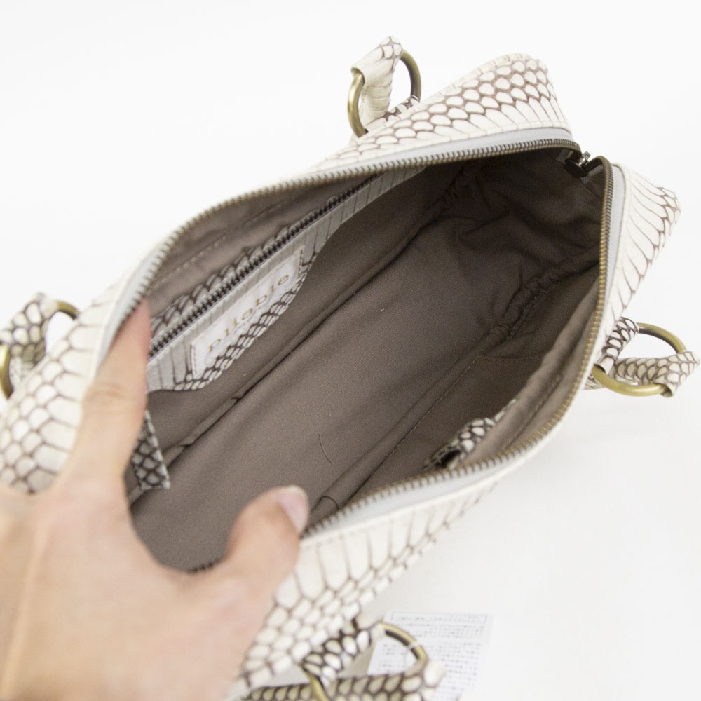 細長いフォルムが特徴的なハンドバッグです。 持ち手の長さも程よく、肩掛けでも手持ちでも使って頂けます。 長財布や500miのペットボトルが横に入るサイズ感なので、見た目よりも使いやすいです。