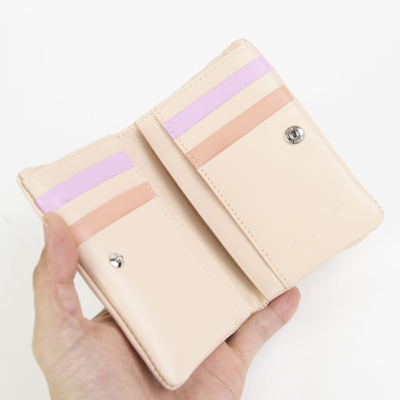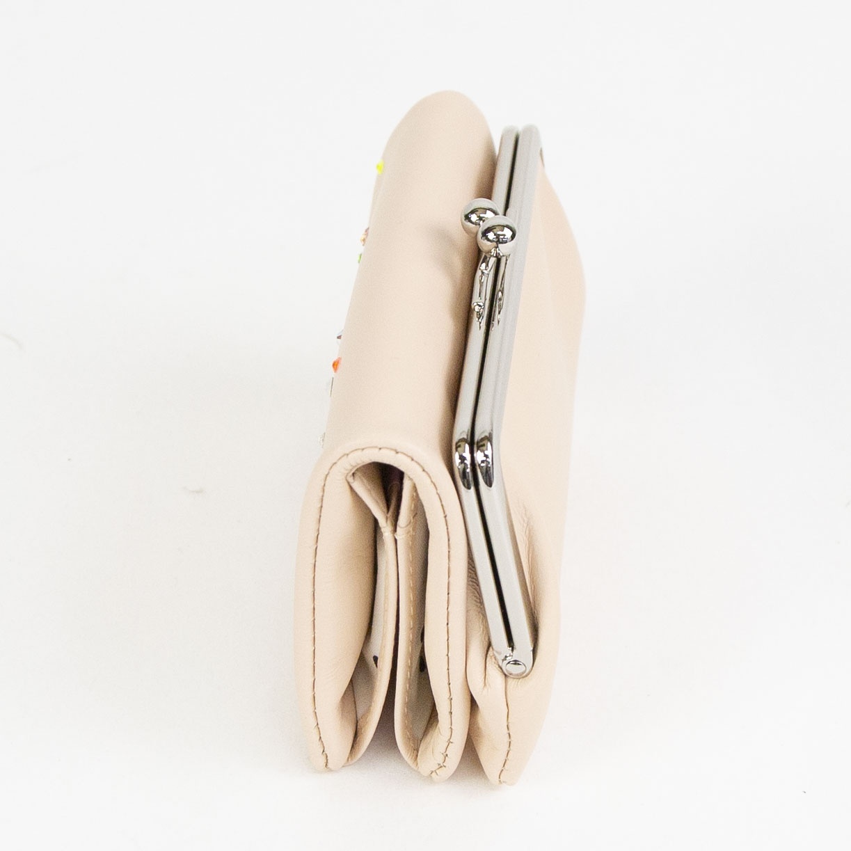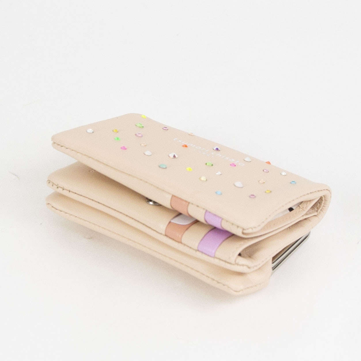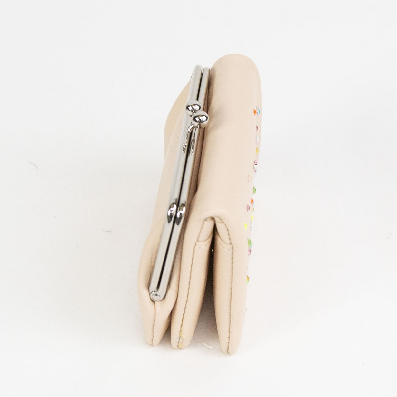 小さなキャンディーのようなキラキラの石が輝く可愛らしいお財布です。 華やかだけど、どこか控えめなところが素敵。石のパーツはひとつひとつ手作業で付けられています。 素材はソフトなラムレザーを使用しています。