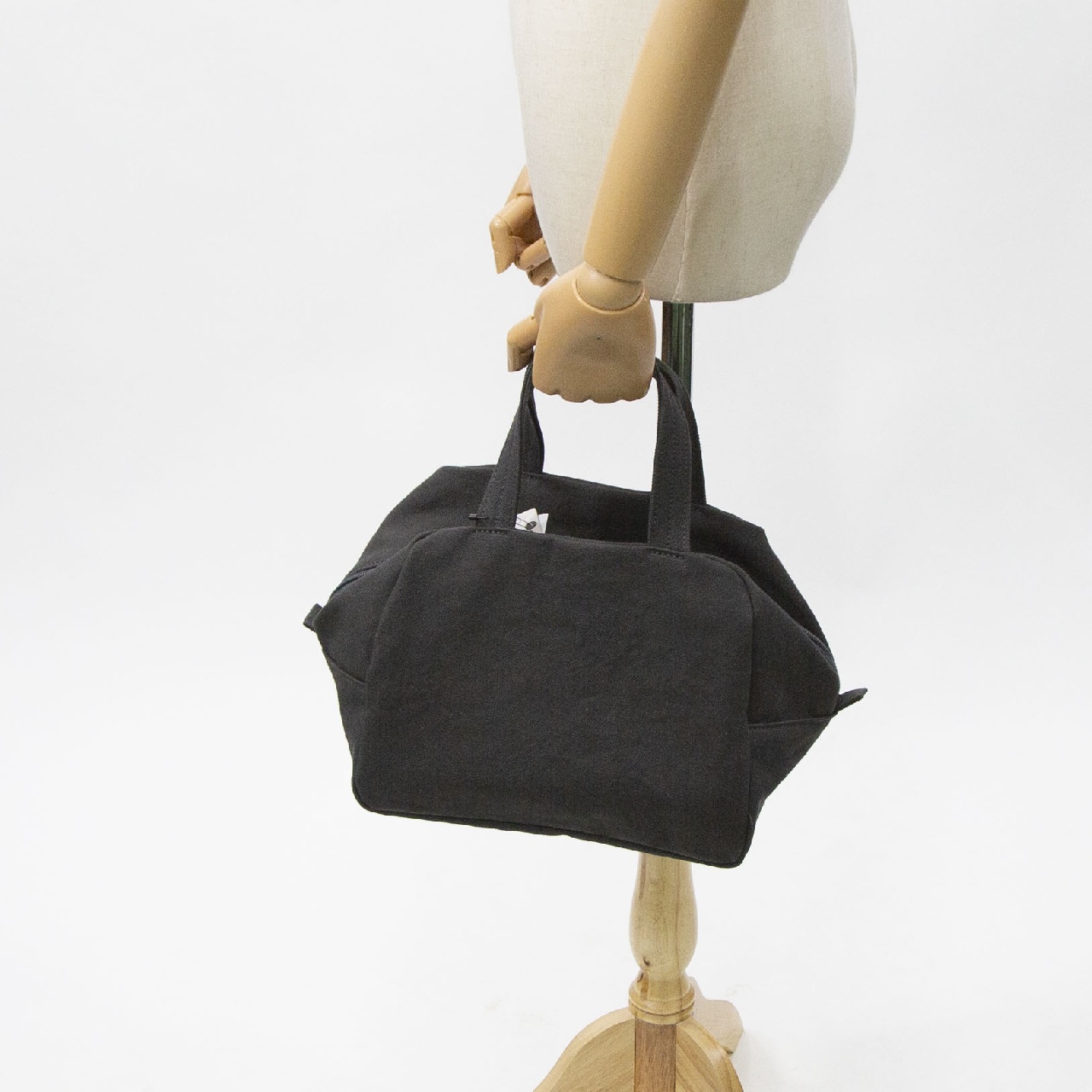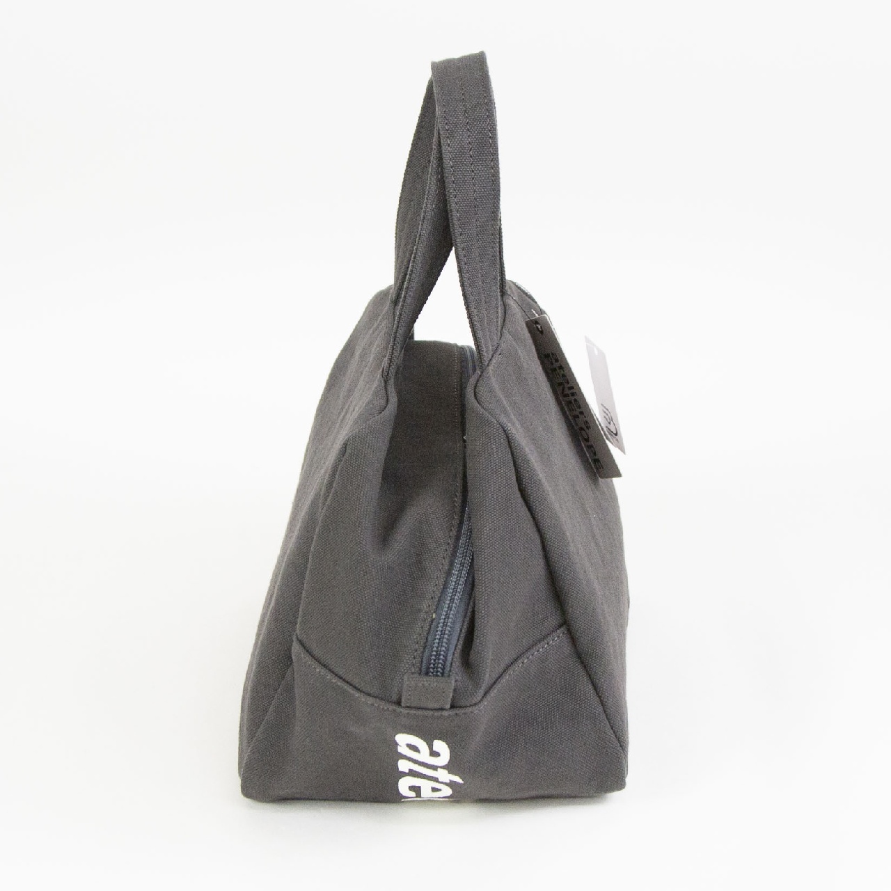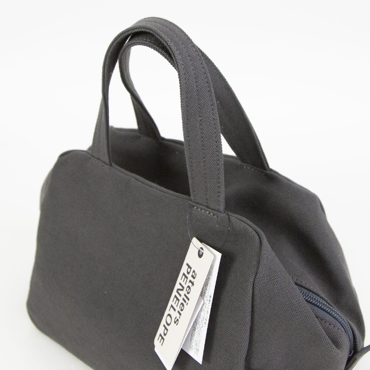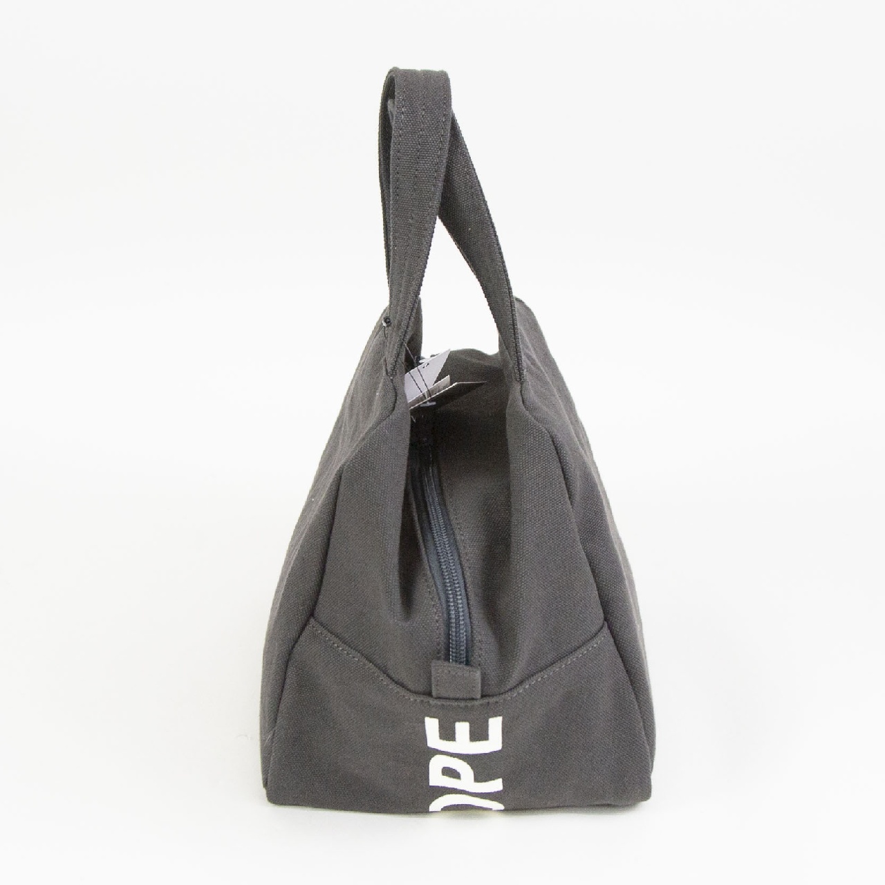 8号帆布を使用した定番ボストン型のトートです。ワンウォッ シュ加工による洗いざらしたようなナチュラルな風合いをお 楽しみいただけます。 ダブルスライダーによる開閉のファス ナーが付いた小型のサイズ感は気軽に持ち運びができ、普段 使いに最適。 内側の片面はポケットになっています。底面に 入ったロゴプリントで遊び心を加えました。