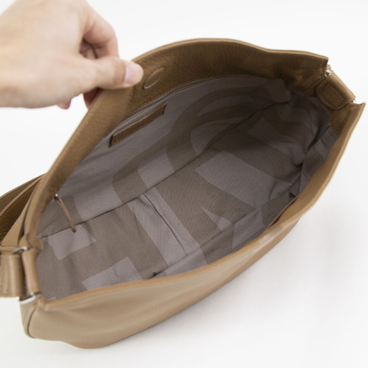 植物の種(seed)ような丸みを持たせたラージショルダーです。 ショルダーは2段階調整で長くすることができるので肩掛け、また斜め掛けもできる2way仕様になっています。 内側はファスナーポケットがひとつと、オープンポケットがふたつ装備されており、背面にはマルチポケットがついています。