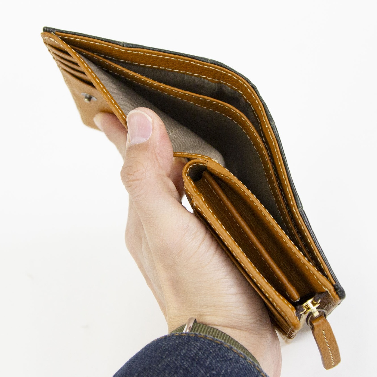 パッチワークデザインが特徴的なミドルサイズの折財布です。 表情の違う革を組み合わせた独特の風合いは、使い込むほどに深みを増し、経年変化をお楽しみいただけます。 個性を感じられるデザインで、男女問わずお使いいただけます。