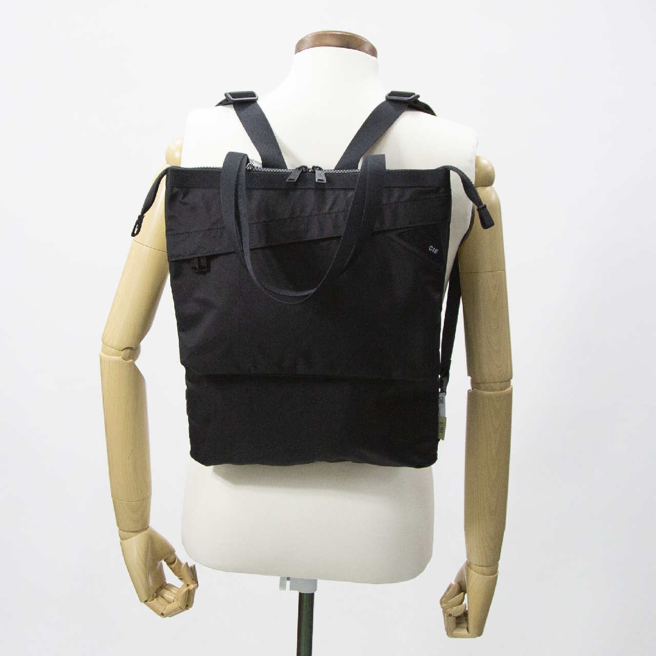 本体生地には、CIE オリジナルファブリック を使用。210d オックスナイロンを表面に4層で構造された 高機能素材になります、表面に弱撥水加工、防水性を備えております。ブランドタグには YKK 社製のクイックロ ンにエンボス樹脂加工でブランドロゴをプリントしたものをアクセント、タグの下生地には 600d ポリエステルの ベースにポリウレタンコーティングを使用した生地を使用しております。ZIP につきましては、メインにはビスロ ンファスナーに撥水剤にどぼ漬けした YKK 社製の VISLON を使用しており、スムーズな開閉性と持続 性の高い撥水性を持っております。釣りウェーダー用に開発されたベースの生地にフィッシングベストのディティールをイメージに作成したブランドタグでフィッシングイメージに仕上げたアイテムです。