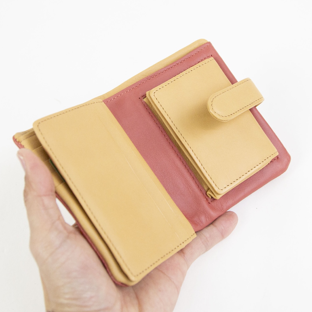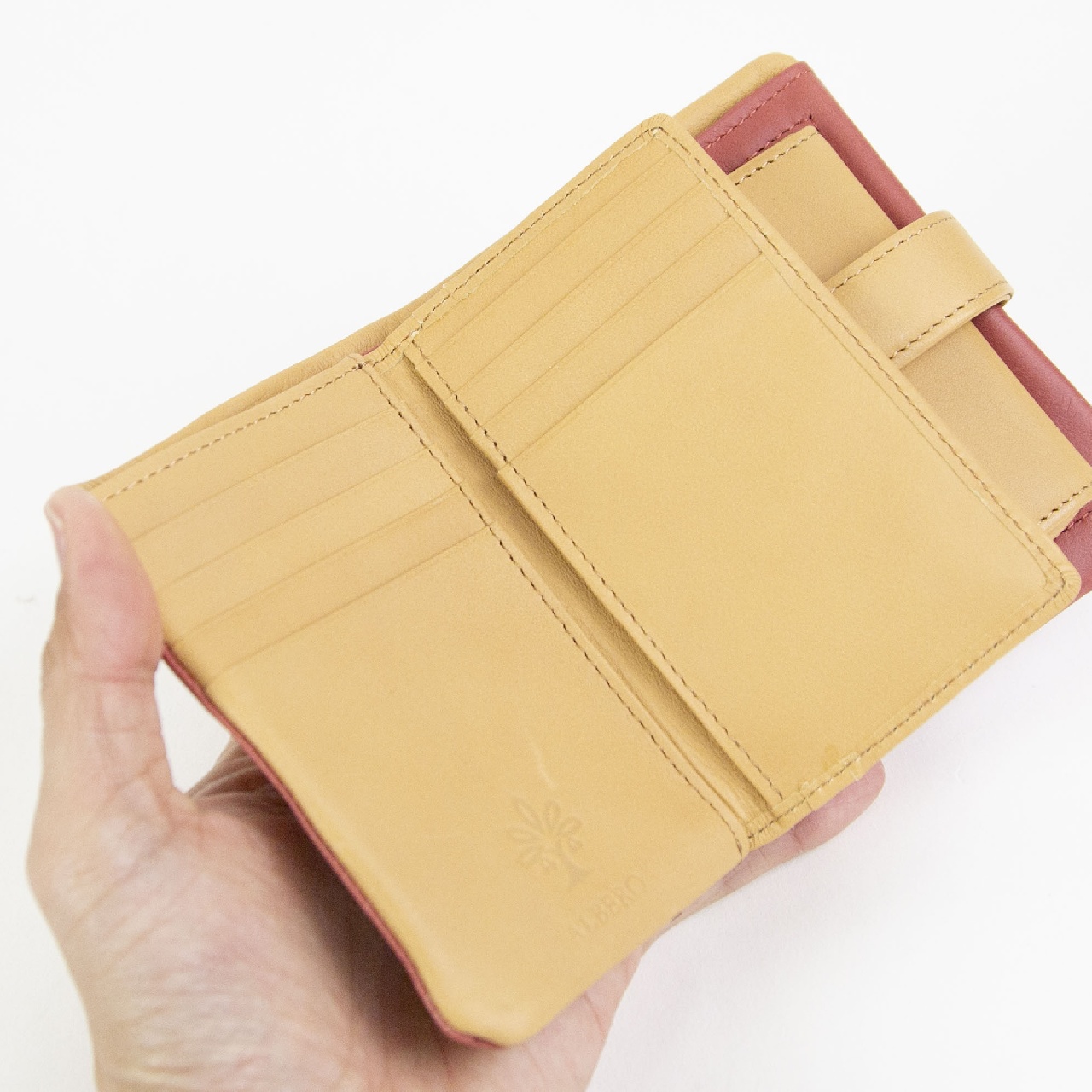 光沢があり、絹の柔らかさにも似たやさしい感触。 洗練された絹織物の街「LYON」から命名。 手元を華やかに演出してくれる色使いが印象的な小銭入れ付き二つ折り財布です。 シンプルなデザインながら小銭入れやカード入れの数など使いやすさにこだわっており機能的なところもポイントです。
