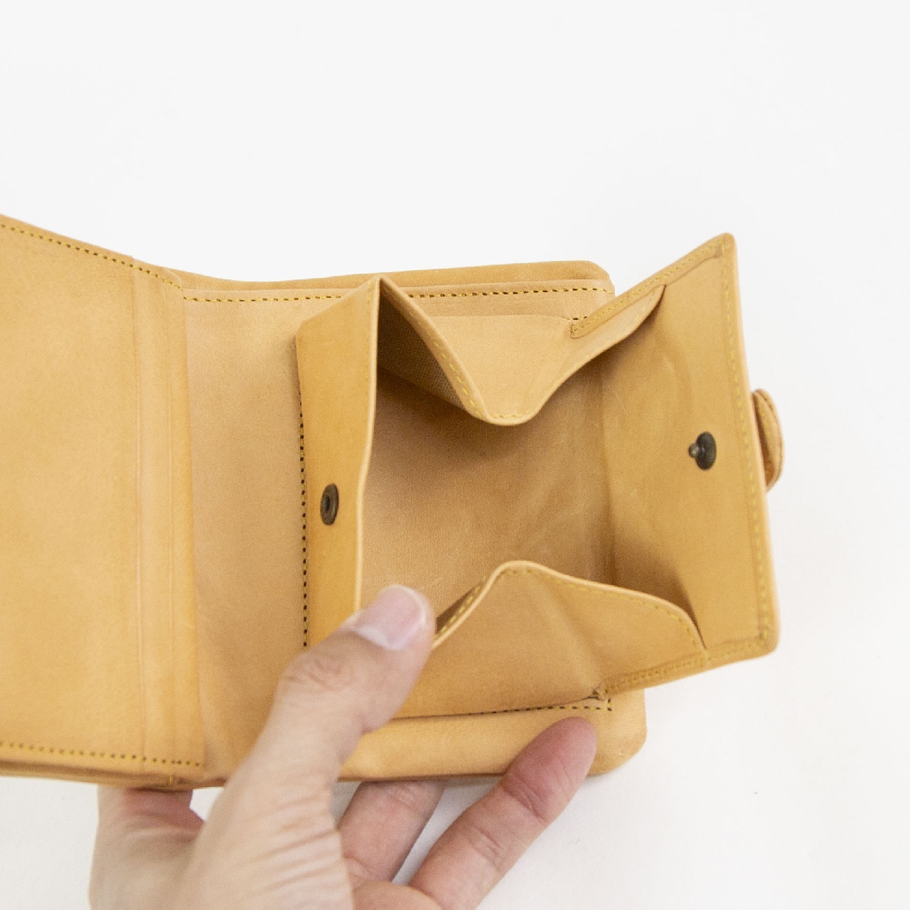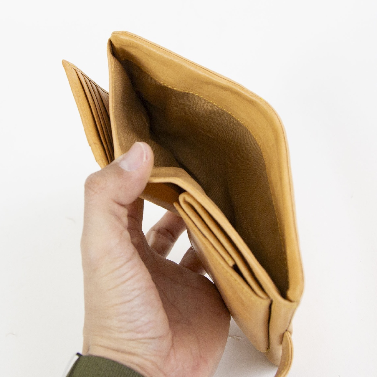「自然を大切にしたい」はALBEROのフィロソフィー。Naturaleは、それを象徴するシリーズ。 牛革ショルダー部を植物タンニンでなめし染色を施さず使う程に飴色に変化して光沢が増す素材。 お財布を開くとカードが見やすいようカード入れが設置されています。 小銭入れはBOXタイプなので中が見やすく、全ての硬貨が一目瞭然。お札入れは2ヶ所あるので、紙幣の種類によって分けたり、 紙幣とレシートを分けて収納することもできます。
