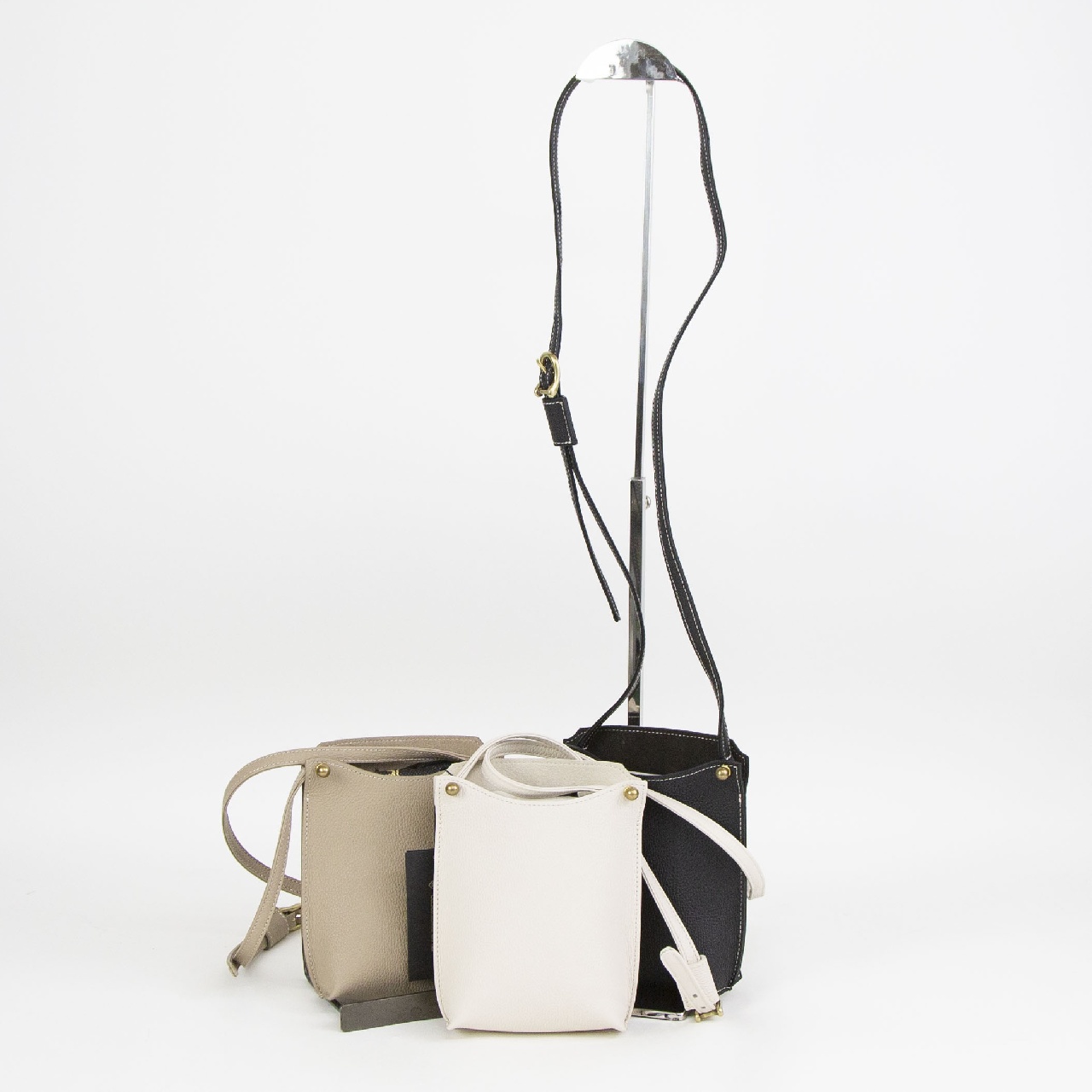 トートバッグなどに合わせて持てるようにデザインはシンプルにまとめ、フォルムの立体感を配色のステッチで際立たせた商品です。